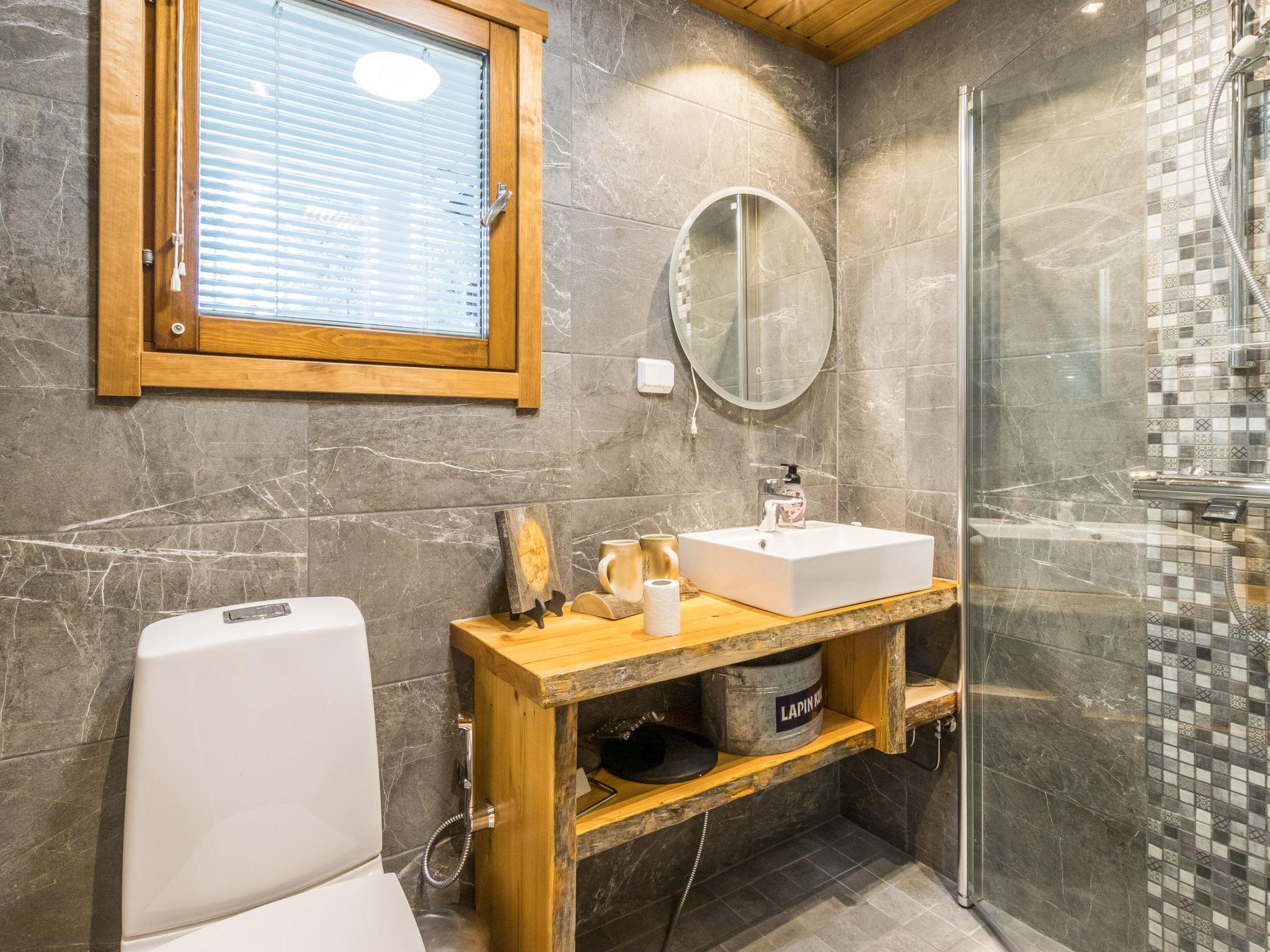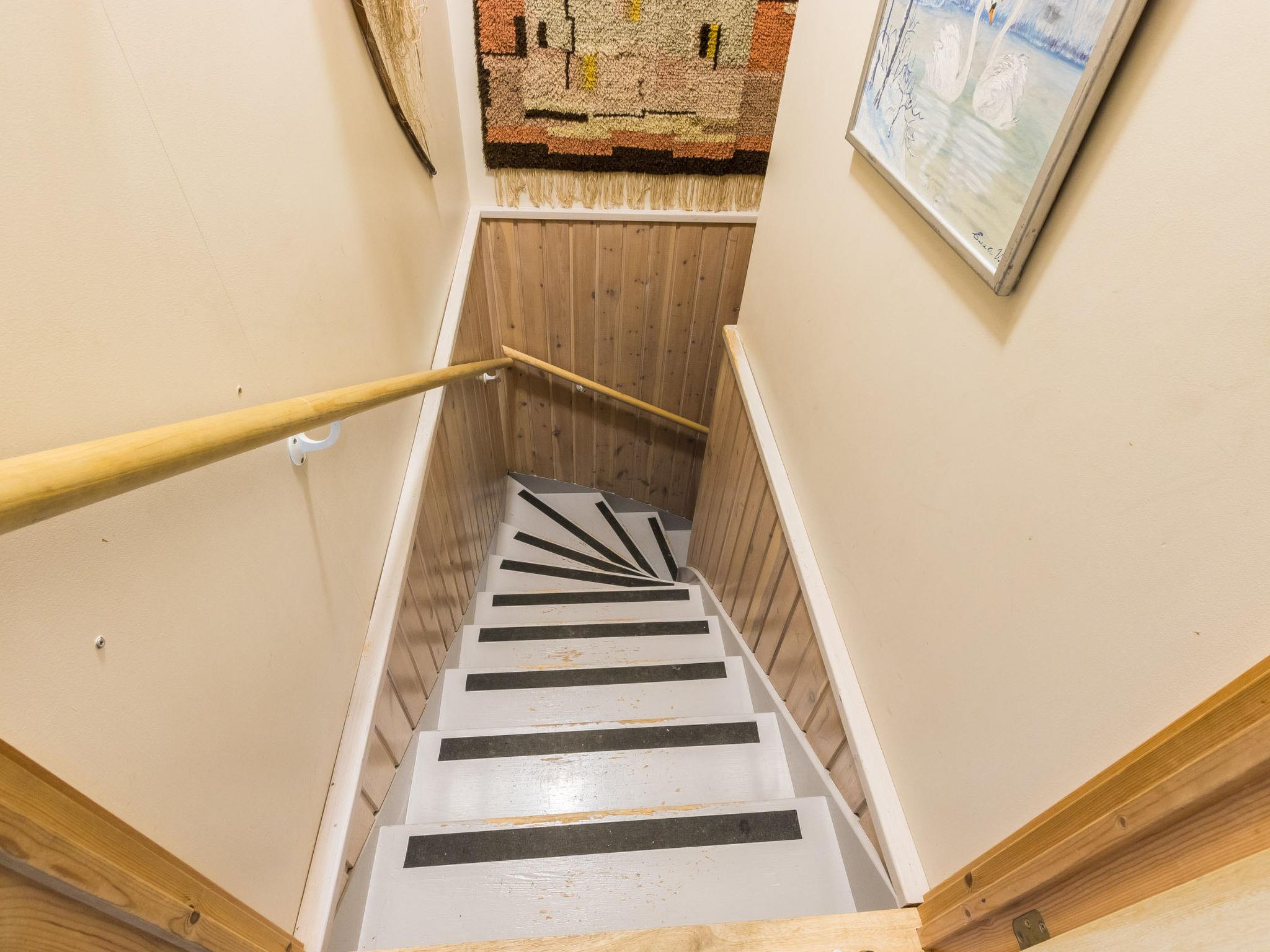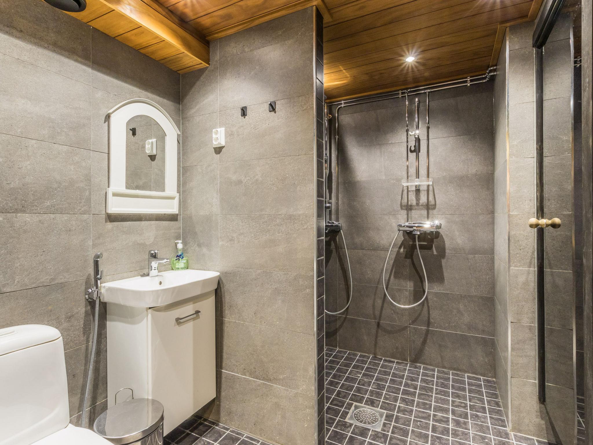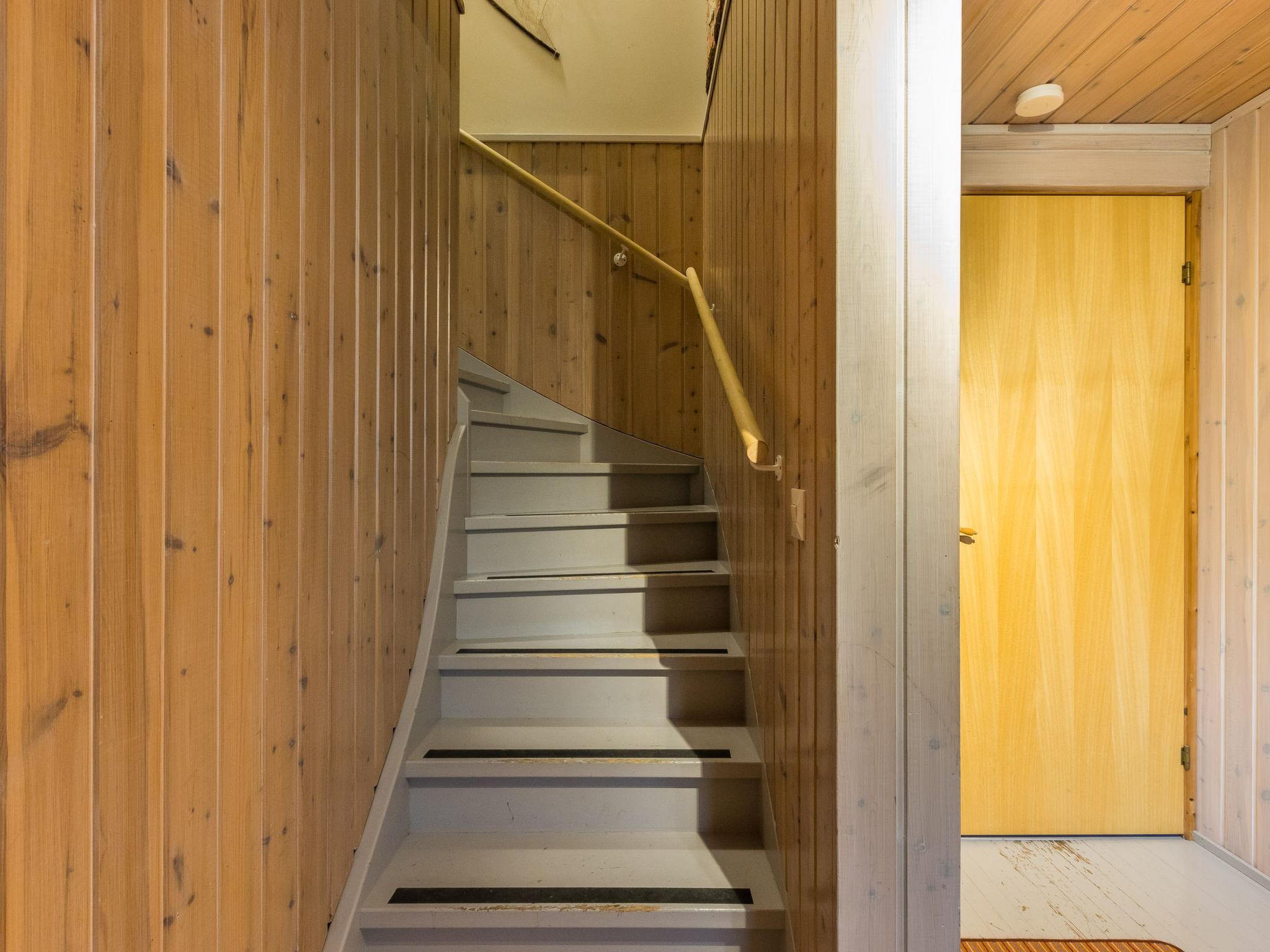 The ground floor offers bedroom with two single beds a cozy living area with a fireplace, a sauna with an electric stove, a shower, and a separate toilet. The bathroom and sauna were renovated in January 2020, and the bedrooms were updated in 2022.
