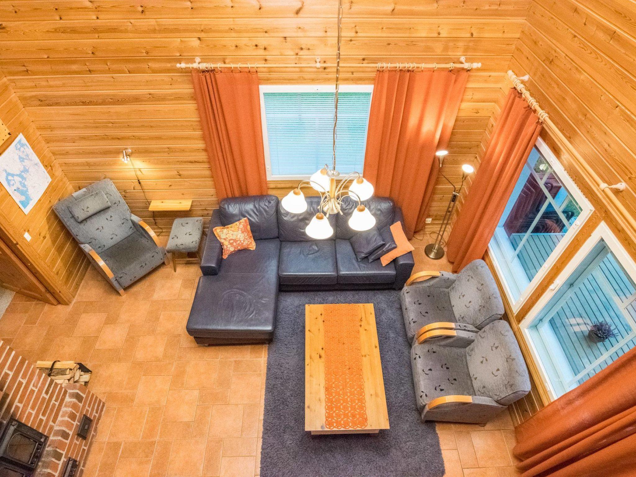 Log-panelled chalet 2002, living room/kitchen, bedroom with double bed, upstairs 2 bedrooms with 2 beds in each, upstairs hall area with convertible sofa, dressing room, washroom, sauna renovated 2016 (elec. stove), toilet, 2 x porch.