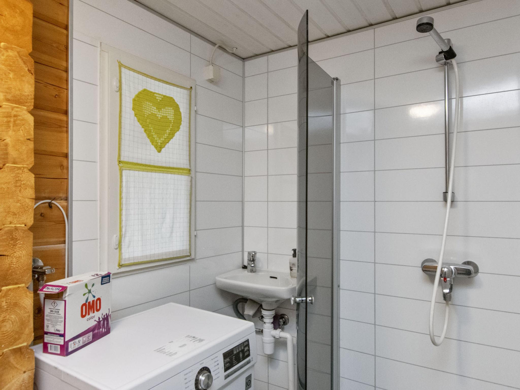 80 km southwest of Joensuu, Lake Pölläkkäjärvi 35 m (1,9 km²), shallow sanded mud and partly rocky bottom, own beach, rowing boat and jetty. Log cottage 1991, living room, kitchen, bedroom with double bed, sleeping gallery (9 m²) with 2 beds, sleeping gallery (4 m²) with 2 beds, bathroom, sauna (elec. stove), terrace. Own separate sauna building (10 m²) with wood heated stove (smoke sauna oven not in use), in sauna building a room with 2 beds, electricity and water supply.
