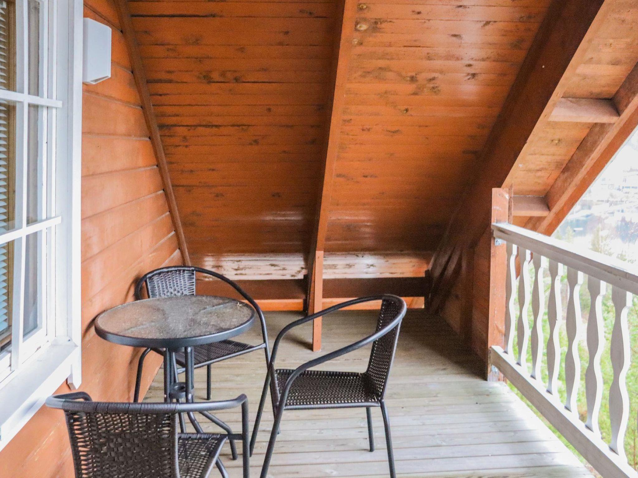 The upstairs of a semi-detached house located in the Ukkohalla tourism centre, 75 m², built in 1990, renovated in 2000, kitchen, 3 bedrooms, sauna, shower room, 2 separate toilets, balcony, terrace, fireplace, 1 bag of firewood.