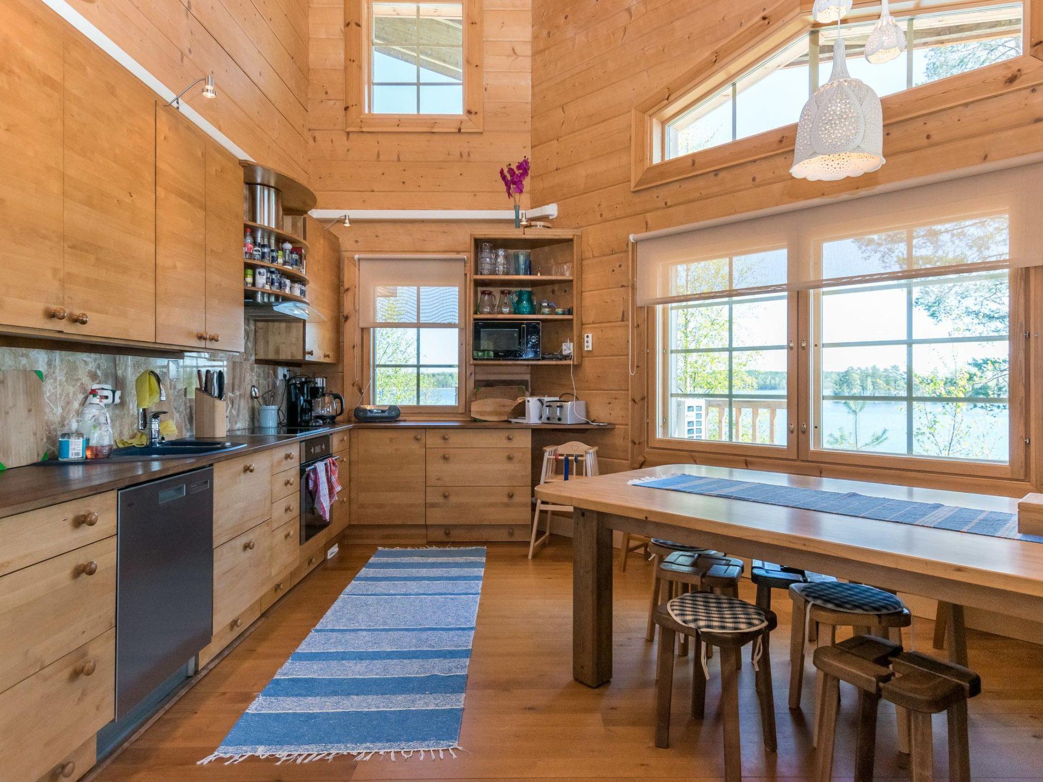 Rotating log house 2014, on the ground floor living room, kitchen, bedroom with double bed, bedroom 2 beds, sauna, washroom with shower and hot tub, dressing room/utility room, lounge, terrace (100 m²).