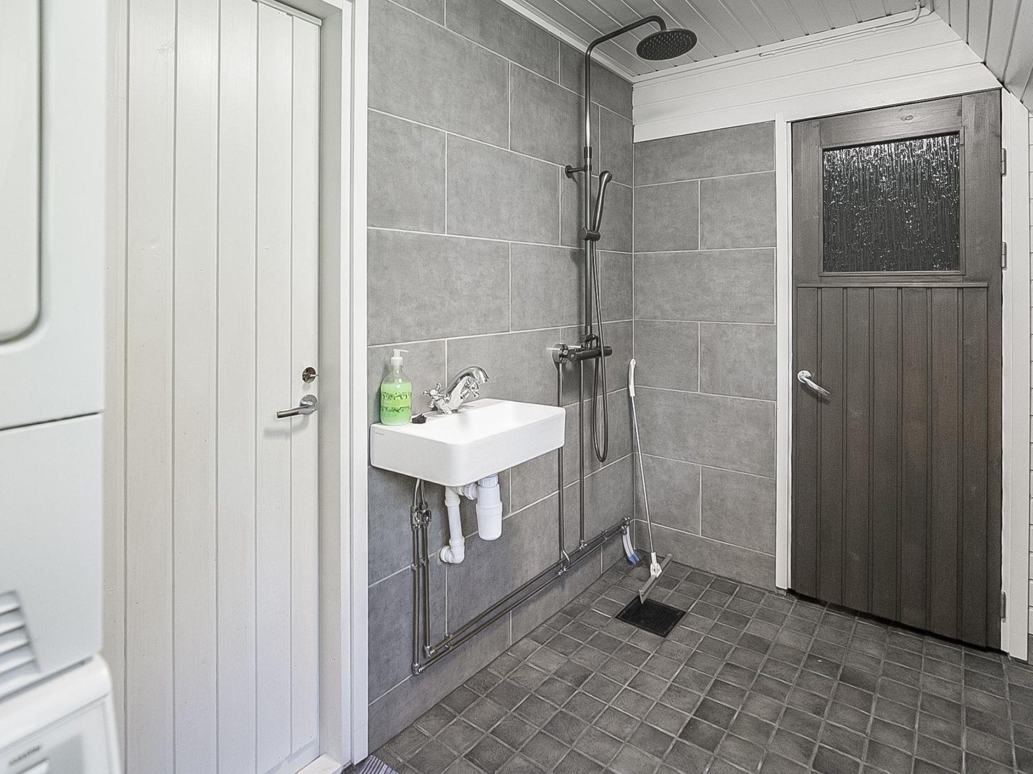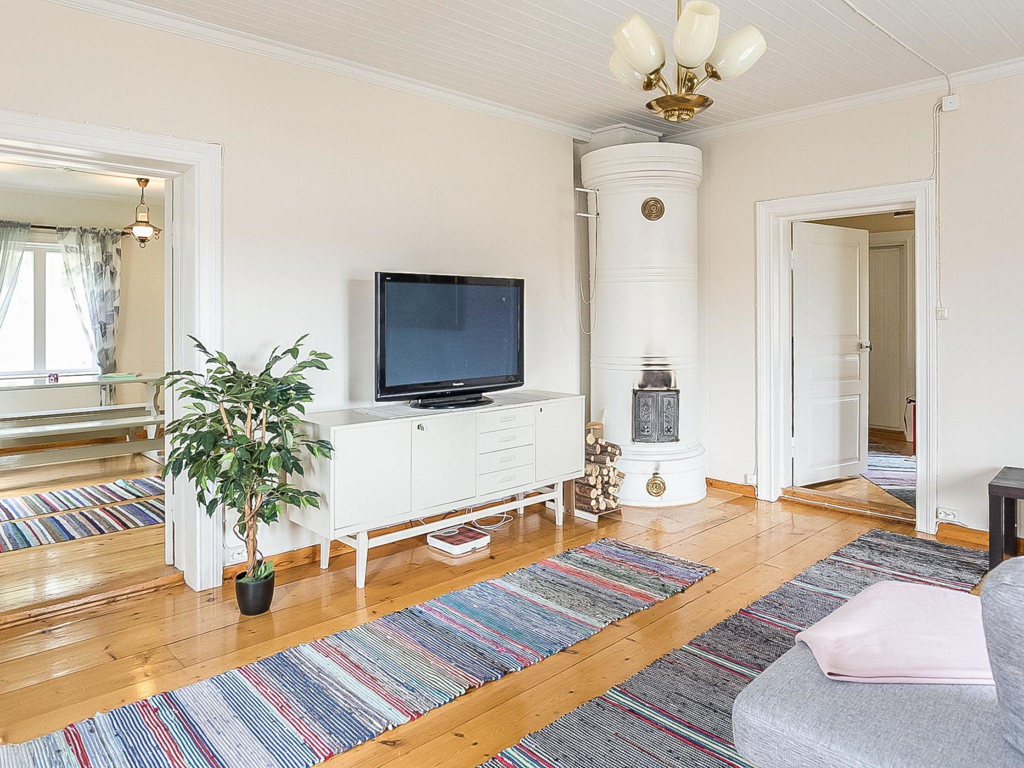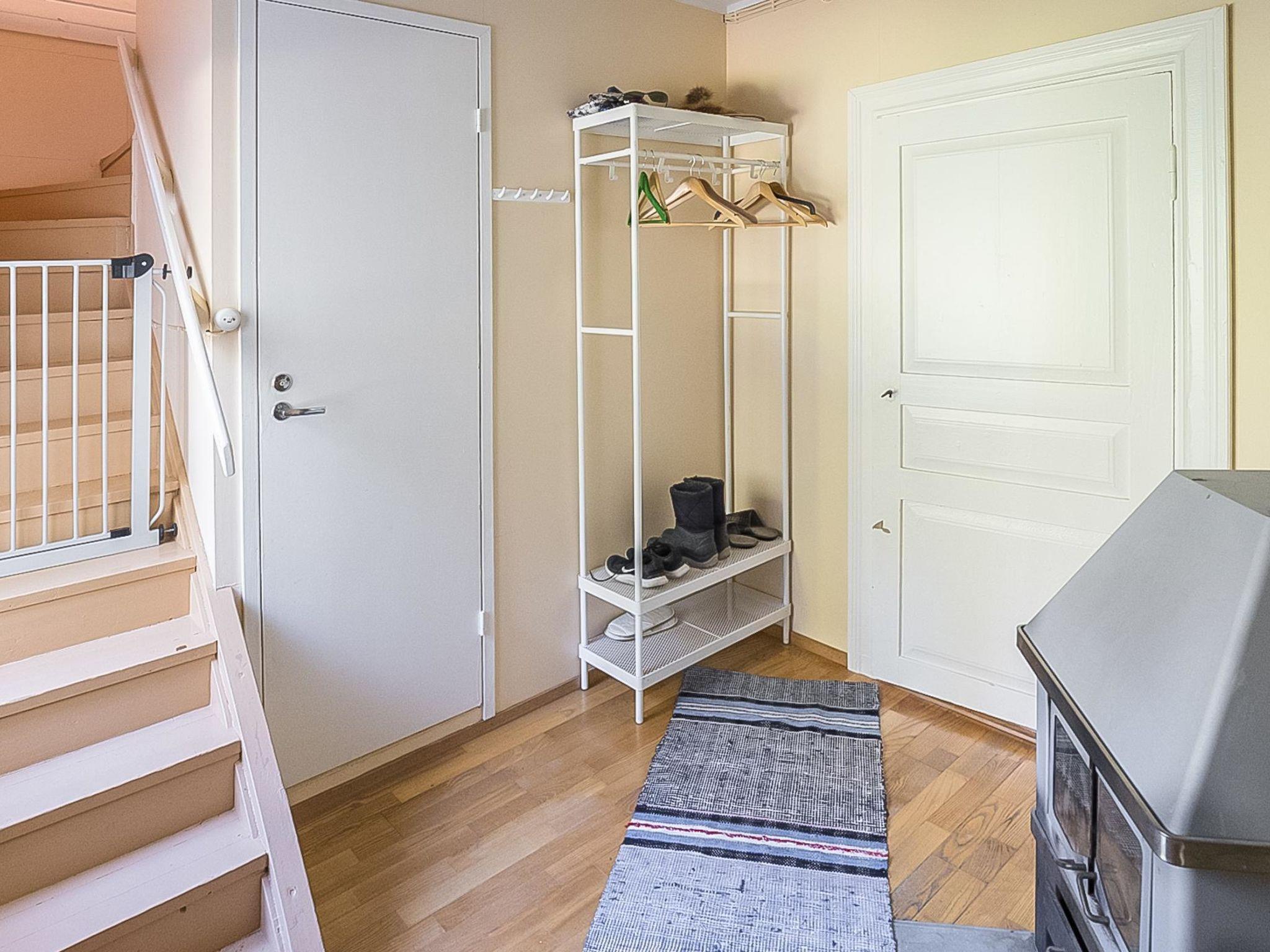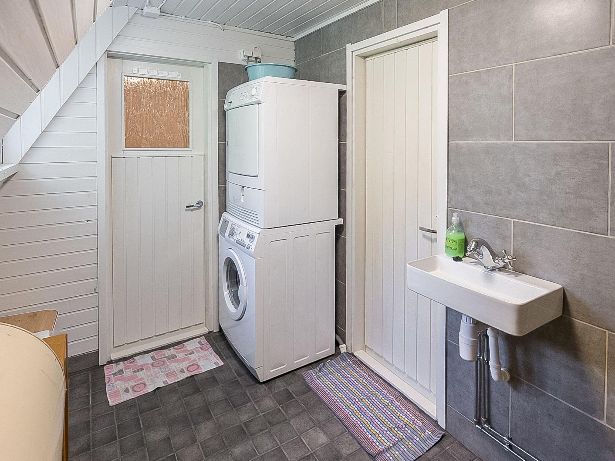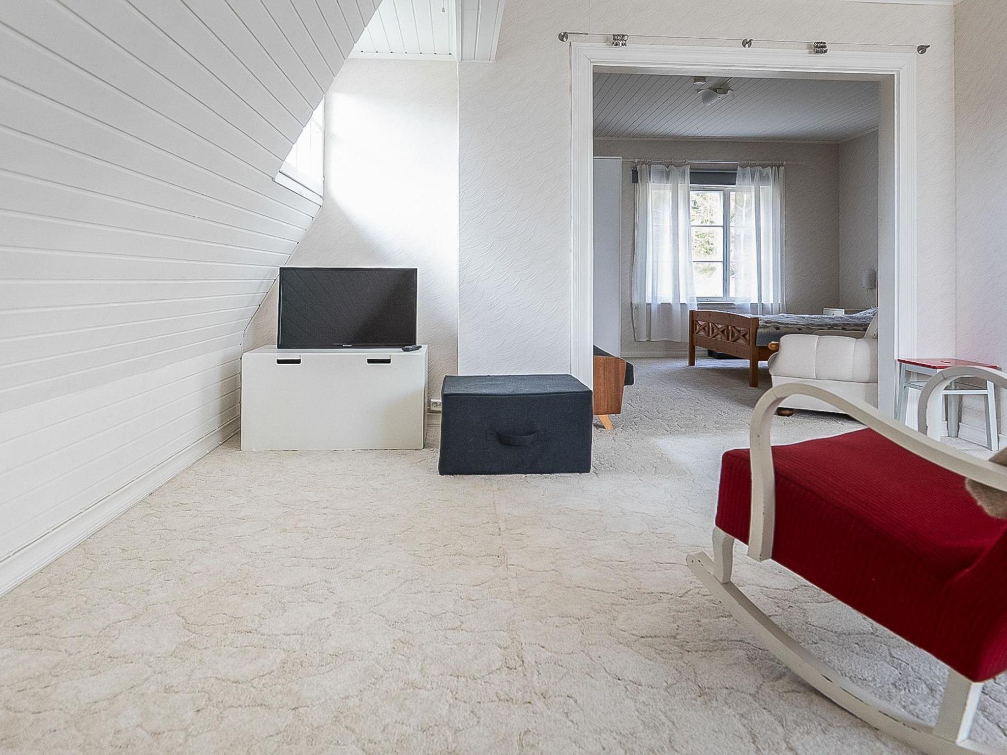 On the upper floor, there are two bedrooms separated by curtain. The master bedroom has a double bed and sofa bed. Another bedroom has a bunk bed. Lower bed is 120 cm wide and the upper bed is 80 cm wide. In addition, the room has a spreadable sofa bed, TV and DVD-player. Some extra beds are available by using cubic chair beds (3 beds total). On the upper floor, there are also newly renovated washroom and electric sauna.