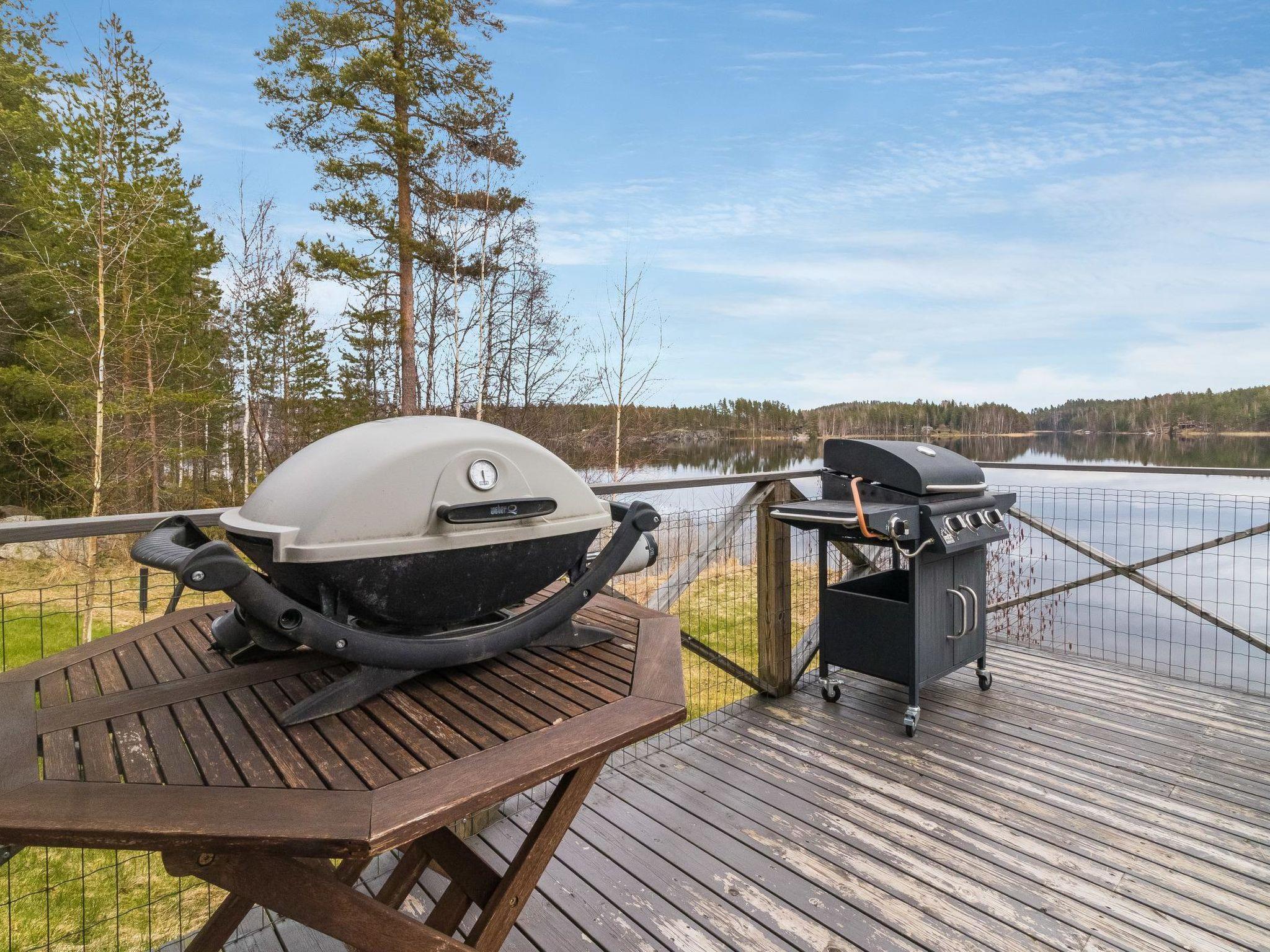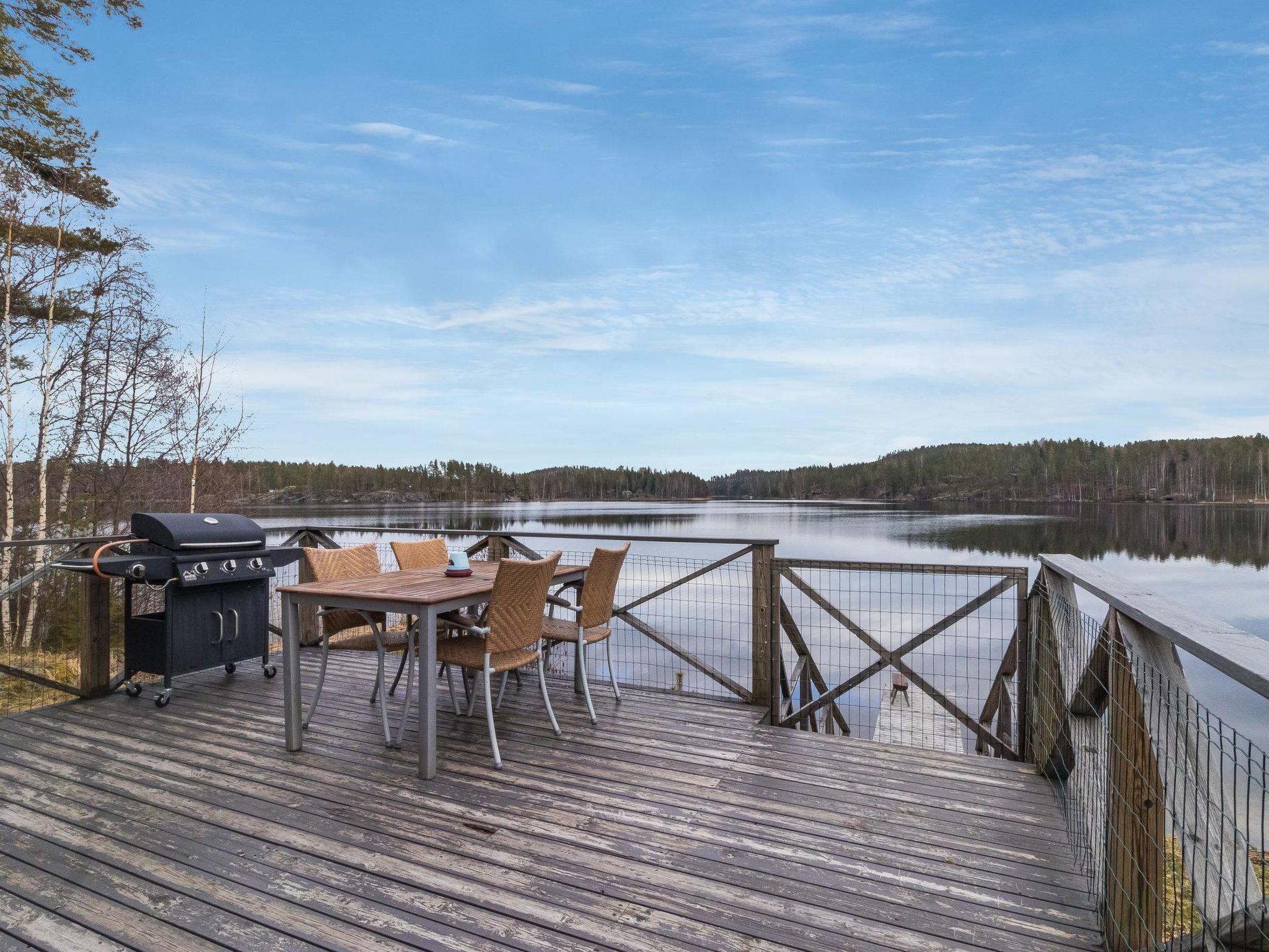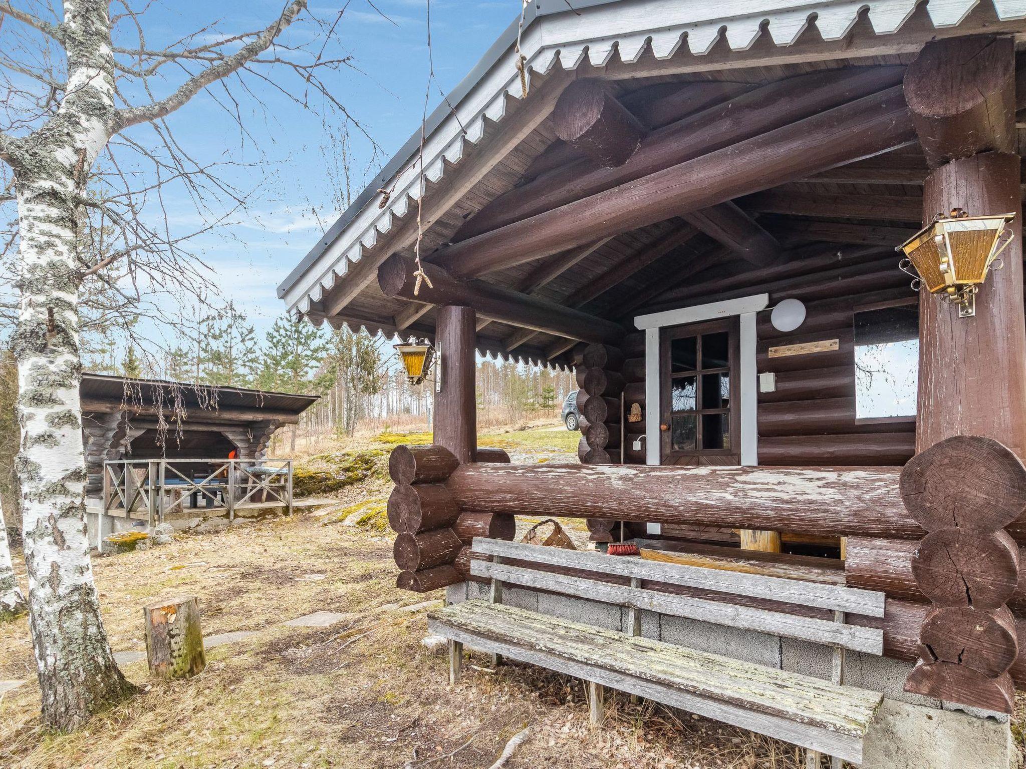 Log lakeshore sauna (6 m2) 1995, renovated 2011, wood-burning stove and hot water tank on stove, porch, electric light, water from well in summer, distance from shore approx. 5 m.