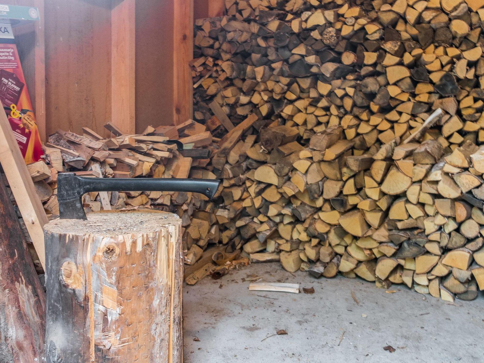 Separate sauna building with electric light, washroom and efficient wood-fired stove.