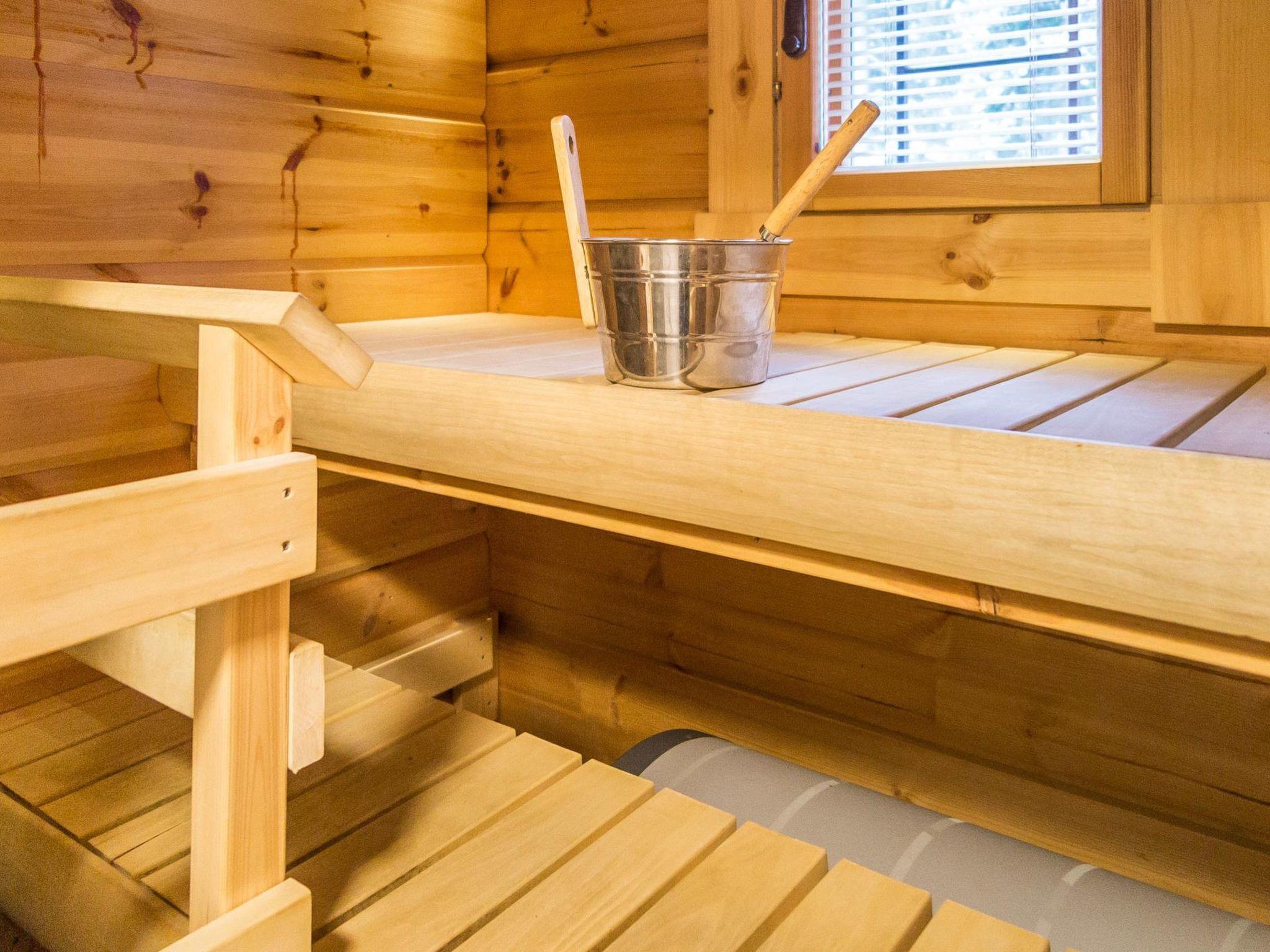 Apartment in a semi-detached house built in 2008, living room/kitchen, bedroom with 2 beds, washroom, WC, sauna (electric sauna stove), upstairs bedroom with 2 beds and hall with sofa bed for two, 2 mattresses, WC. Air source heat pump.