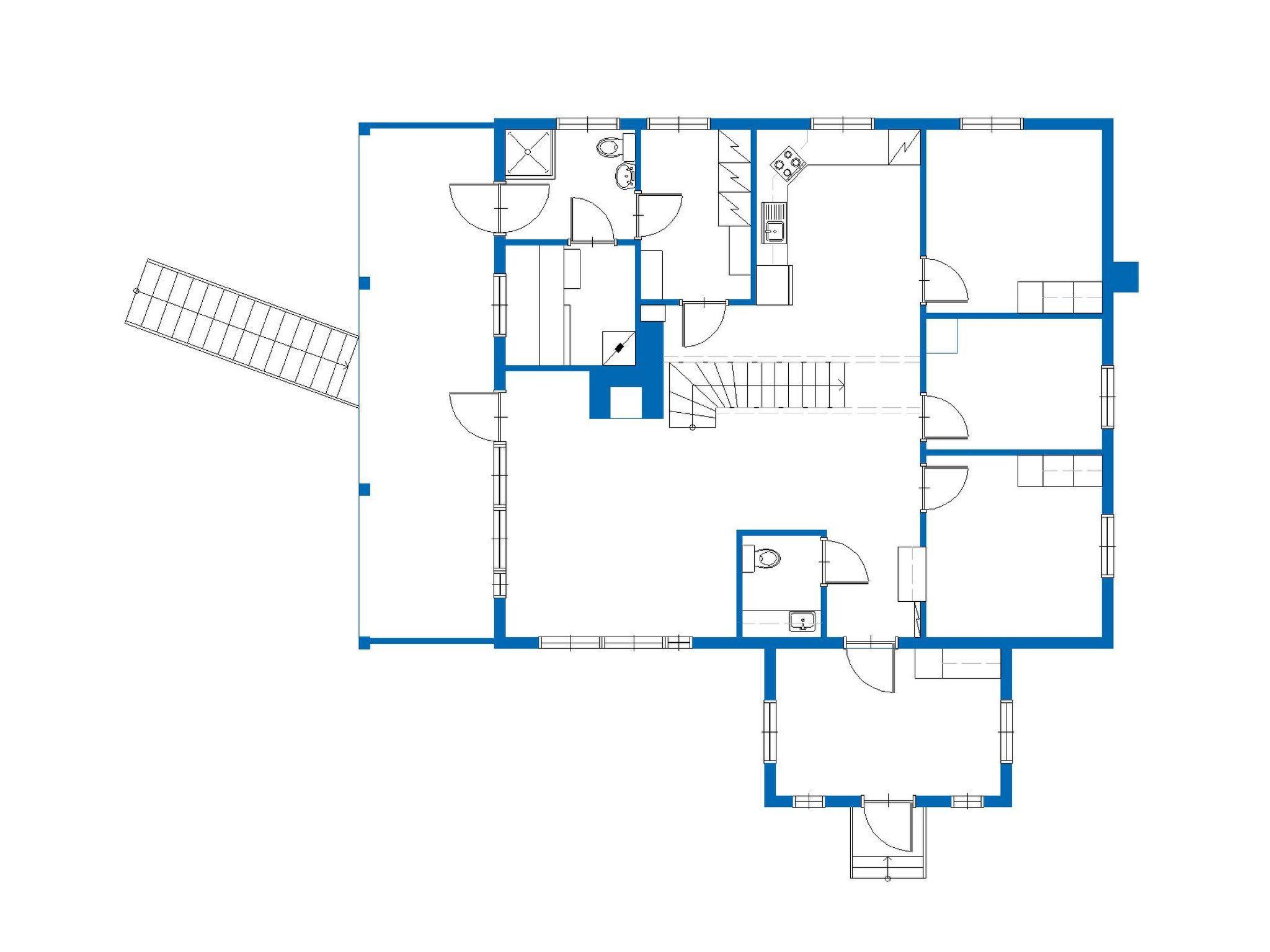 Wooden cottage 2007 (upstairs built 2010) kitchen, living room, bedroom double bed, bedroom 2 beds, bedroom 1 bed, upstairs bedroom 2 beds, bedroom 1 bed and balcony, sauna, washroom, dressing room, terrace and glazed porc.