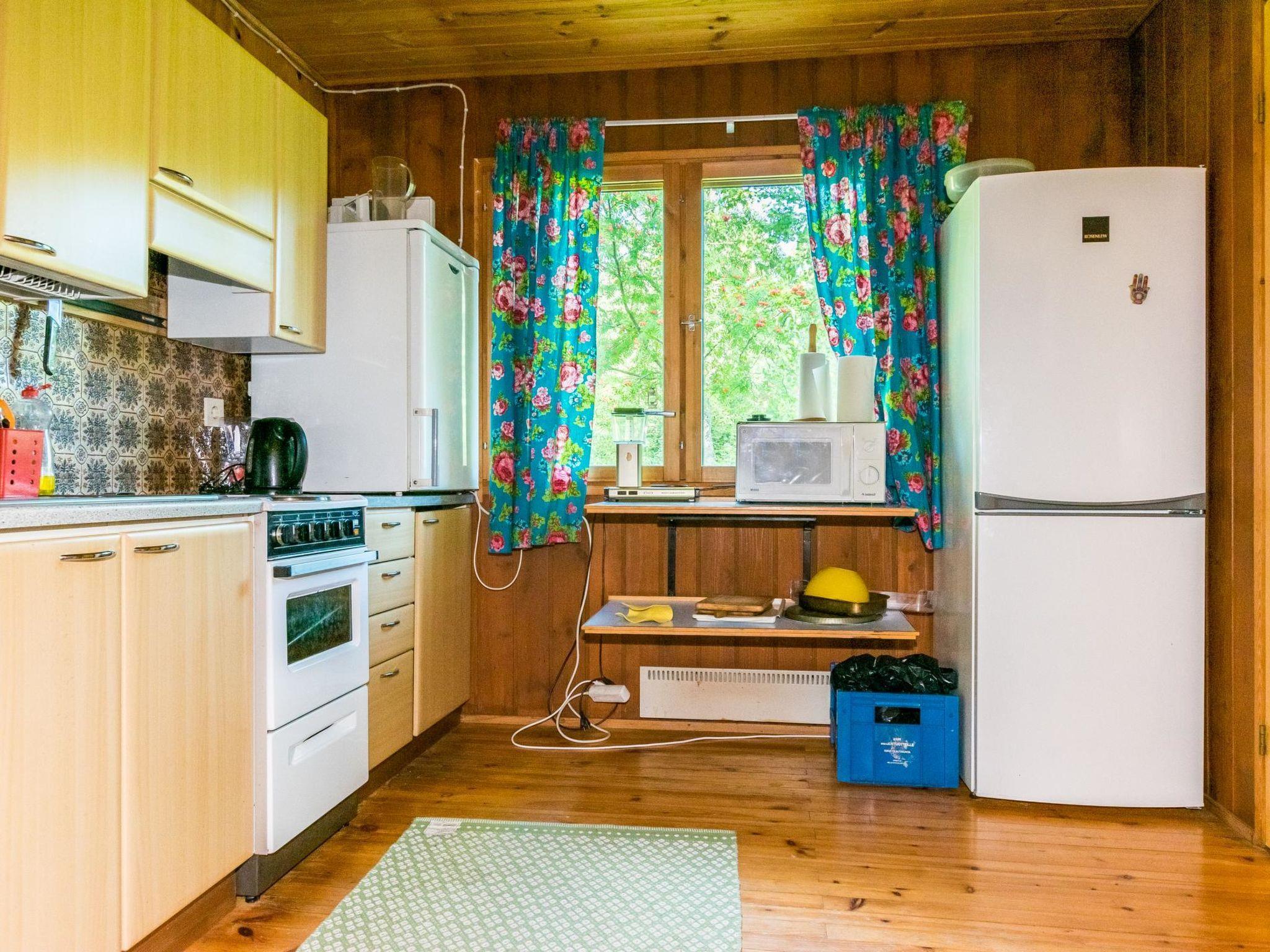 Wooden cottage 1983, living room/kitchen extra bed for 2, 2 bedrooms each with 2 beds, washroom and sauna renovated 2023, open porch. A small freezer and a second refrigerator are available from the owner upon pre-order.