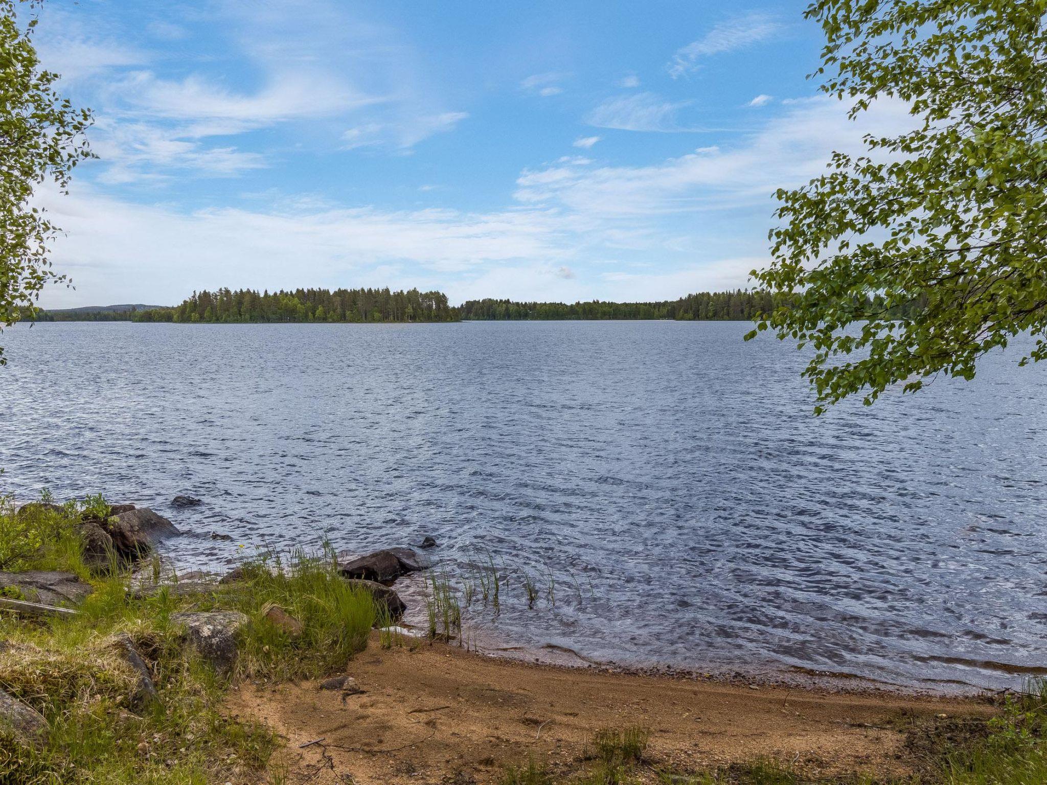 From the living room, step directly onto a large terrace facing the lake — ideal for morning coffee, grilling, or admiring the evening sun. A rowing boat is available for guest use, and the shared beach offers a refreshing swim in Lake Mourujärvi. The beach is steep, partly sandy and partly rocky.