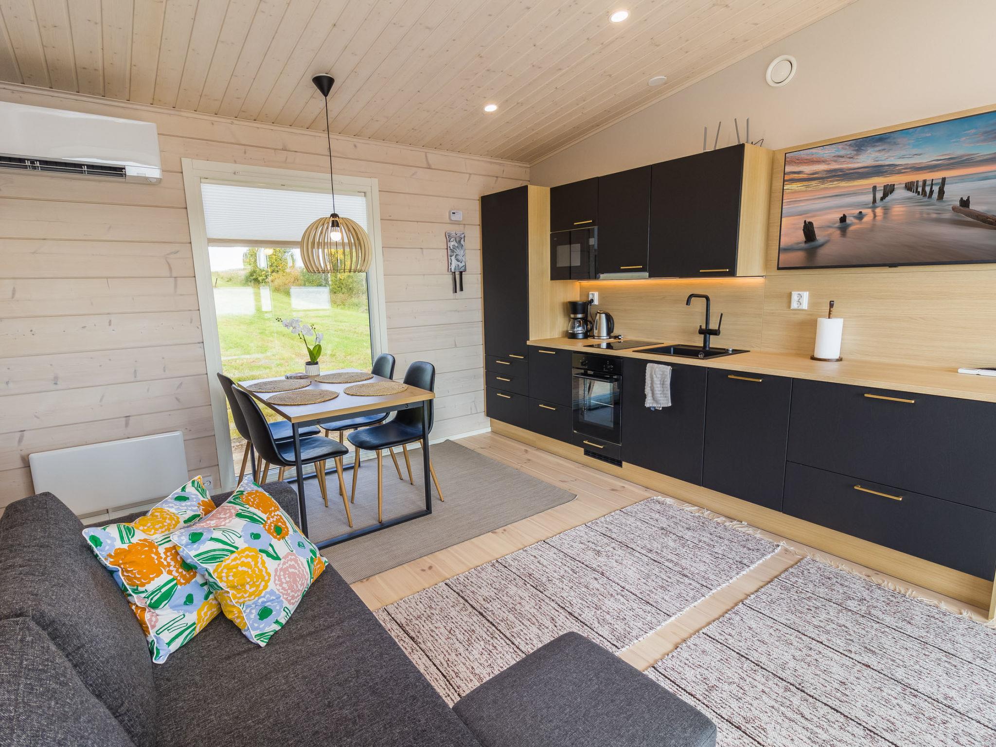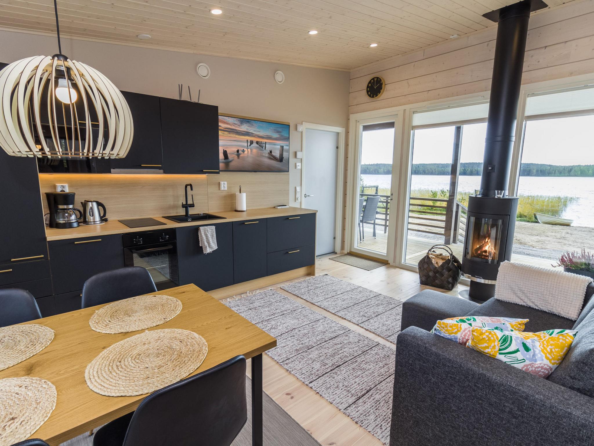 A living room/kitchen provides a cozy setting for cooking and dining, while the wood-heated sauna adds a relaxing touch to your holiday. The tranquil location, private beach, and modern facilities ensure a comfortable and enjoyable stay year-round.