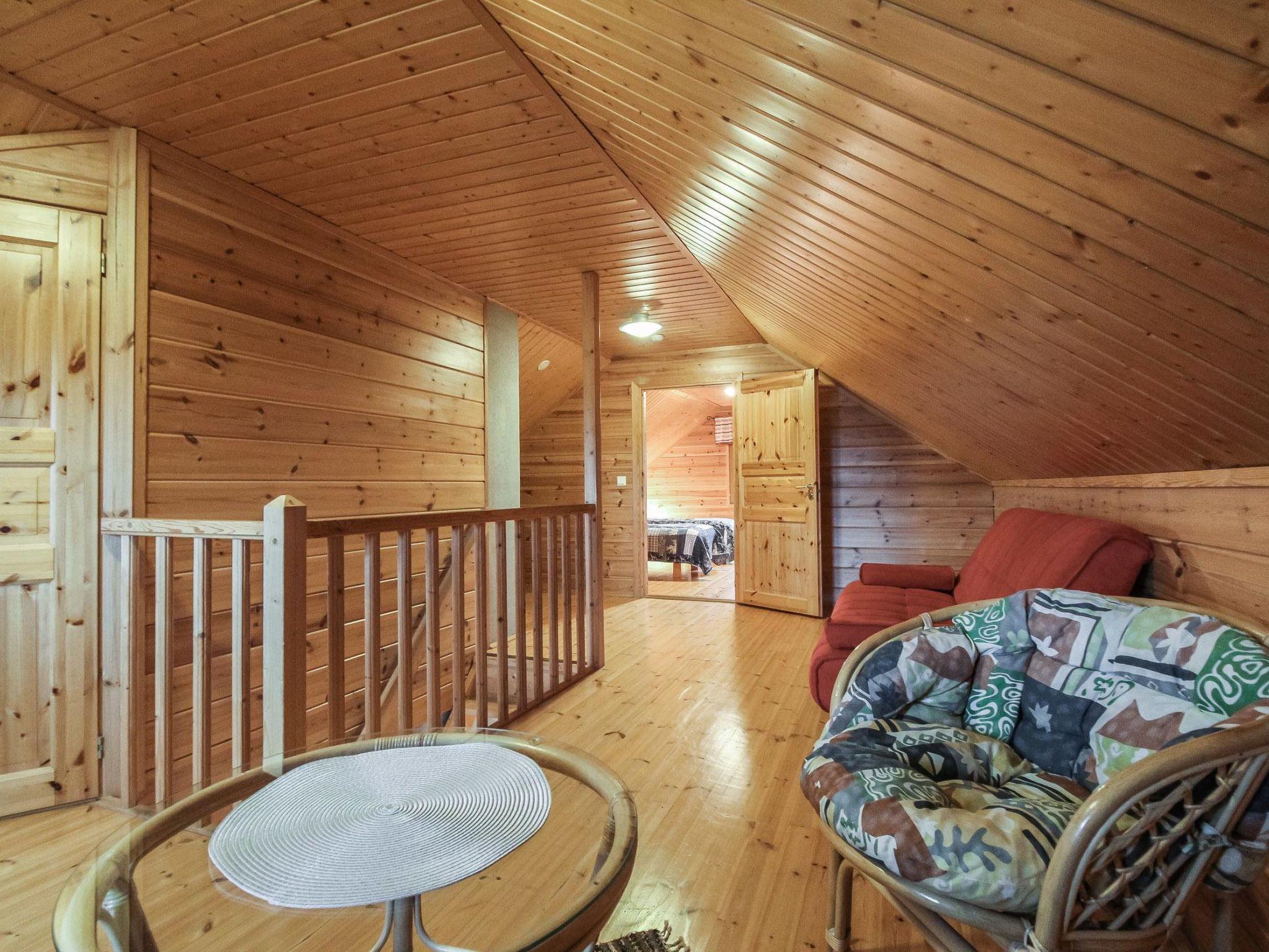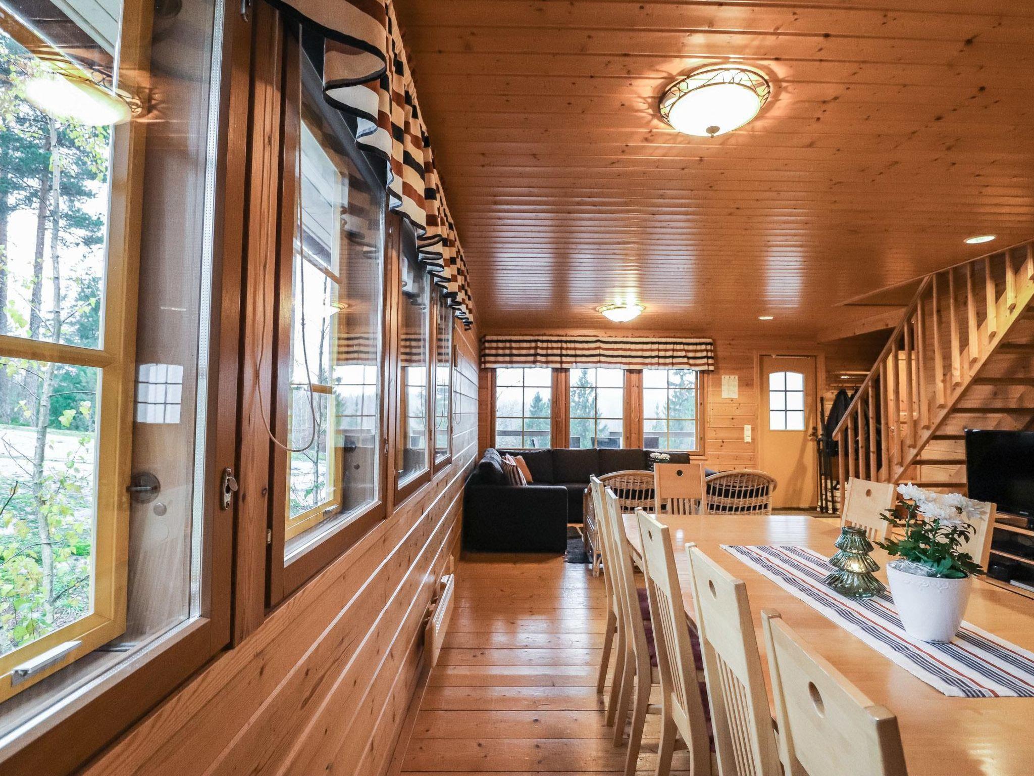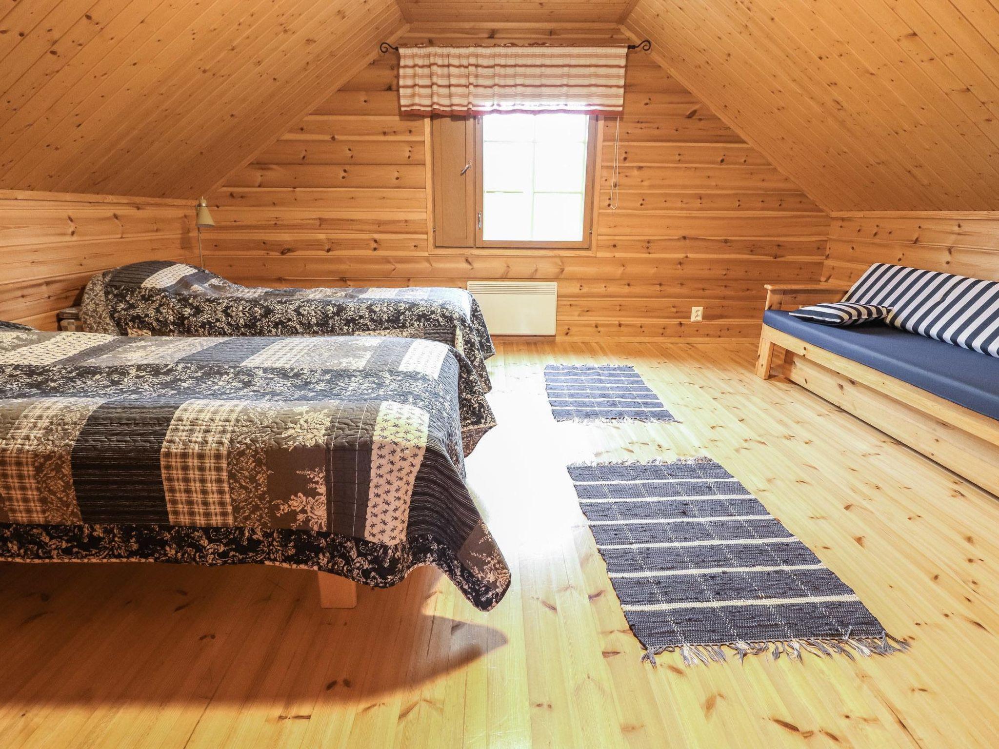 2-storey log cottage 2004, kitchenette, living room with fireplace, bedroom with two beds, bedroom with two beds, toilet, sauna (wood-burning stove), shower room, dressing room. Upstairs lounge (foldable sofa bed 145x190 cm), bedroom with two beds, balcony.