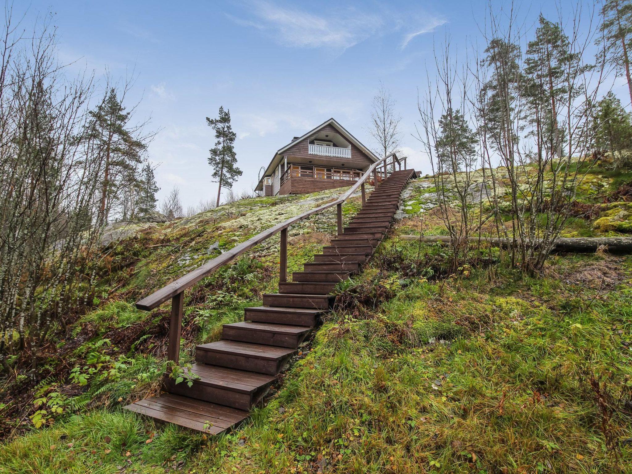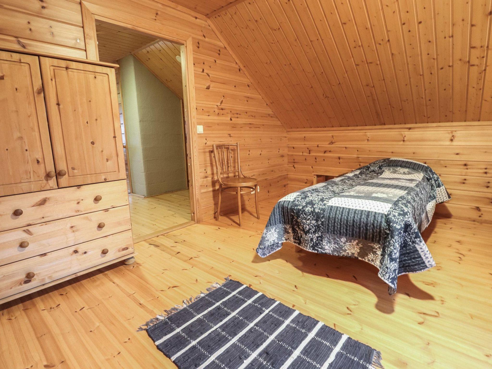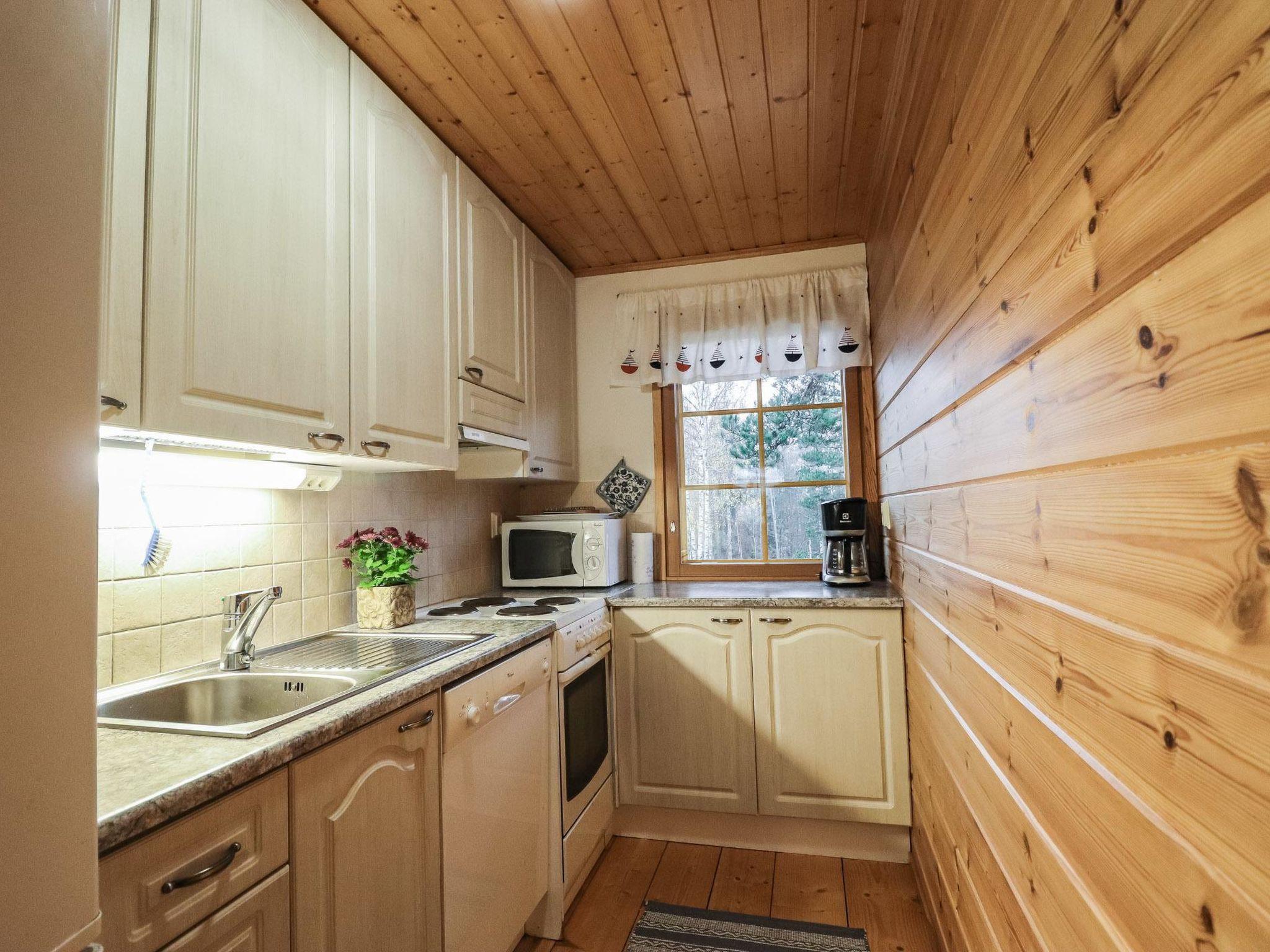 2-storey log cottage 2004, kitchenette, living room with fireplace, bedroom with two beds, bedroom with two beds, toilet, sauna (wood-burning stove), shower room, dressing room. Upstairs lounge (foldable sofa bed 145x190 cm), bedroom with two beds, balcony.