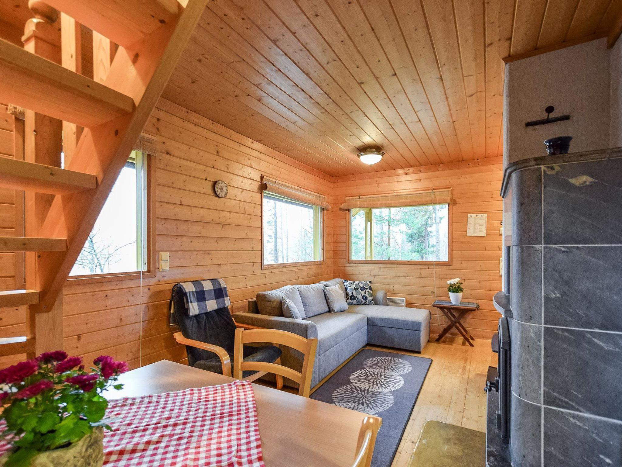 2-storey log cottage, kitchen corner, living room with fireplace and foldable sofa bed, eco-toilet, sauna (wood-burning stove), shower room, dressing room, porch, terrace.