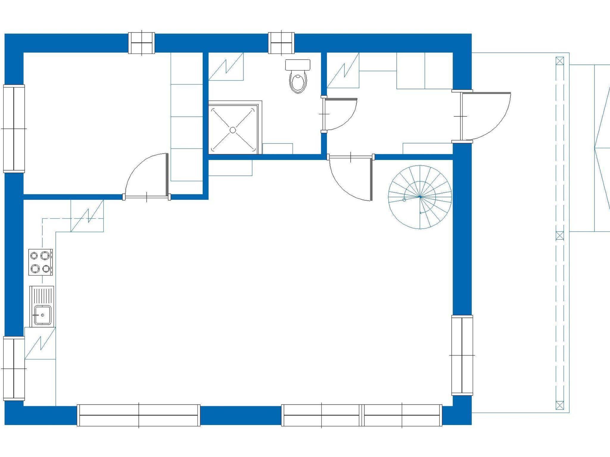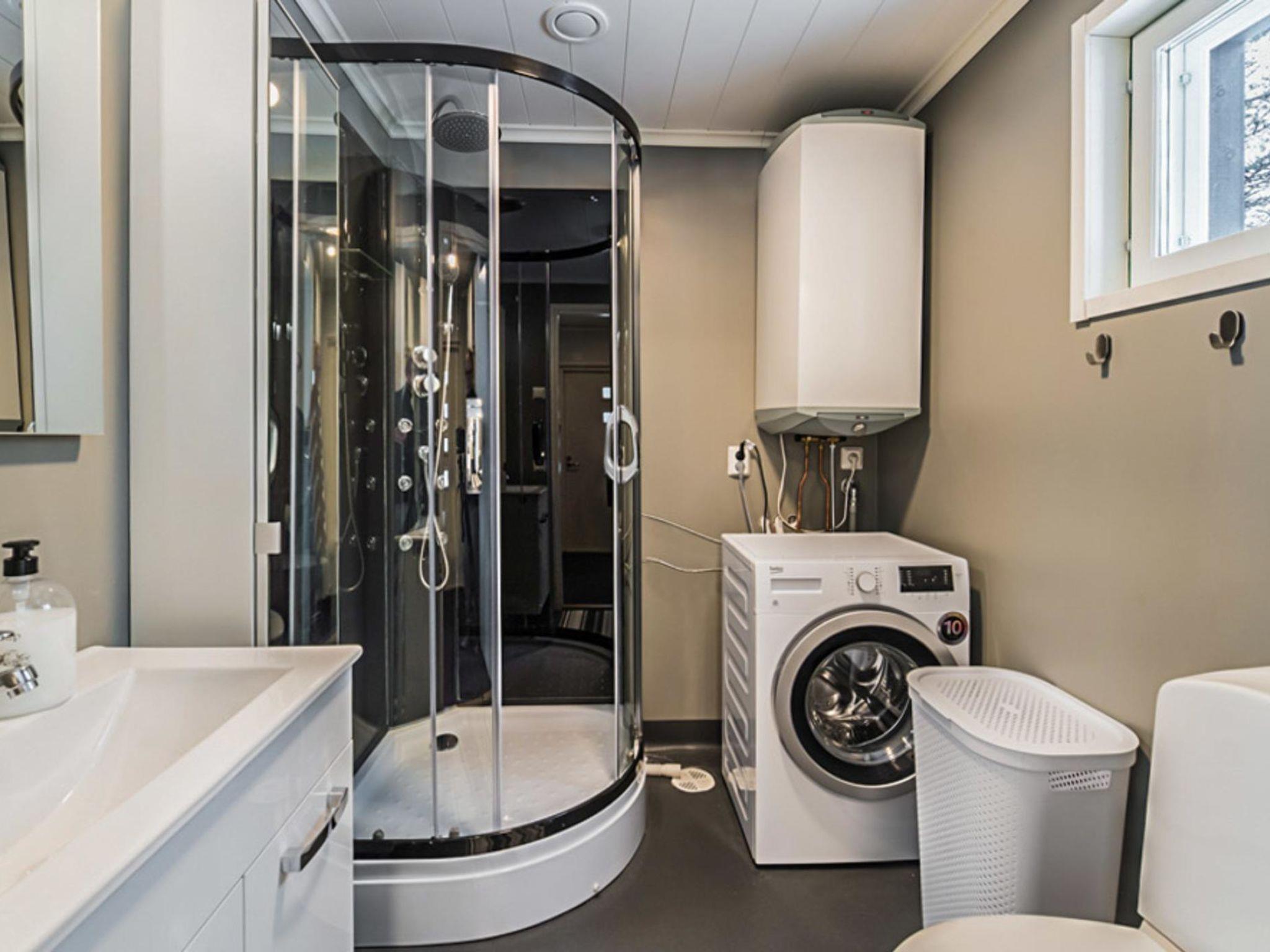 Separated building with sauna includes a steam room (wood-burning sauna stove) and a dressing room. There is a floor heating in the sauna. No water pipe to the sauna, so water should be carried from villa’s water post. Water can be heated in a tank connected to sauna stove’s chimney.