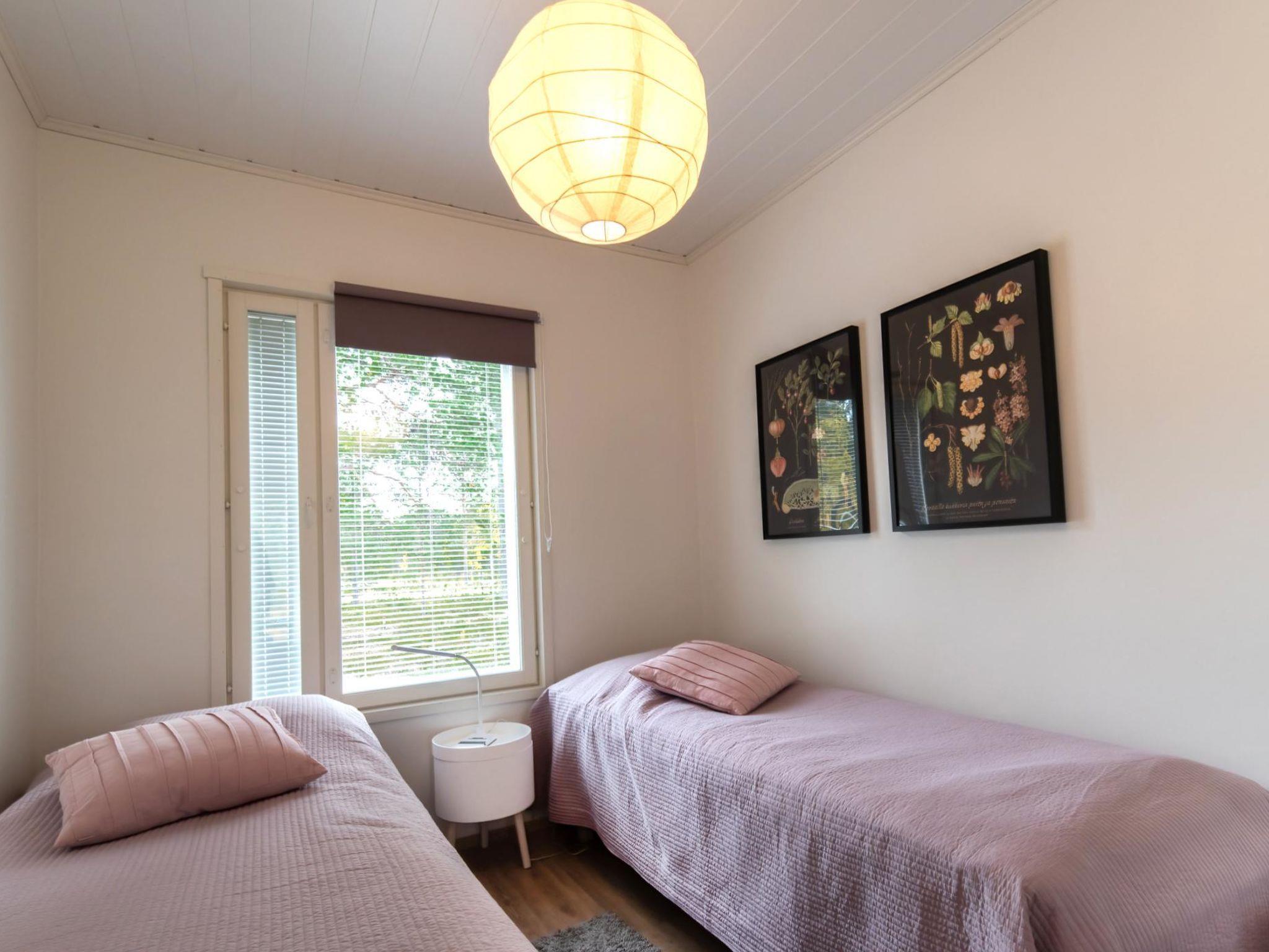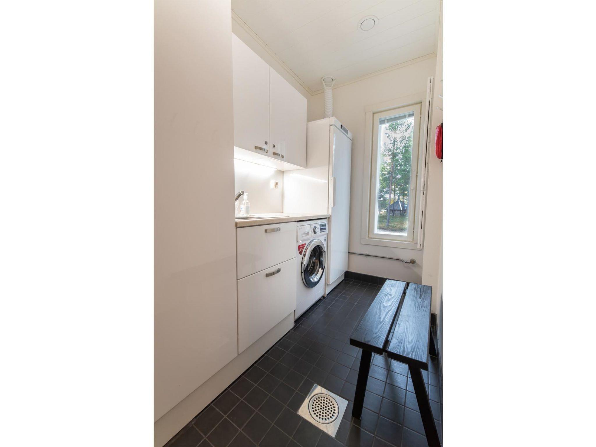 Log paneled cabin, built in 2019. Living room/kitchen, double bed in the bedroom, two other bedrooms with two single beds, sauna, washroom/WC, utility room, separate WC and partially covered terrace.
