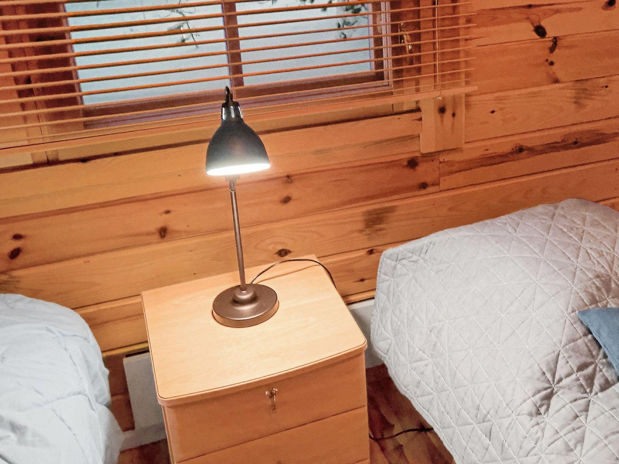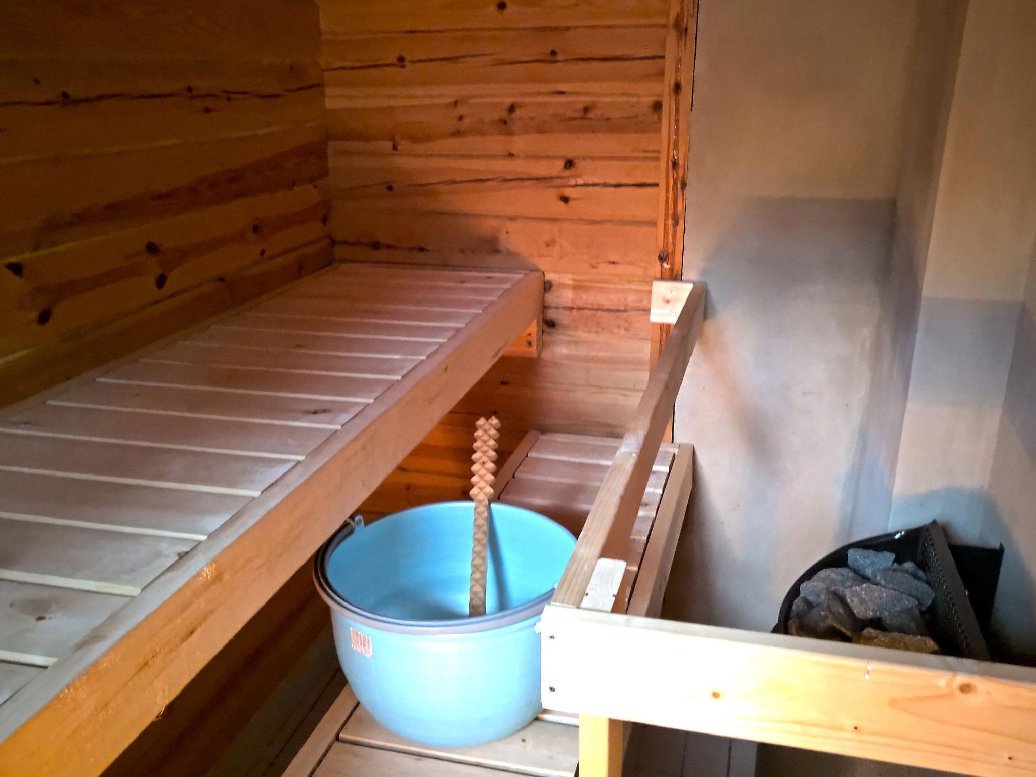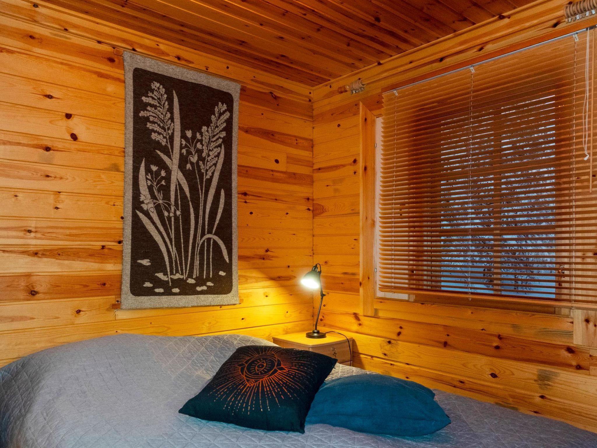 Planed log cabin, built in 1993. Living room with sofa bed, kitchenette, two bedrooms, each with two beds. The beds can be placed side by side or separately. When placed separately, there is space for bedside table (distance between the beds is 80 cm). Sauna, washroom/WC, covered terrace and small storage.