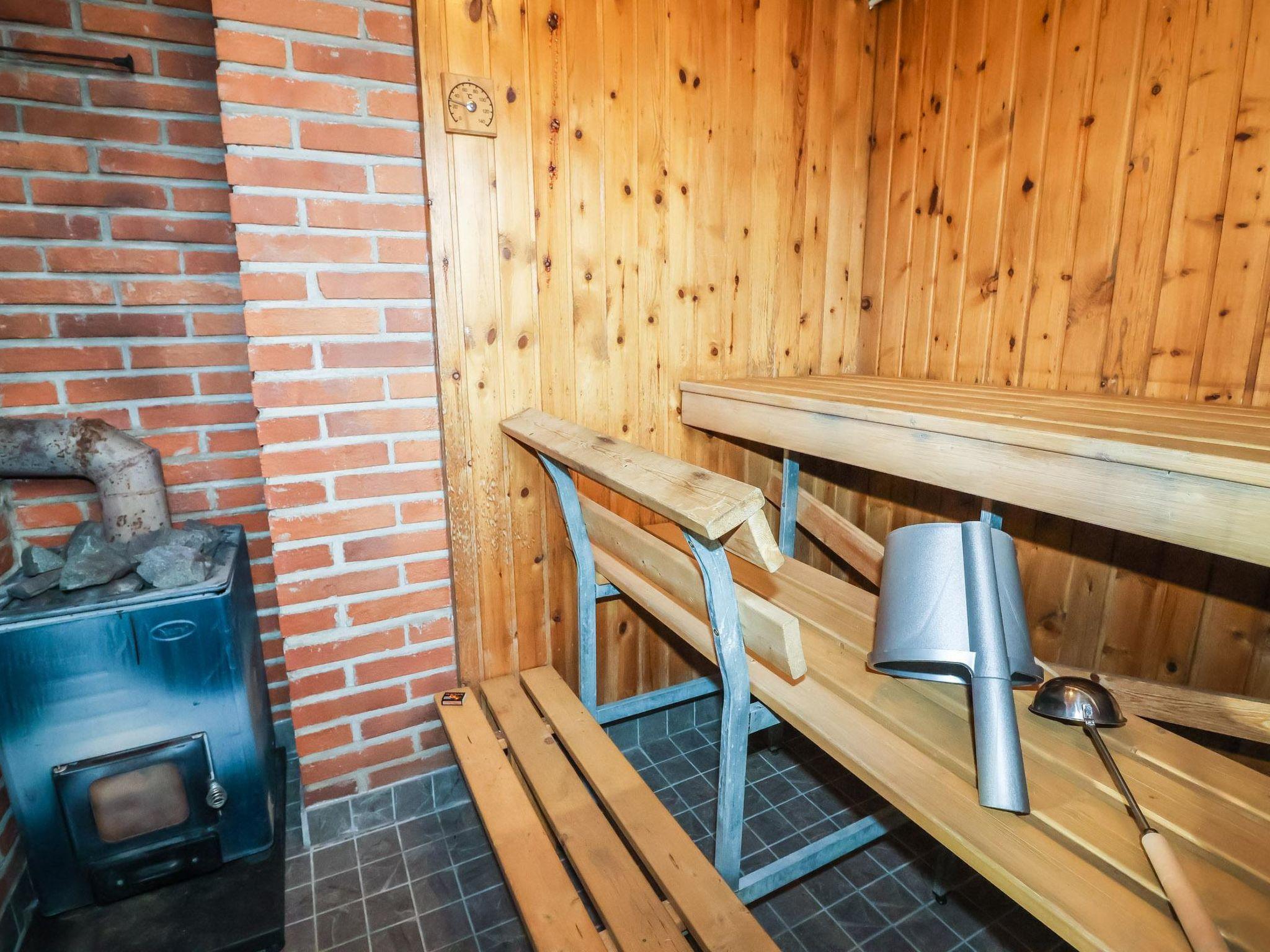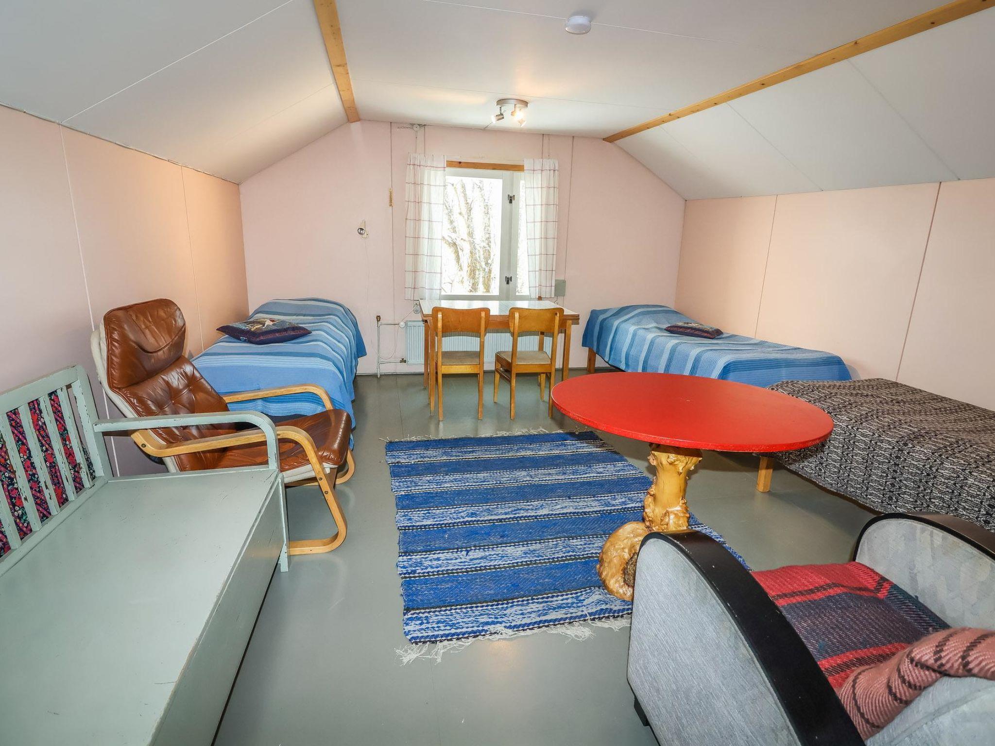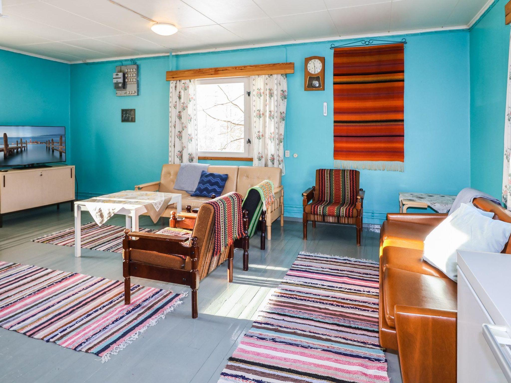250 km north of Rovaniemi. The house was originally built in 1968, extended in 1985, and renovated in 2014 and 2024. The ground floor features a living room, kitchen, one bedroom with a double bed (160 cm wide), a wood-heated sauna, and a washroom. On the upper floor, there are two bedrooms, each with two single beds (80 cm wide).