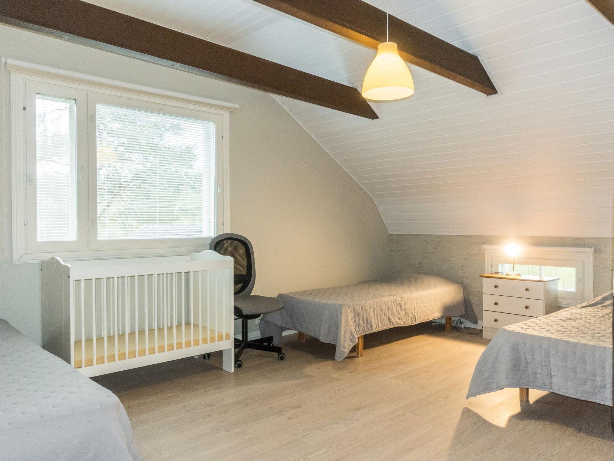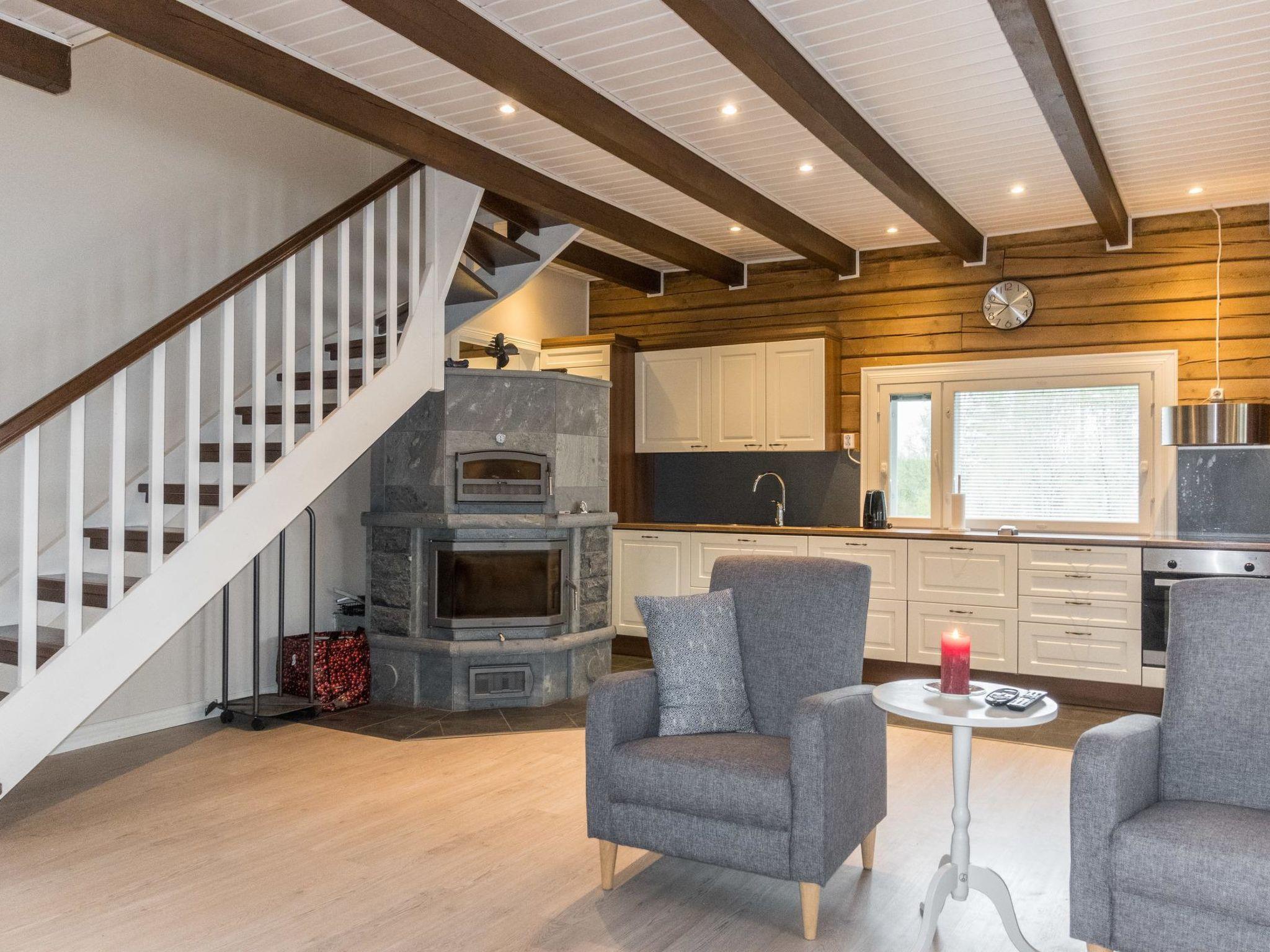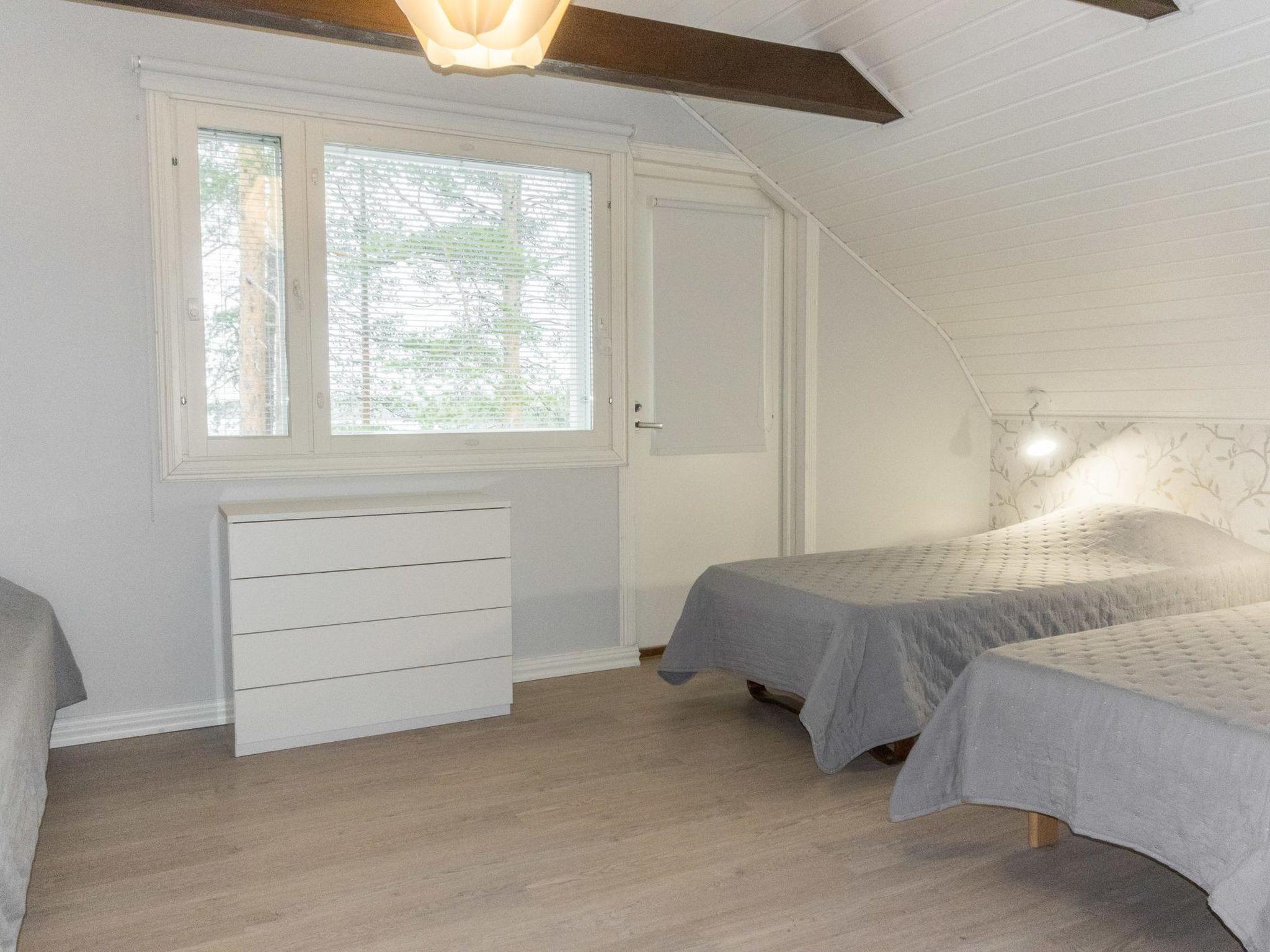 Log house, built in 1949, renovated and renewed in 2020. Living room / kitchen has sofa bed, 2 bedrooms on the upper floor, each with 3 beds, spreadable bed (width 140 cm) in the sleeping alcove ground floor, sauna, washroom, separate WC and a utility room. On the upper floor, there is also lobby with extra bed, balcony (access from the bedroom), WC and shower.
