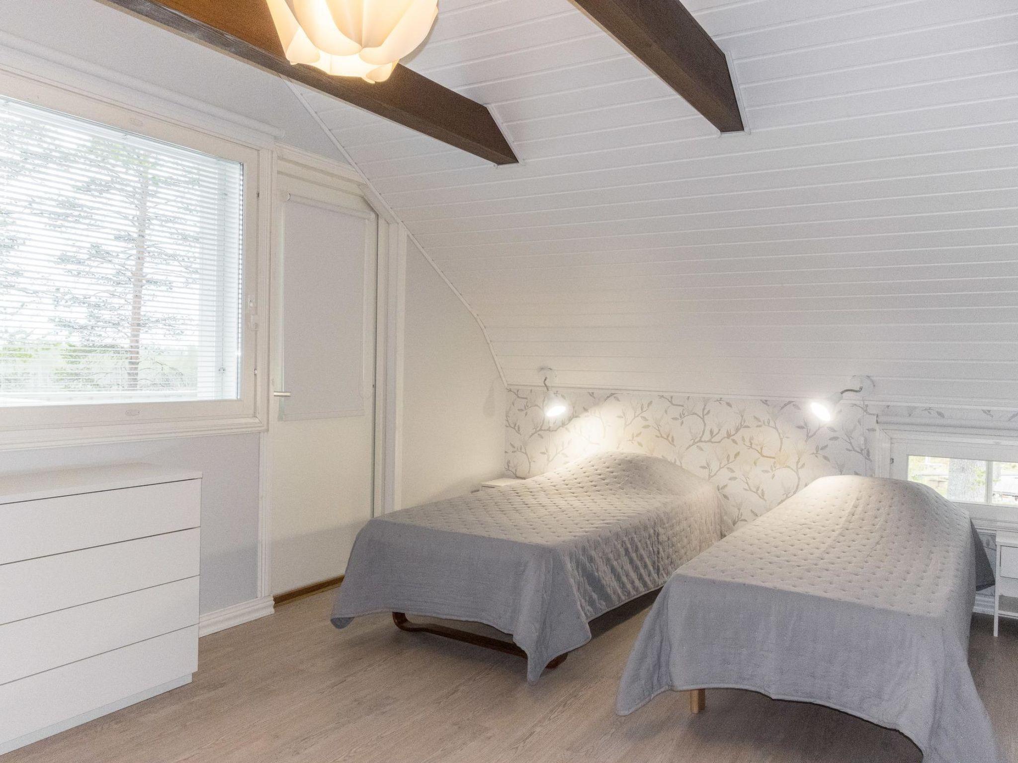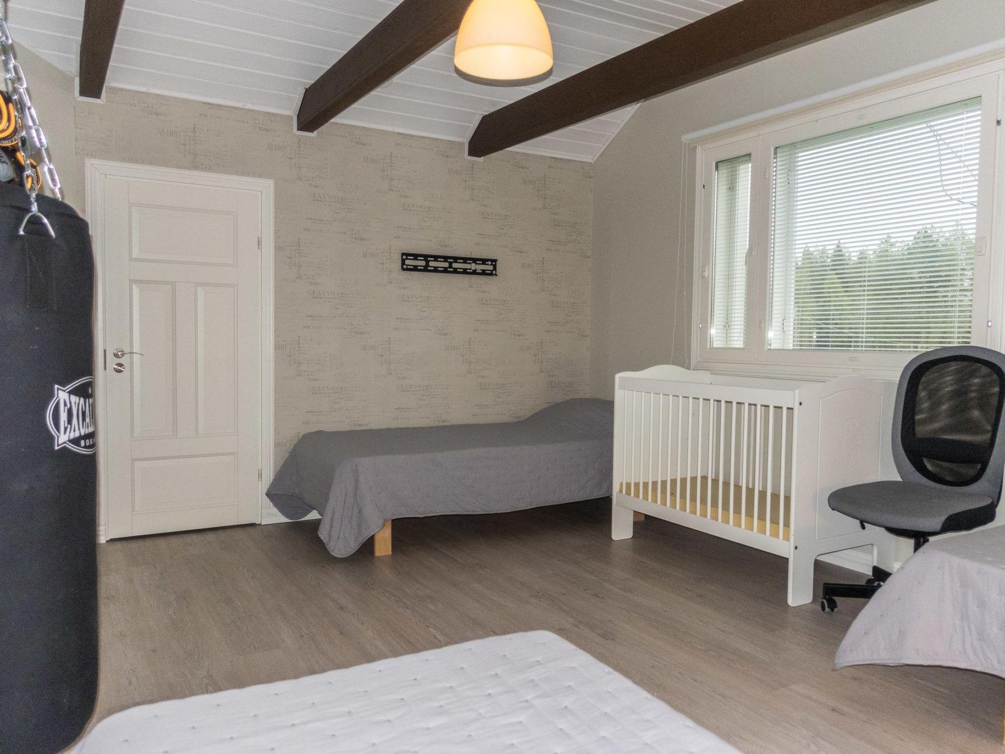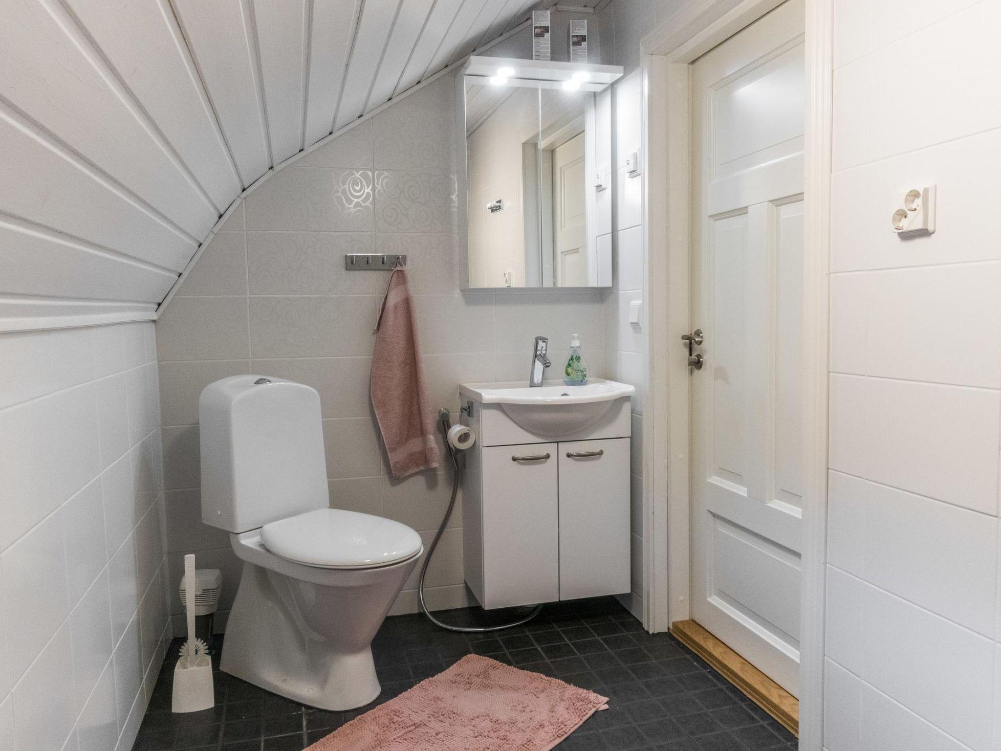Log house, built in 1949, renovated and renewed in 2020. Living room / kitchen has sofa bed, 2 bedrooms on the upper floor, each with 3 beds, spreadable bed (width 140 cm) in the sleeping alcove ground floor, sauna, washroom, separate WC and a utility room. On the upper floor, there is also lobby with extra bed, balcony (access from the bedroom), WC and shower.
