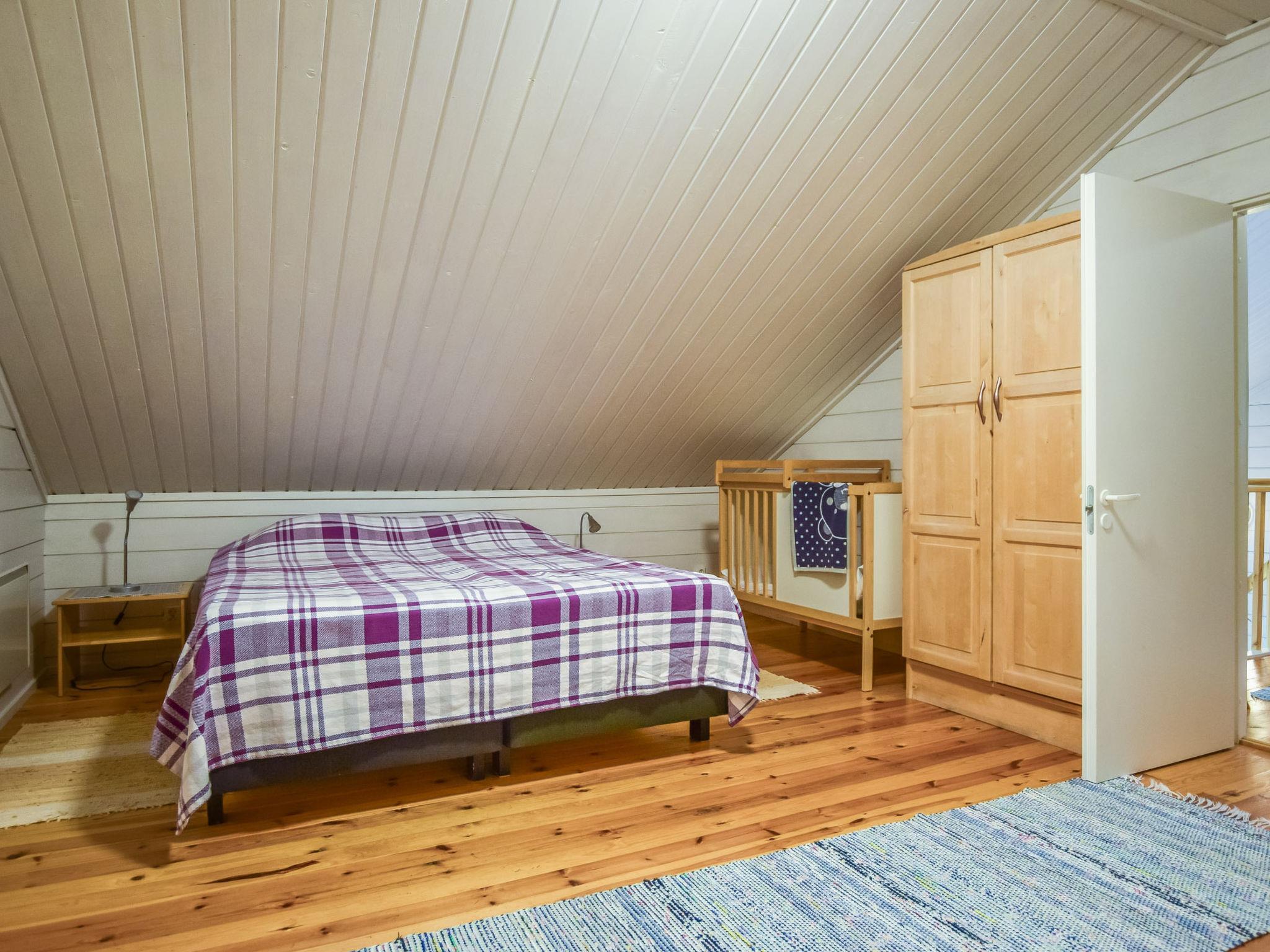76 km south-west of Kuopio, L. Pieni-Myhijärvi 25 m (length 5 km, width 600 m), shallow, hard sanded clay bottom, own boat. Log cottage 2001, living room/ kitchen, bedroom double bed, upstairs bedroom double bed, sleeping loft double bed, dressing room, washroom, sauna, open porch and balcony.
