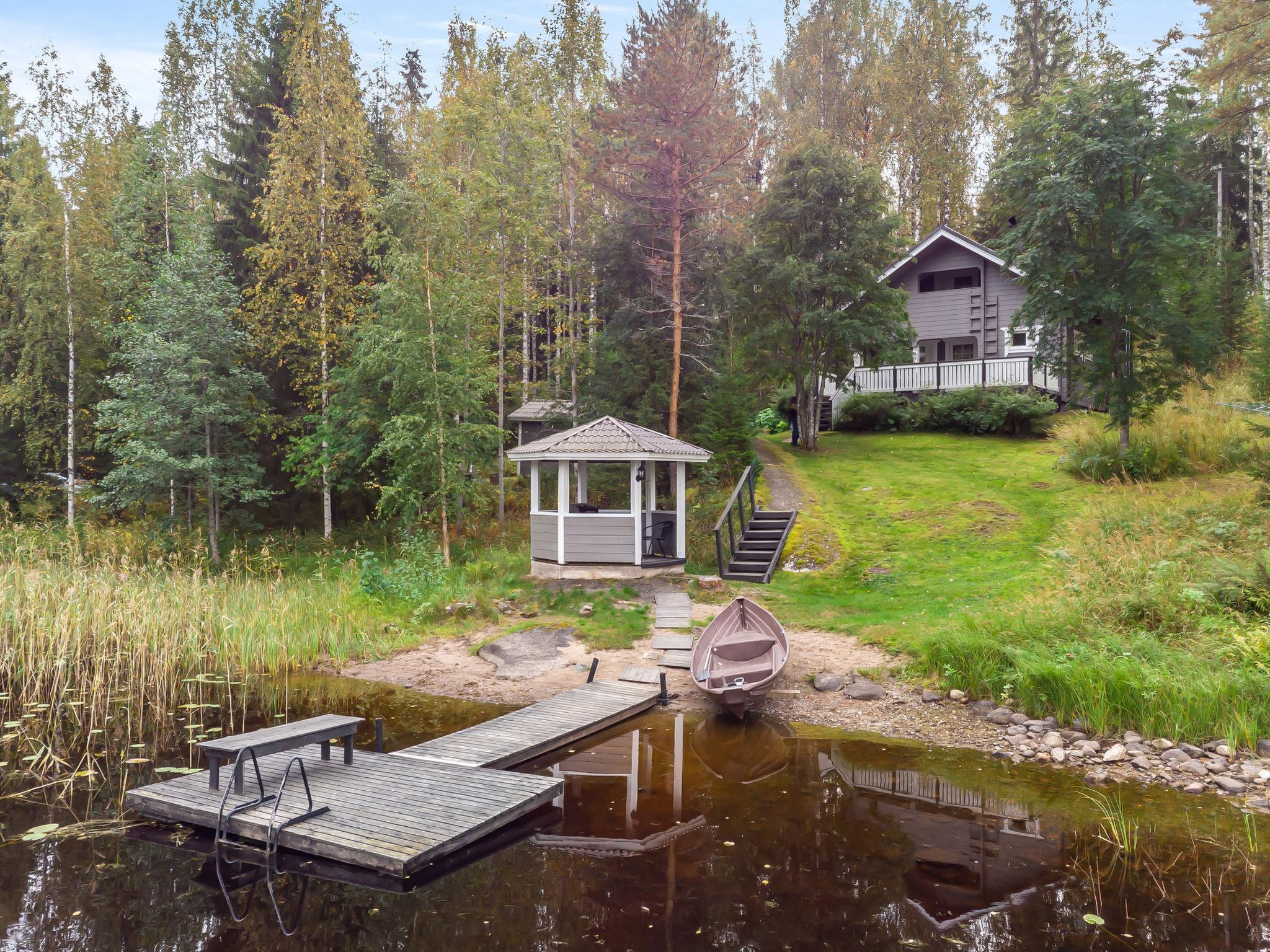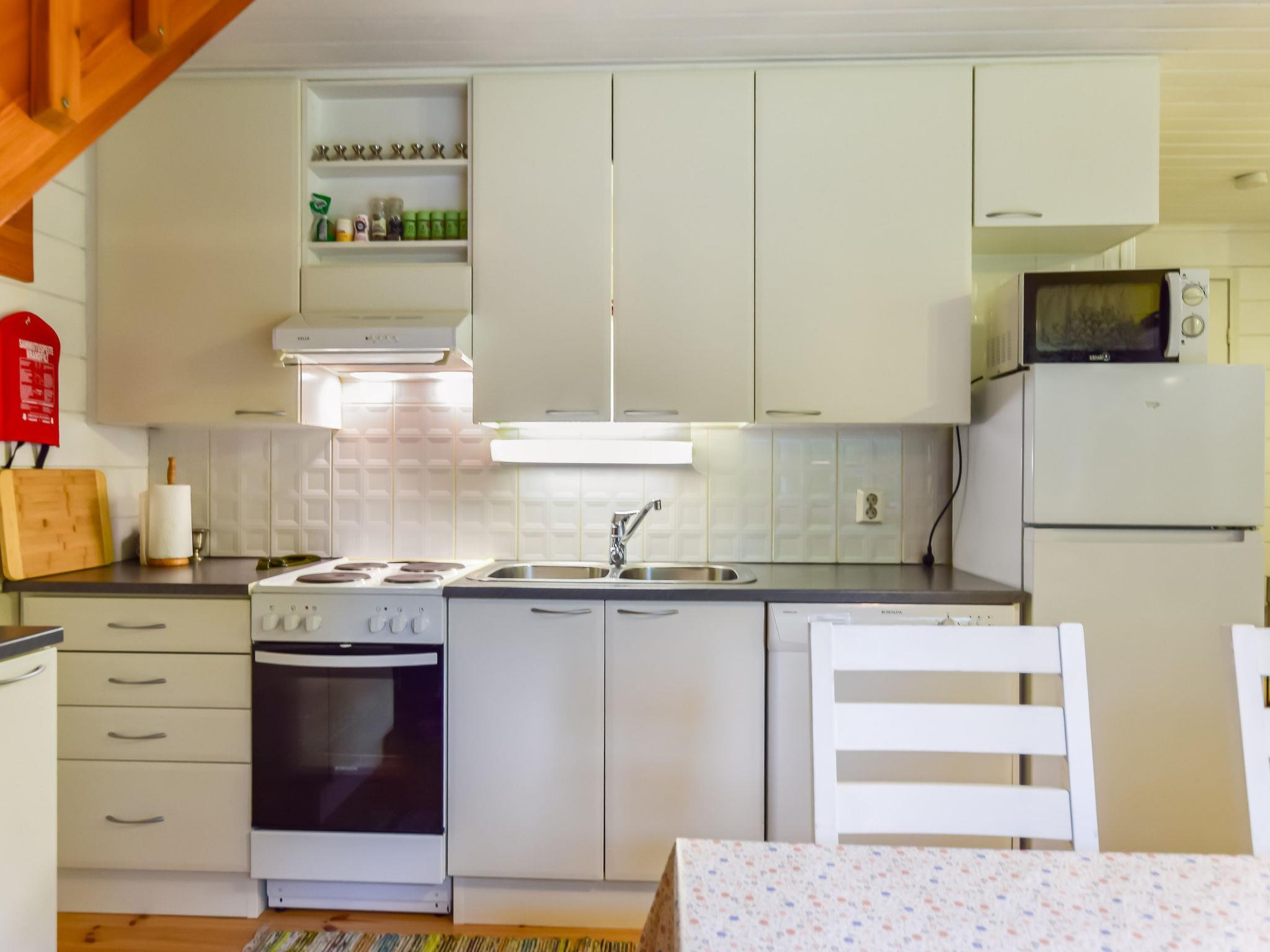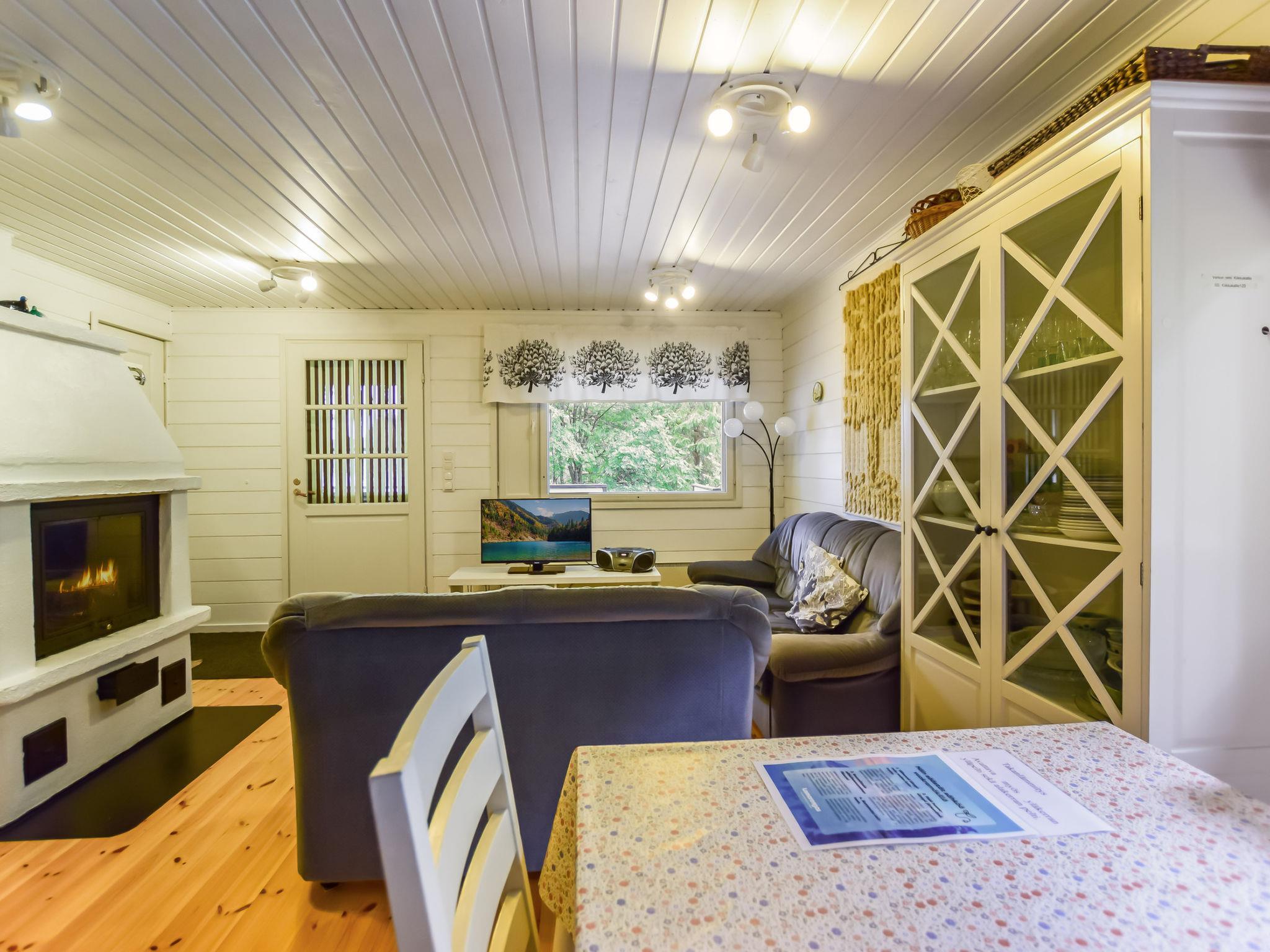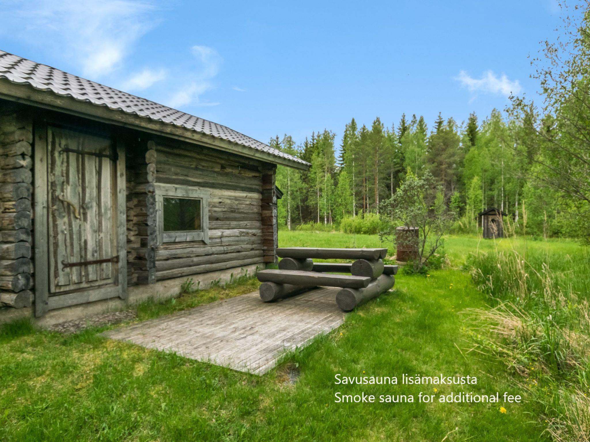 Log cottage 1998, kitchen-living room, bedroom with double bed, sauna (wood-burning stove), bathroom, dressing room and terrace. Upstairs bedroom with double bed, loft with double bed, balcony.