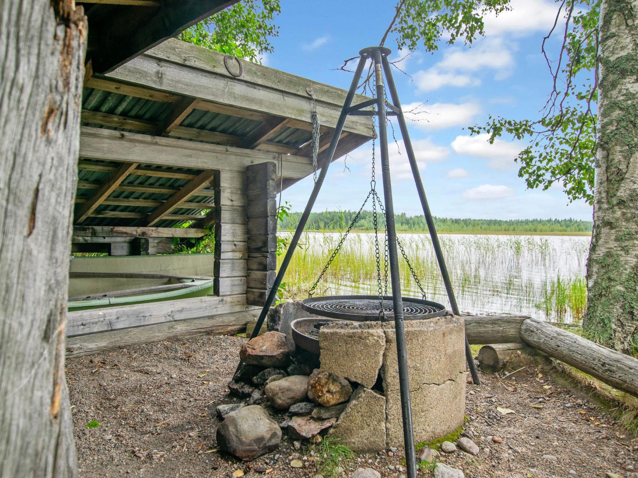 84 km southwest of Kuopio, Sonkari lake 30 m, shallow, sanded hard slit bottom, dock and boat.