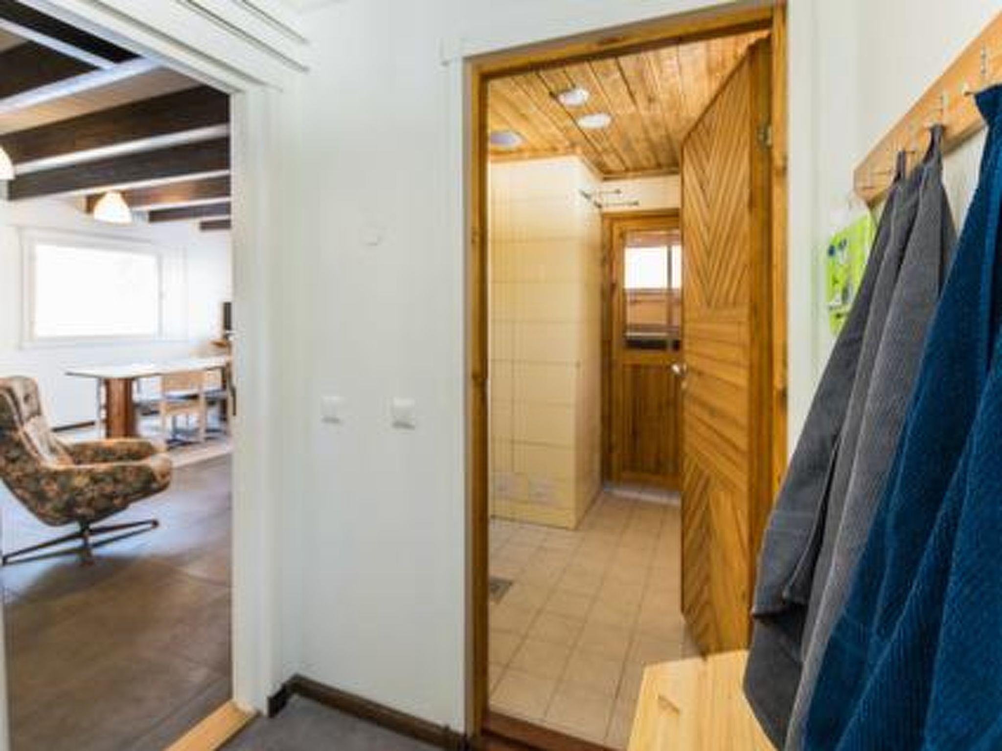 Downstairs kitchen-living room with sofa bed. Toilet, sauna, washroom and dressing room.