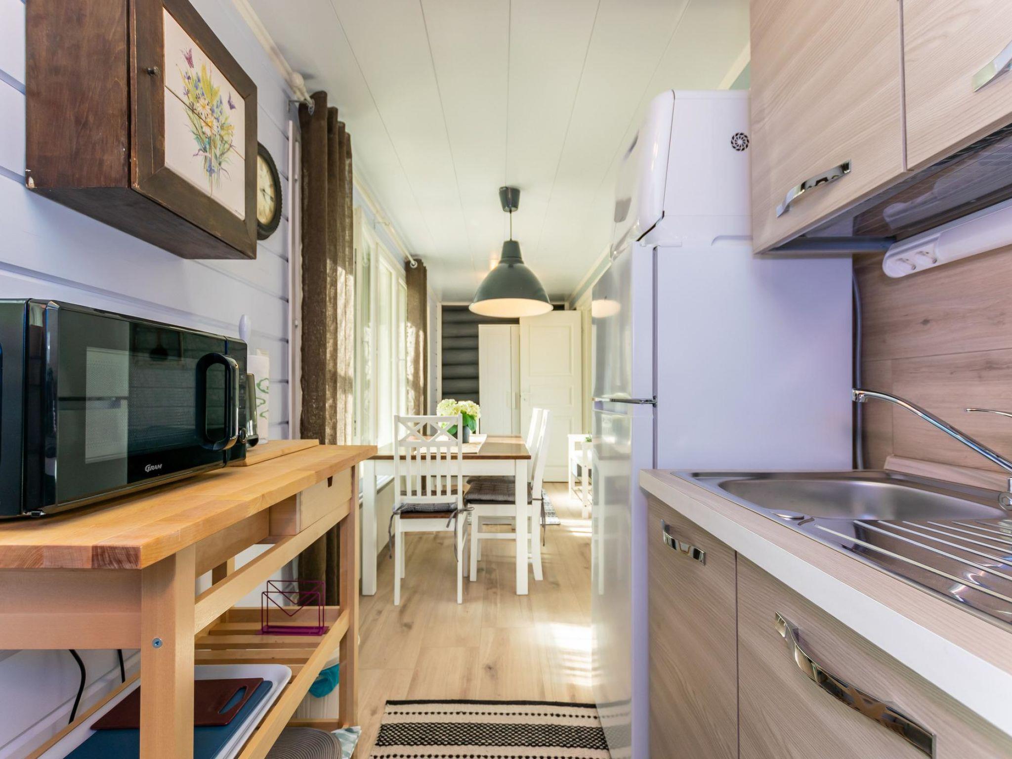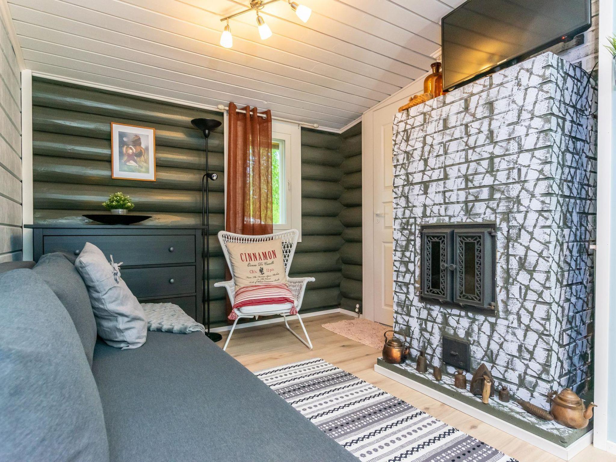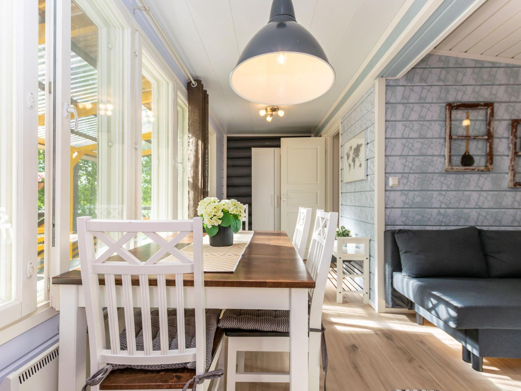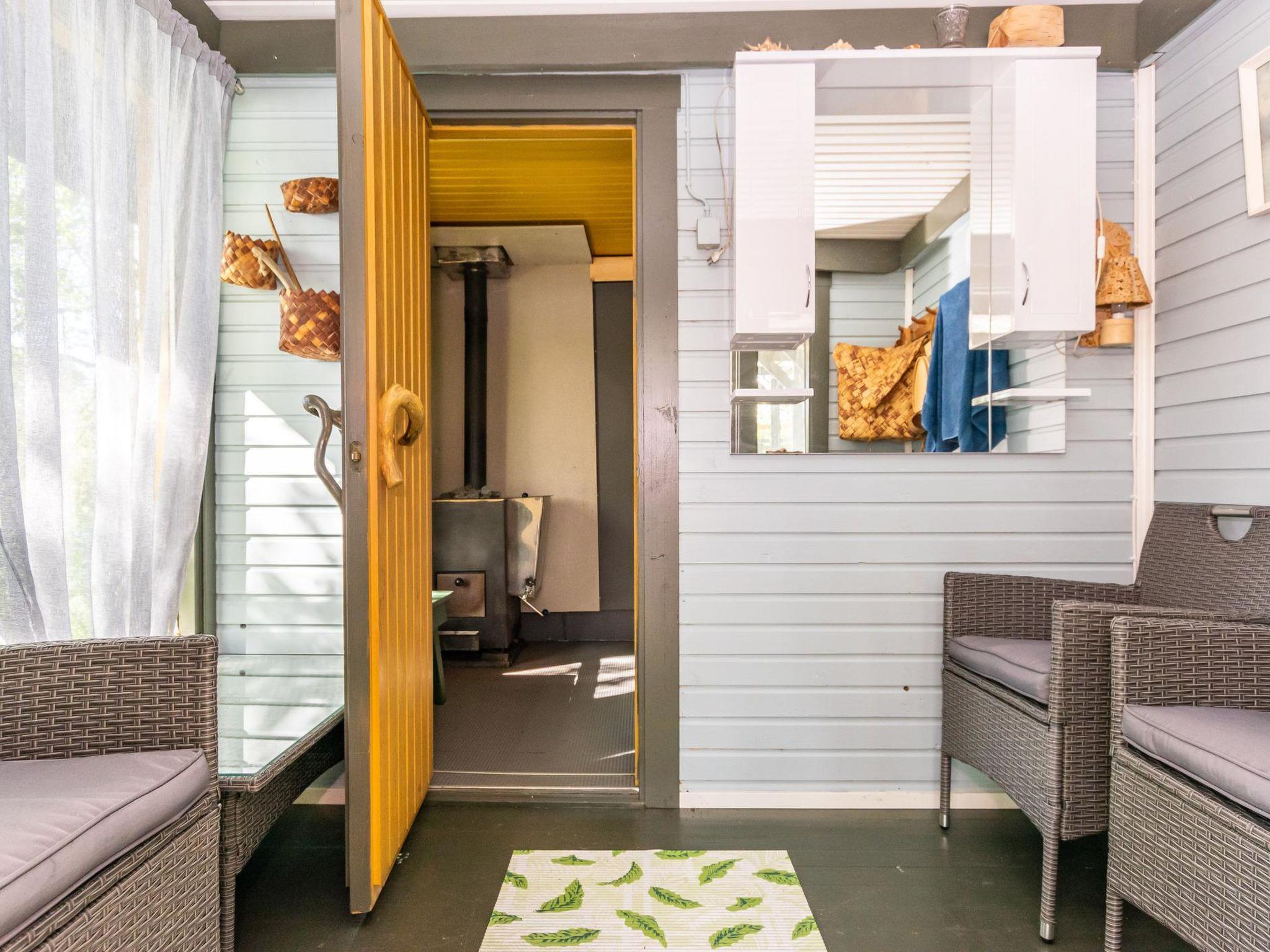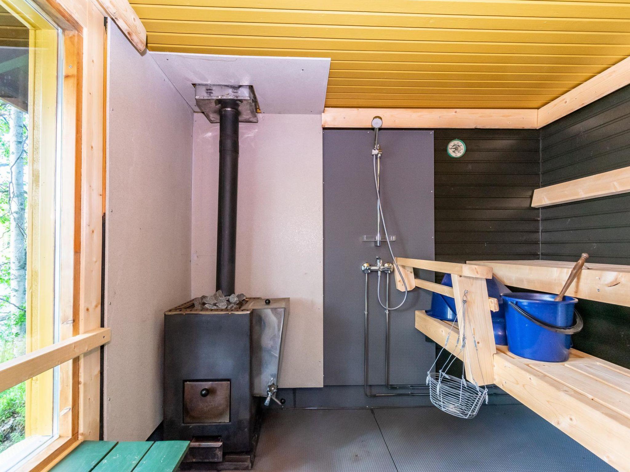 There is a wood-heated sauna on the beach. In connection with the sauna, there is a small dressing room and a shower. It is a short distance from the sauna to the lake along the terrace. The beach is a quickly deepening mud beach. You can easily swim from your own pier. A rowing boat is available at the cottage.