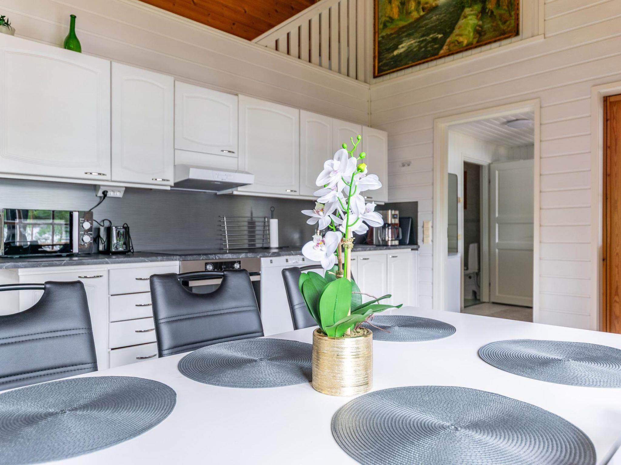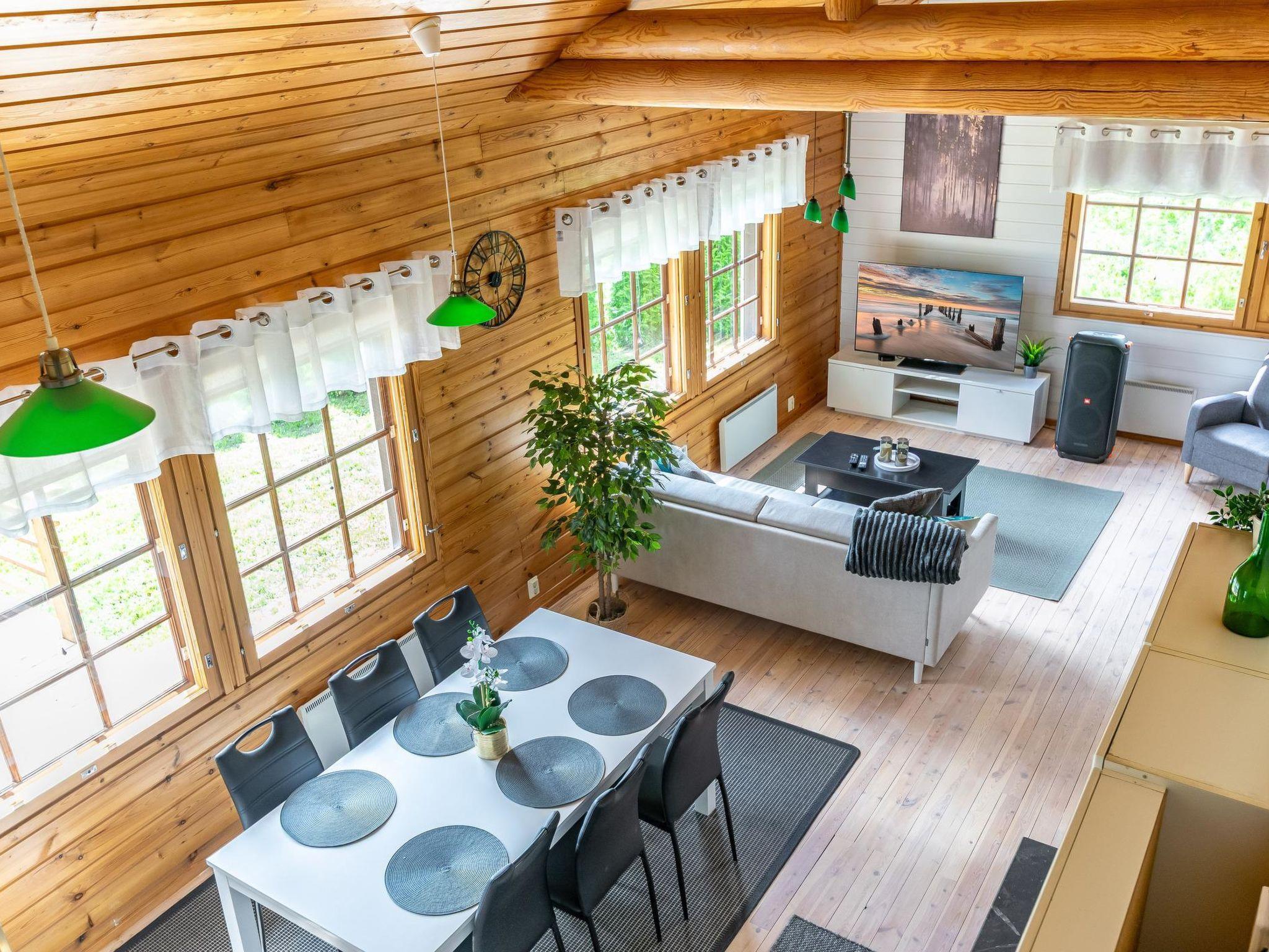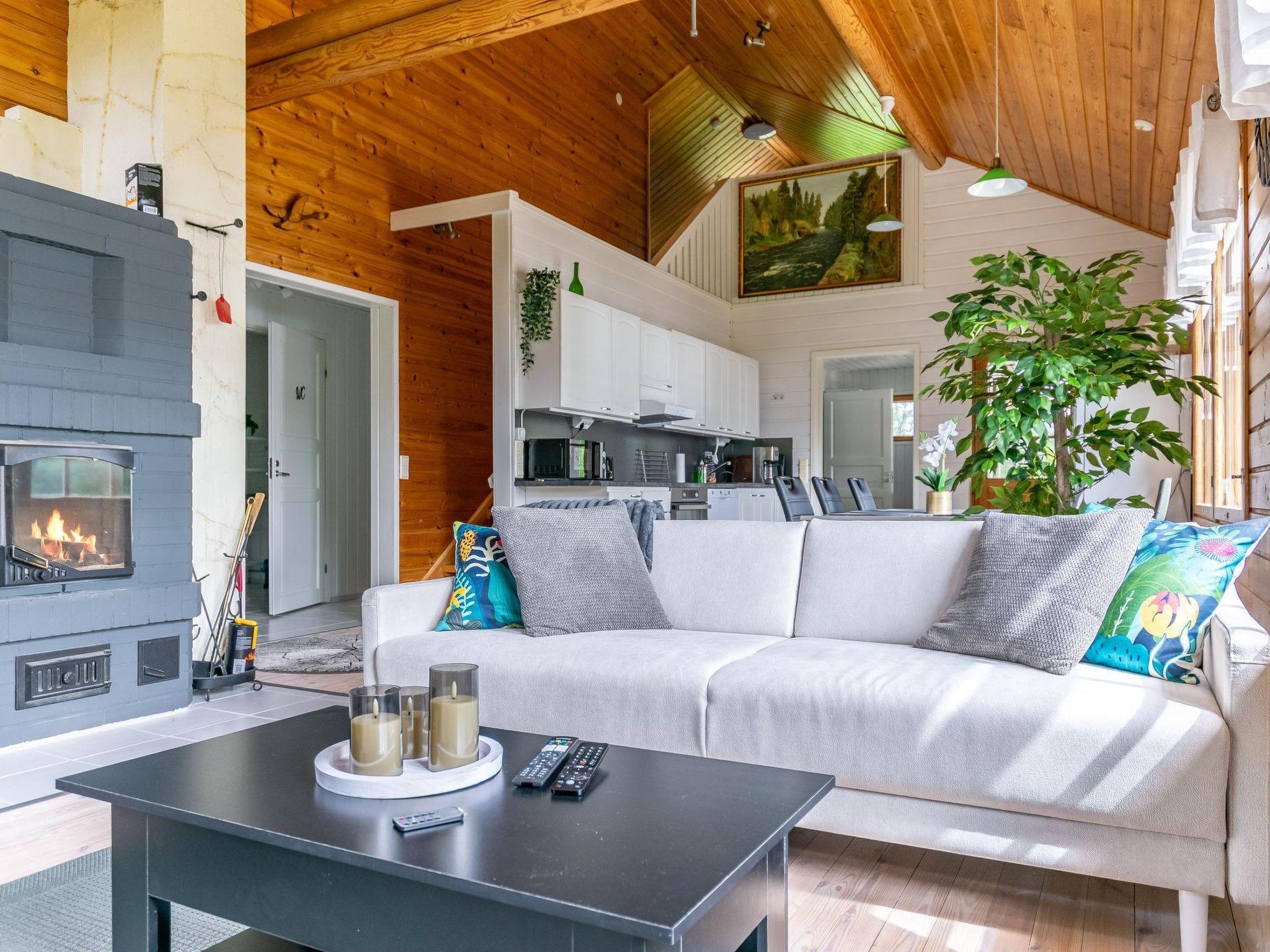 84 km southwest of Kuopio, Hankavesi 25 m, own pier, rowing boat and 2 sup-boards. The shore is sandy for a few meters and gets deeper quite quickly. Wooden two storey cottage (1999), combined living room and kitchen. The kitchen is well-equipped and has an induction hob, convection oven, dishwasher and spacious fridge and freezer. Dining area with space for eight diners. The living room has a fireplace, sofa TV and high-power Bluetooth speaker.