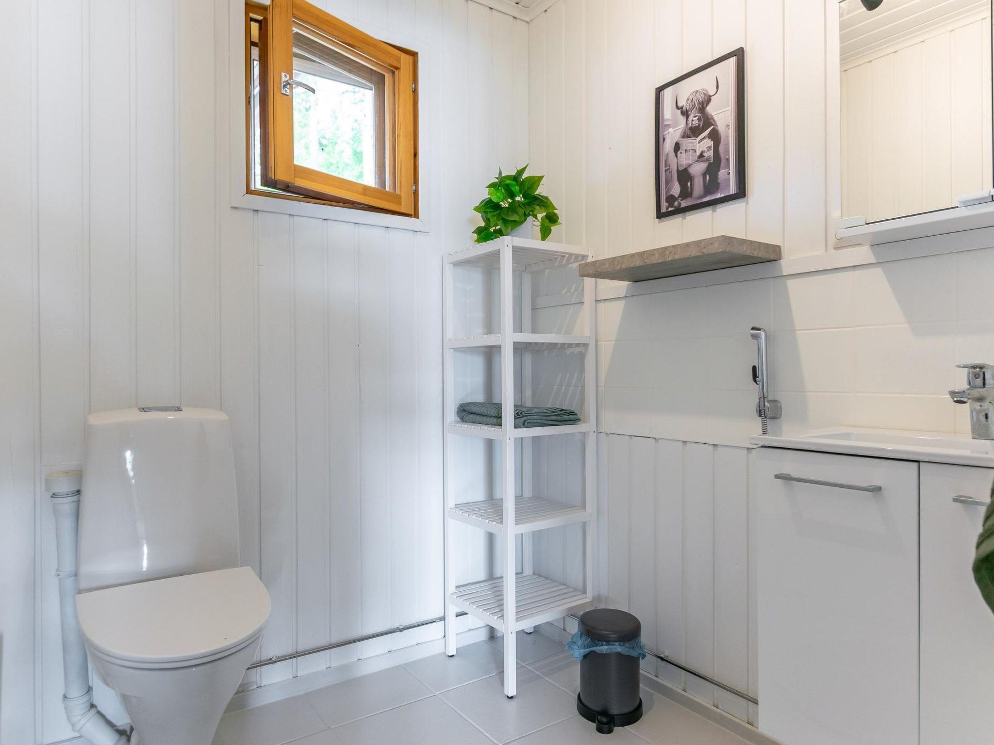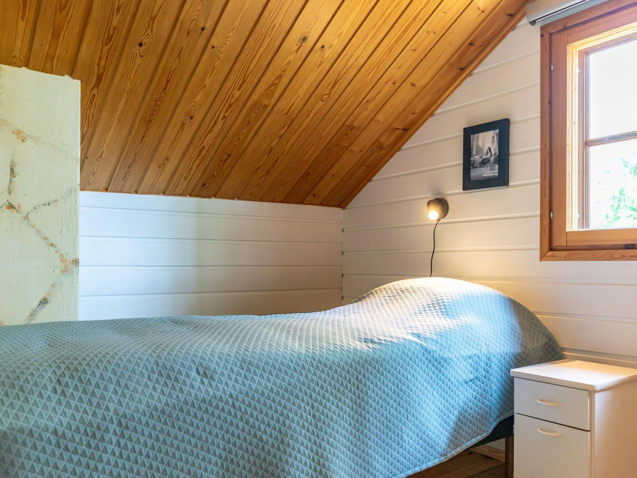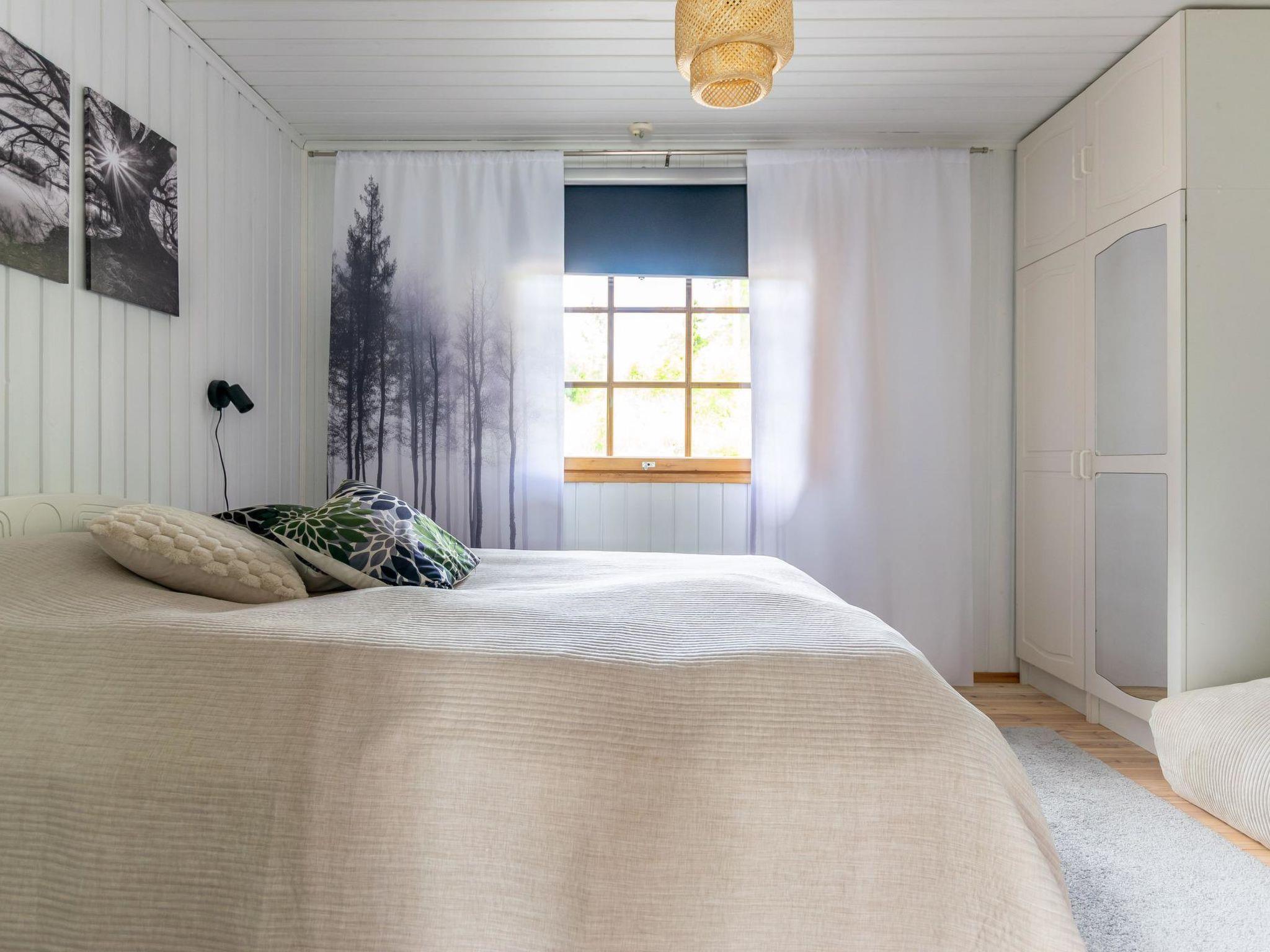Downstairs there are two bedrooms. One bedroom has a double bed and the other two single beds. Downstairs there is also a sauna (wood-burning stove), a washroom with a shower and toilet, a dressing room with access to the terrace and a separate toilet. Upstairs is the loft with sleeping area for three persons.