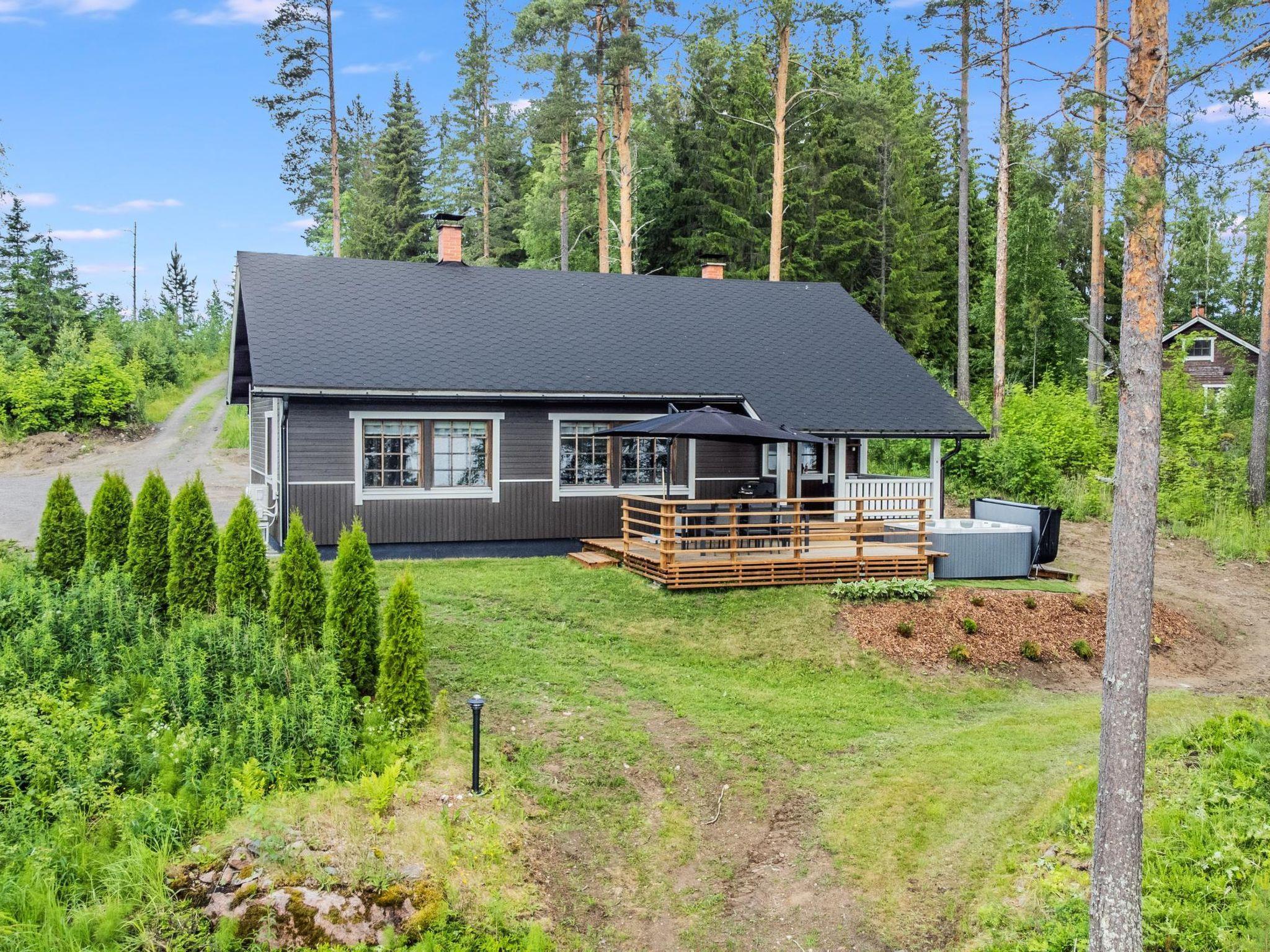 Cozy decorated, well-equipped cottage on the shore of Lake Hankavesi. The cottage has beds for seven people and pets are also welcome at Hanhenpesä. Spacious living room and kitchen with a beautiful view of the lake from the windows. The terrace has a whirlpool, garden furniture and a gas grill. There is a separate barbecue shelter on the shore. South Konnevesi National Park is only 9 km away.
