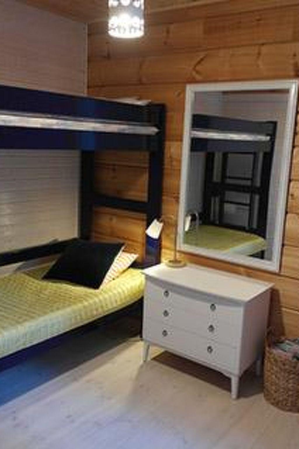 Log chalet 2014, downstairs modern living room-kitchen, bedroom with bunk bed, shower room / utility room, modern sauna (electric stove), small terrace.