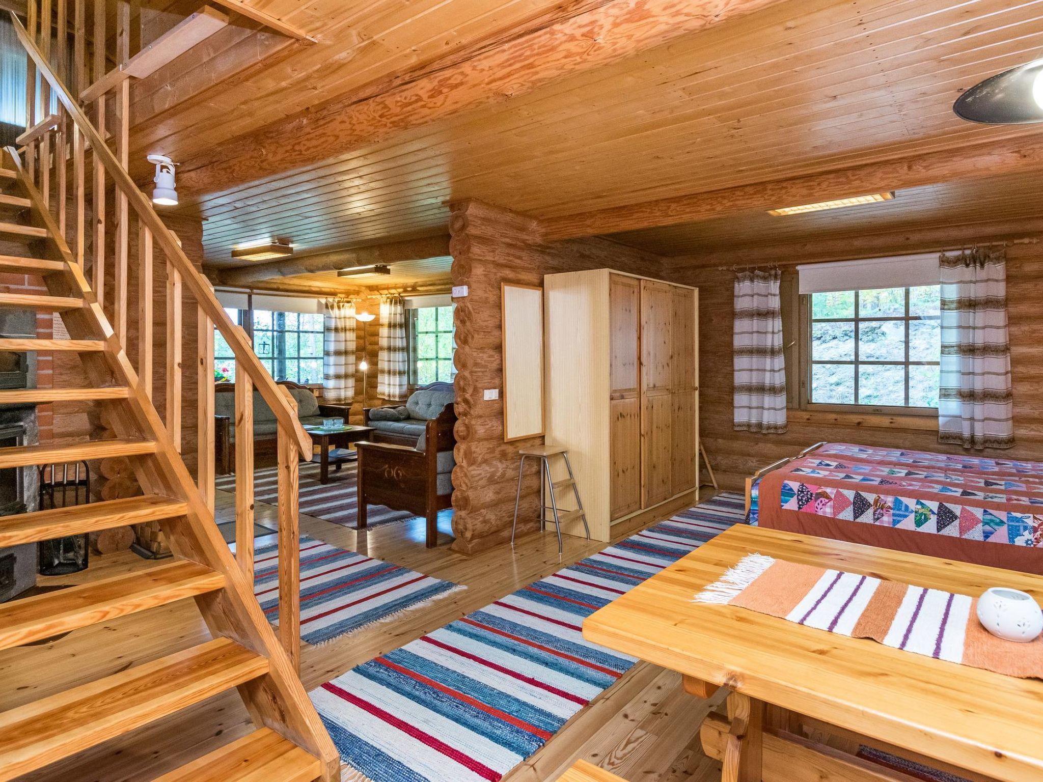 45 km south-east of Mikkeli. Lake Saimaa 15 m, shallow water, firm sanded clay/gravel bottom, jetty. Own boat. Log cabin 1989, renovated livingroom/kitchen with 2 extra beds ,upstairs bed room 2 beds, lobby room 1 bed + 1 convertible sofa, expanded sauna department (12 sqm) wash room 2 showers, toilet, wood-heated sauna,dressing room, utility room, tumble dryer open veranda. New 32 m2 patio was built to the front yard of the cottage 2014. Carage/wood shed.
