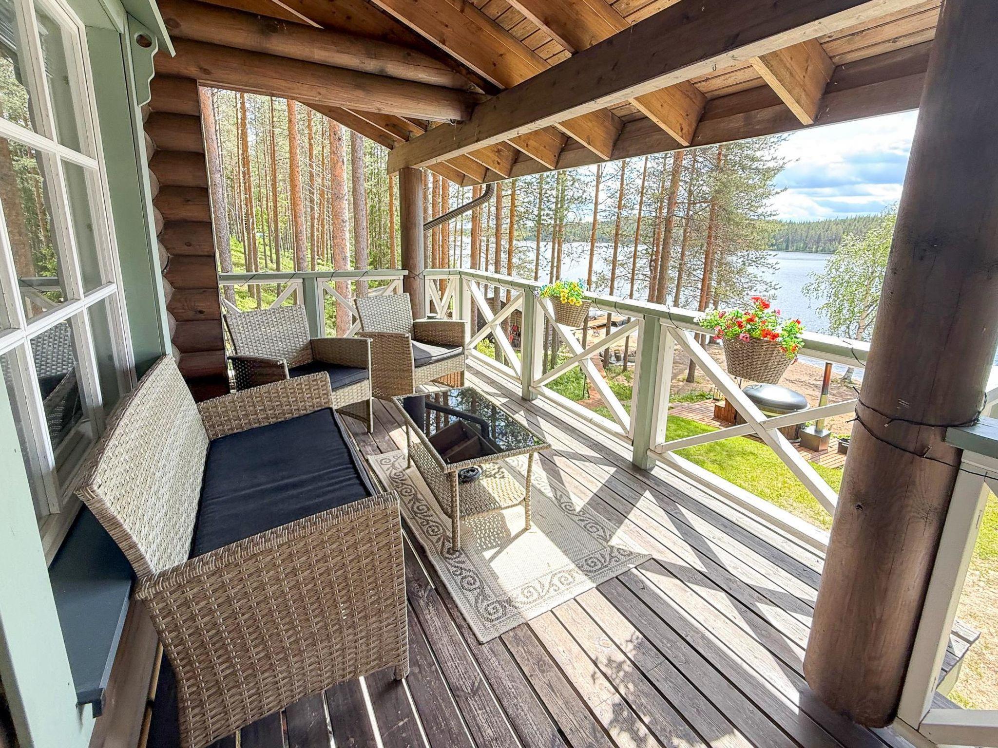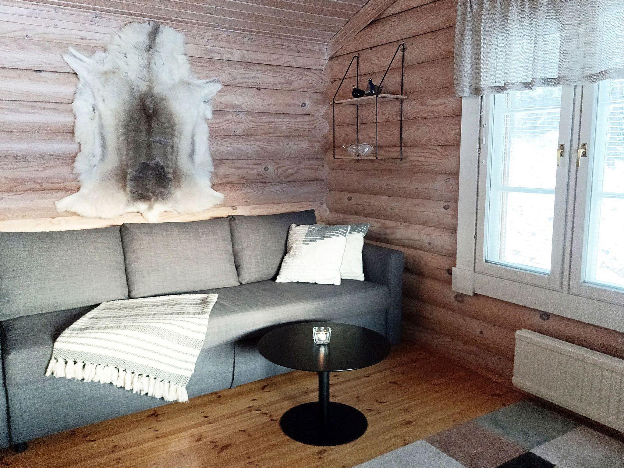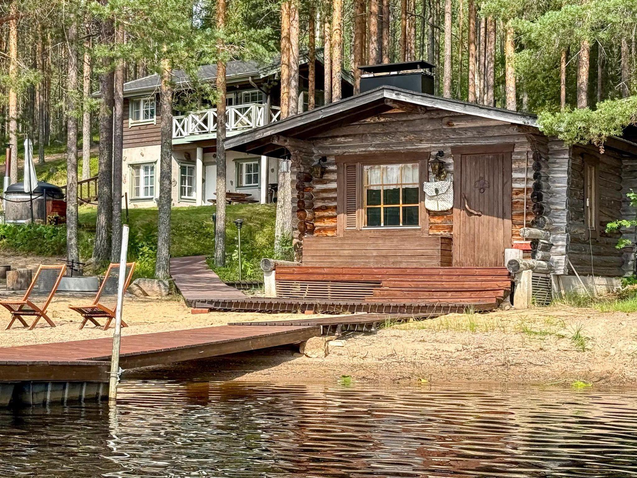 Log cabin (stone-built ground floor) on two floors, built in 2005. On the upper floor, living room with sofa bed, kitchen, bedroom (folding door) with 1 bed (width 140 cm), covered porch. On the ground floor, sauna (electric sauna stove), washroom/WC, living room with fireplace, bedroom (folding door) with double bed (width 140 cm). 2 televisions. In addition, PlayStation 2 console with some games, gas grill, and mosquito trap (so-called mosquito magnet). Water to the cabin comes from the spring.