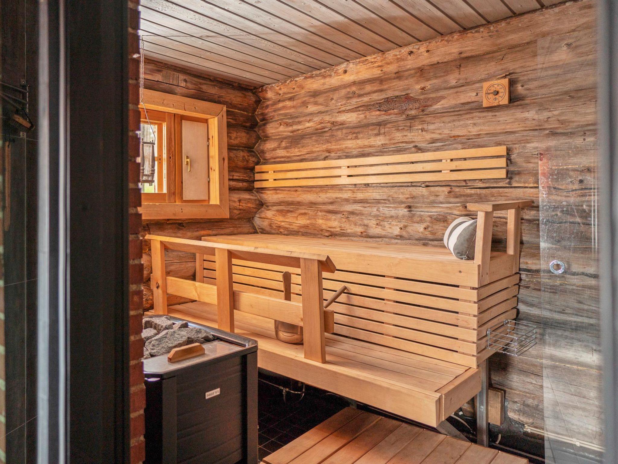 Lakeside sauna with steam room and fireplace room. 1 bed in the fireplace room. Lakeside sauna is renovated in 2020. The sauna has a shower in the steam room, electric light and electric heating. In the fireplace room, there is a refrigerator.