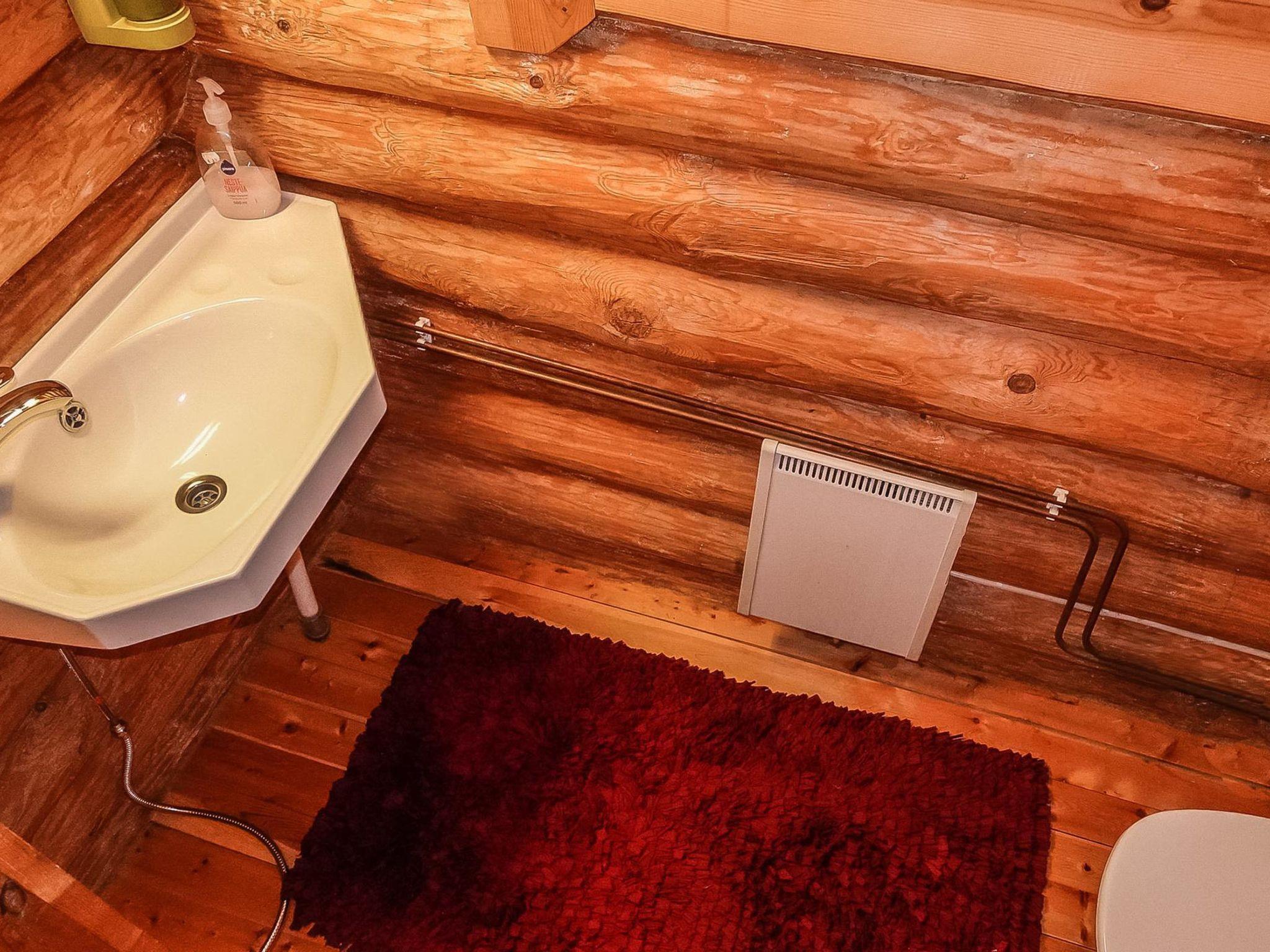 Log cottage, built in 1992. Living room-kitchen sofa bed, bedroom with double bed, second bedroom with 2 single beds, loft with 2 mattresses (loft is low and stairs steep), sauna with wood stove, shower in the steam room, separate toilet and large covered terrace on the river side.