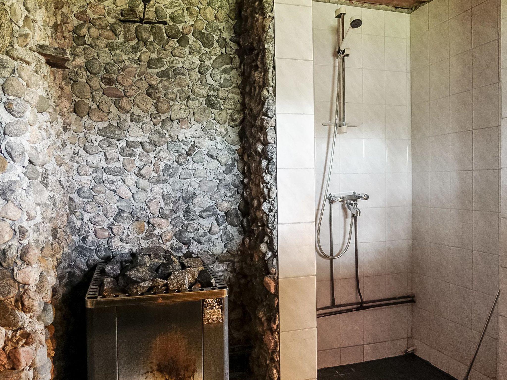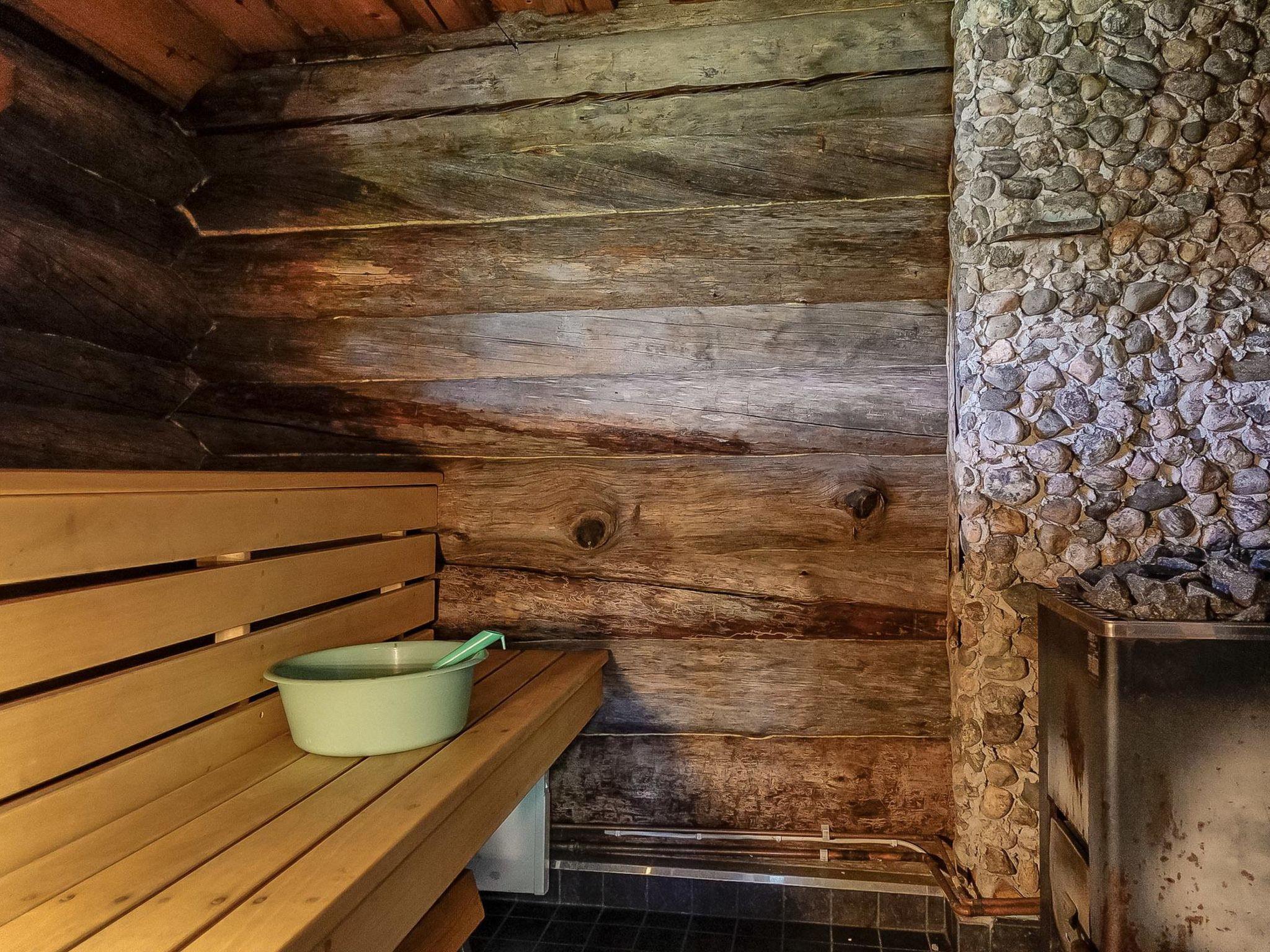 Log cottage, built in 2006. Living room-kitchen with wooden sofa bed, bedroom with double bed, second bedroom with 2 single beds, loft with 2 mattresses (loft is low and stairs steep), sauna with wood stove, shower in the steam room, separate toilet and large covered terrace on the river side.