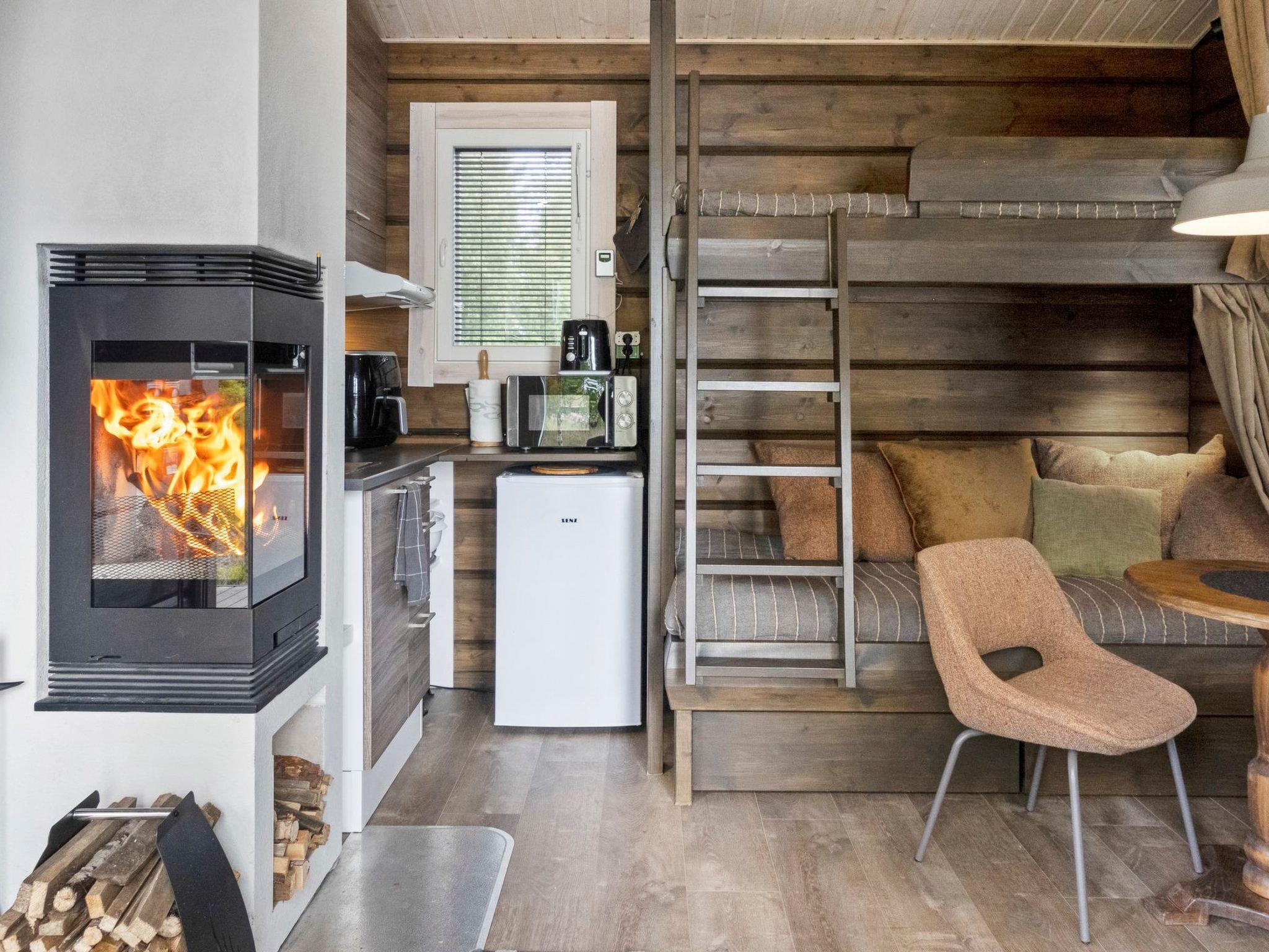 Log cabin, built in 2021. Living room/kitchen with bunk bed (lower bed 120 cm wide) and sofa bed. Sauna with wood-burning sauna stove, washroom/WC in connection with the sauna, access to the sauna via the porch.