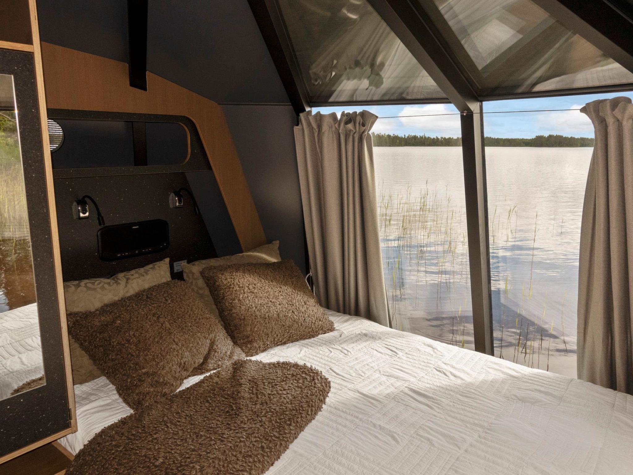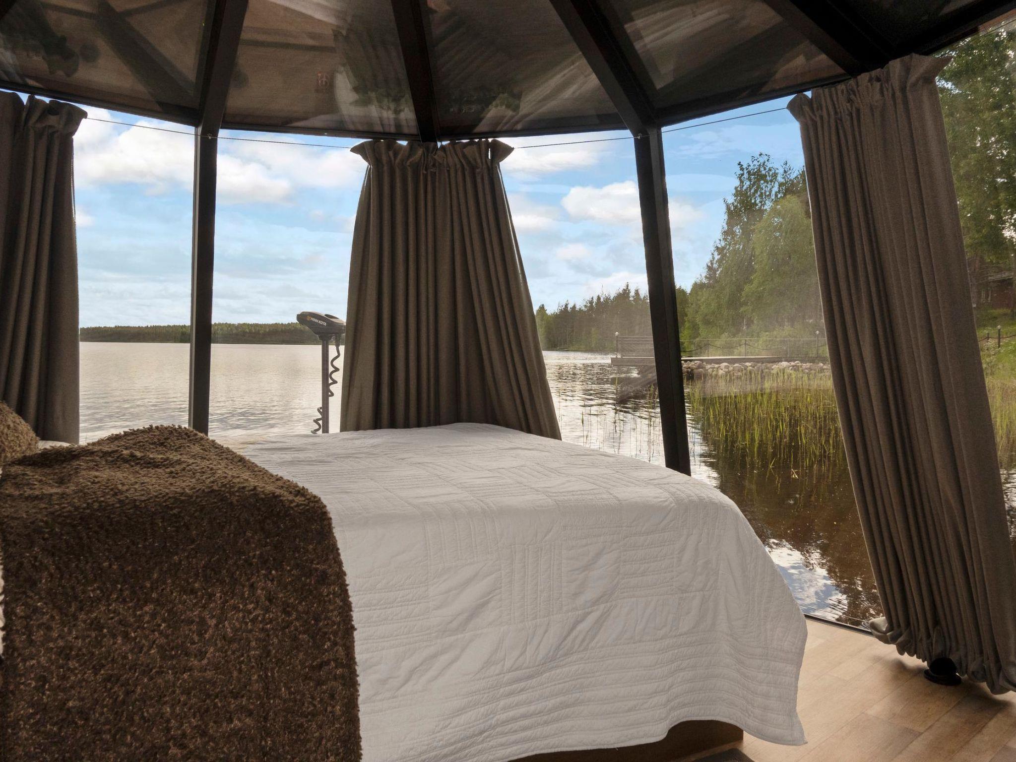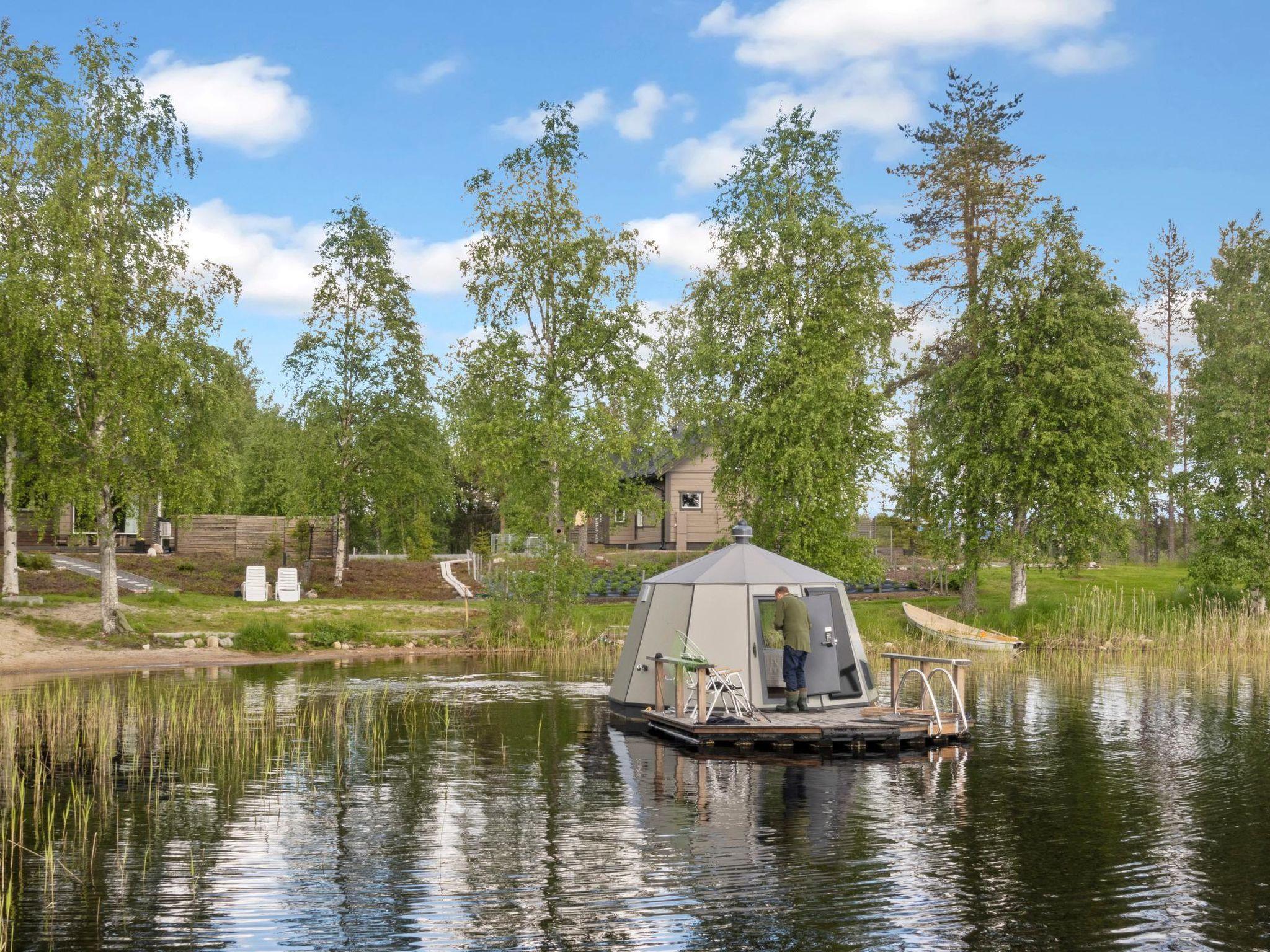 Nice sauna cabin and floating igloo-style cabin in the middle of a green lakeside landscape. Feel the nice experience in Lystikämä and accommodate in the cabin and igloo alternately. The igloo is perfect for observing the northern lights and the starry sky in winter, enjoying the nightless night in summer, fishing, or for example a romantic stay.