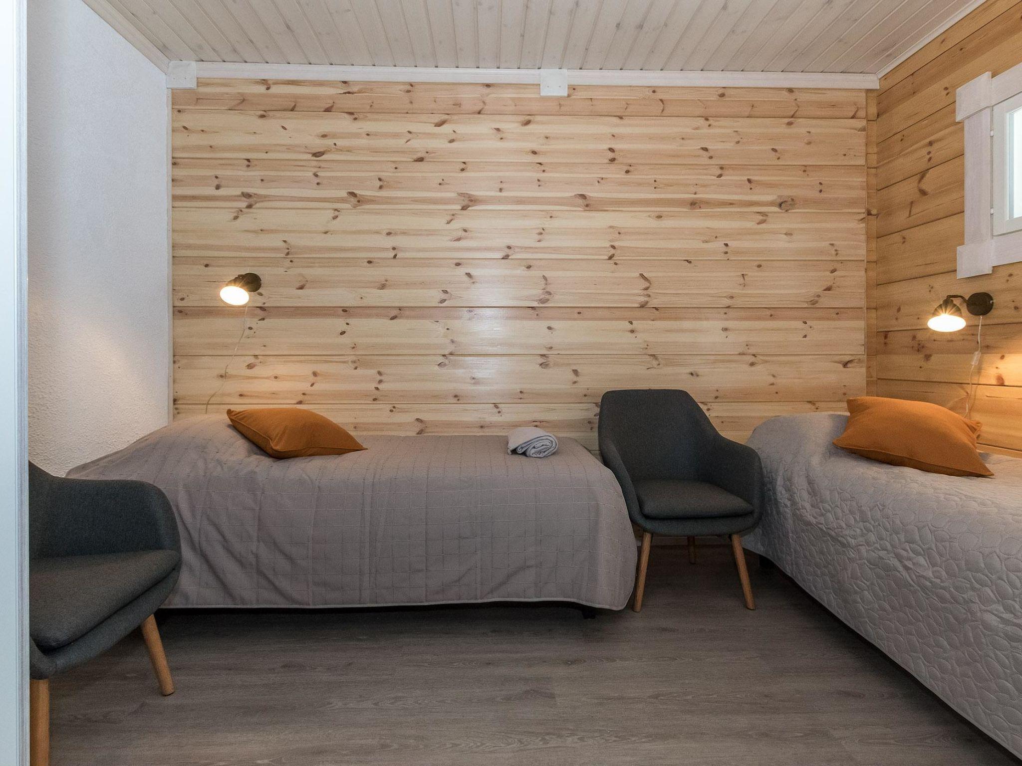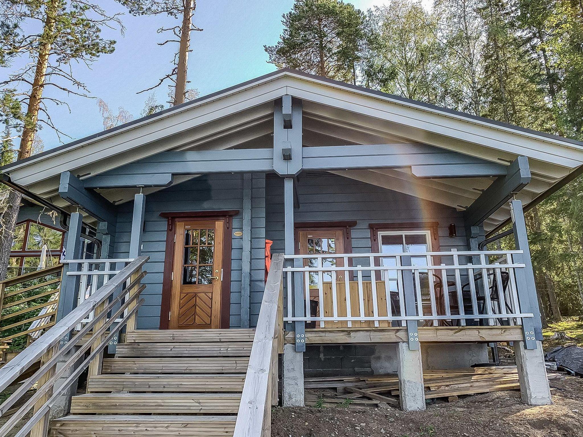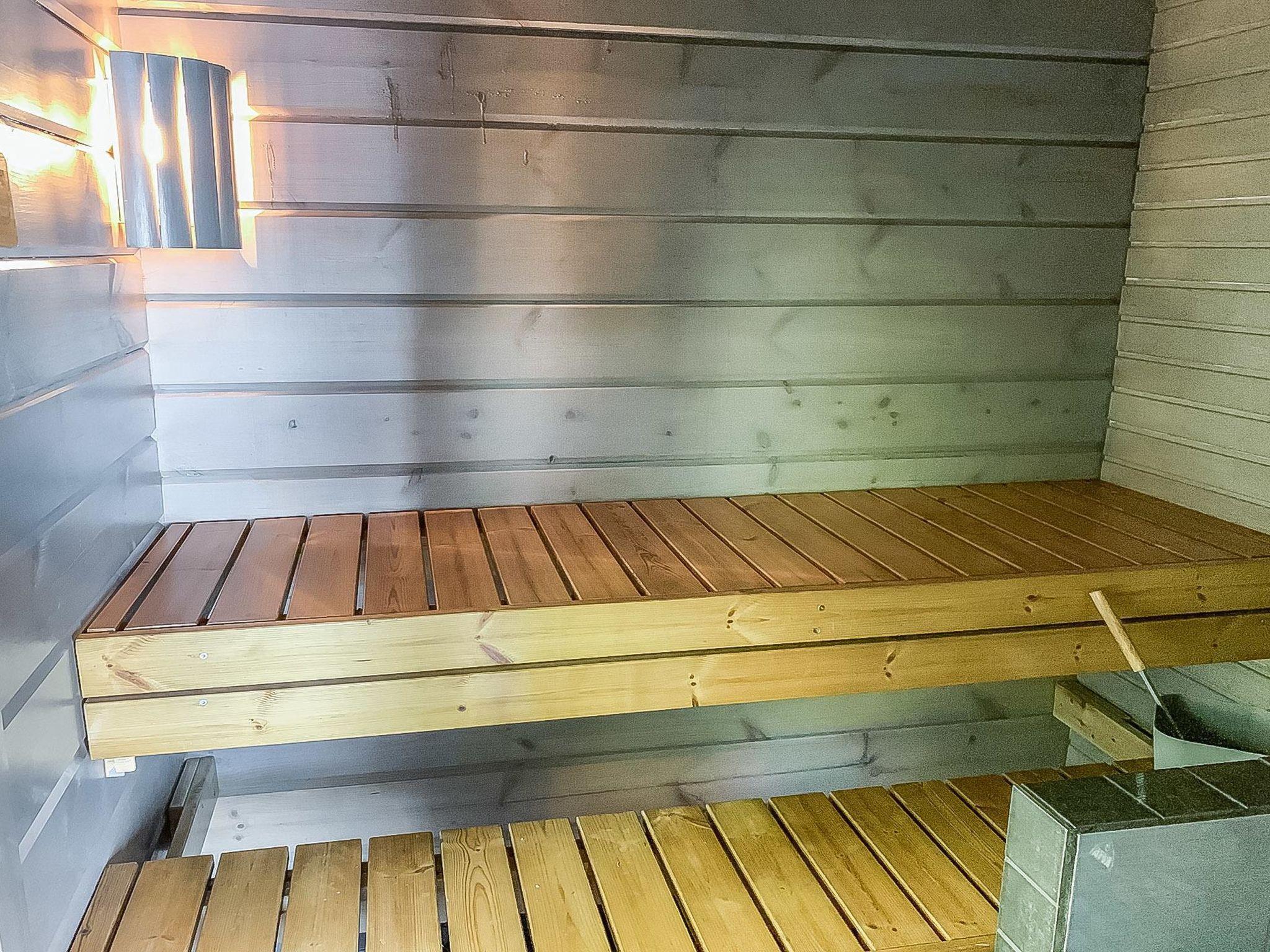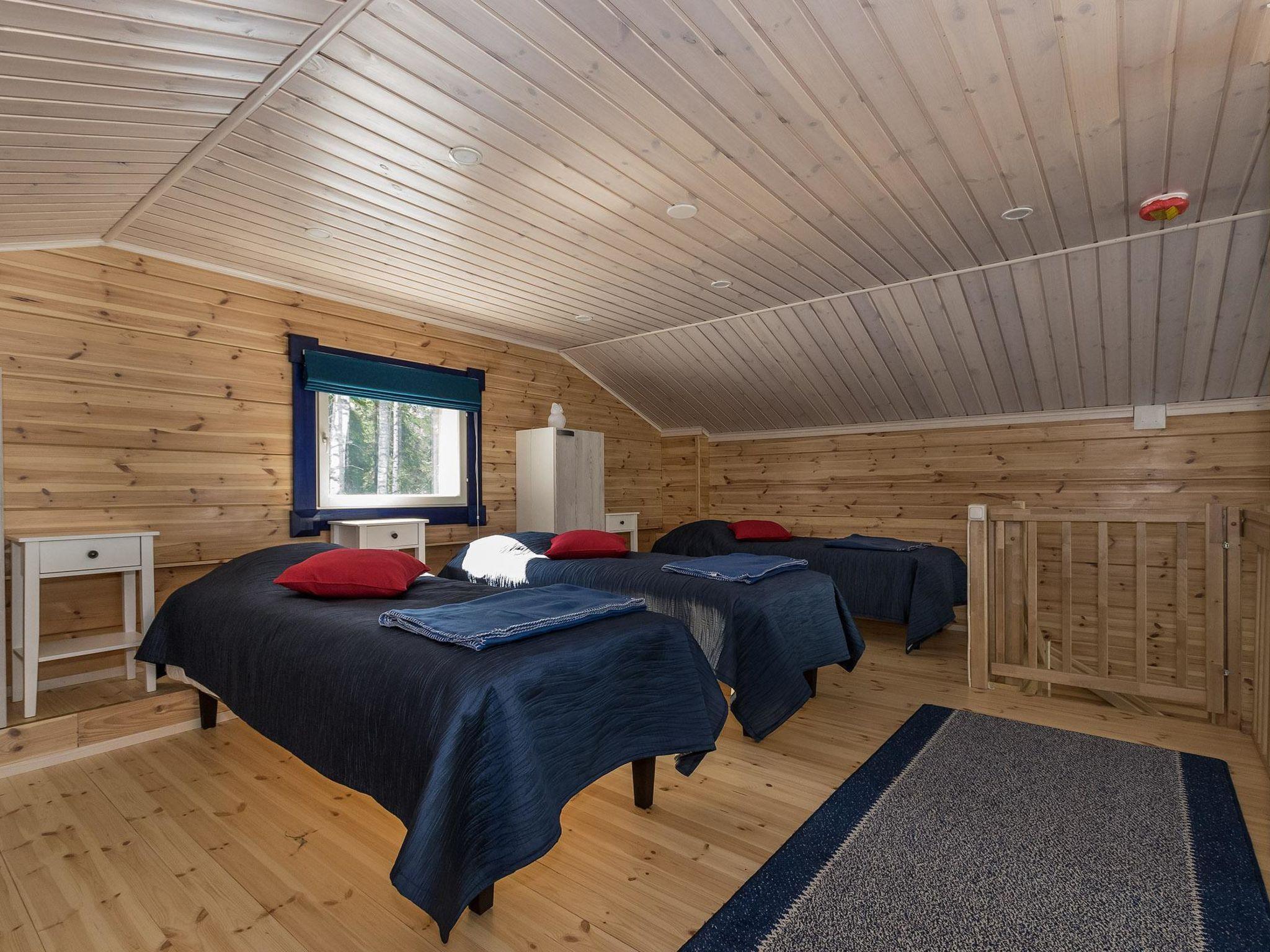 Laminated log cabin 2019, living room, living room/kitchen, bedroom 1: double bed, bedroom 2: two beds, WC, sauna, washroom (electric sauna stove), two beds in the loft, child safety gate at the top of the stairs.