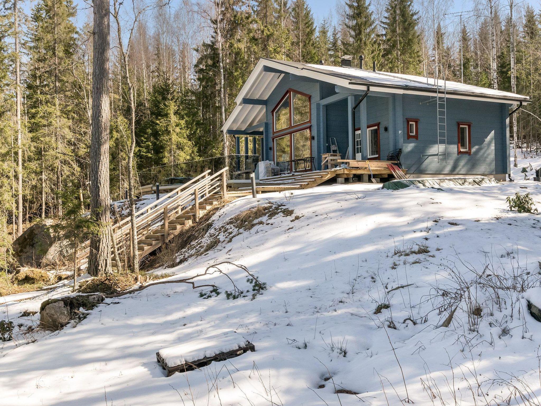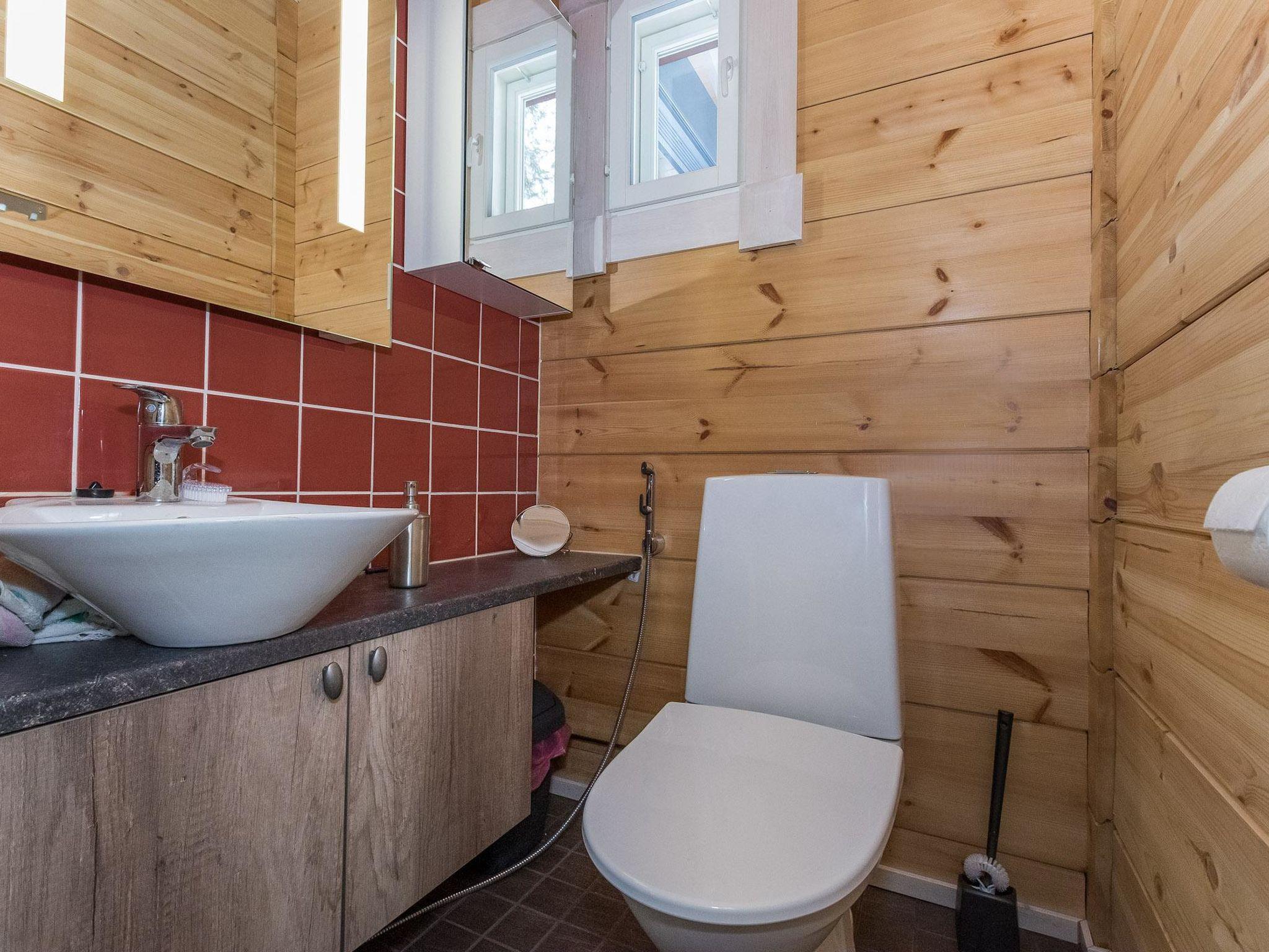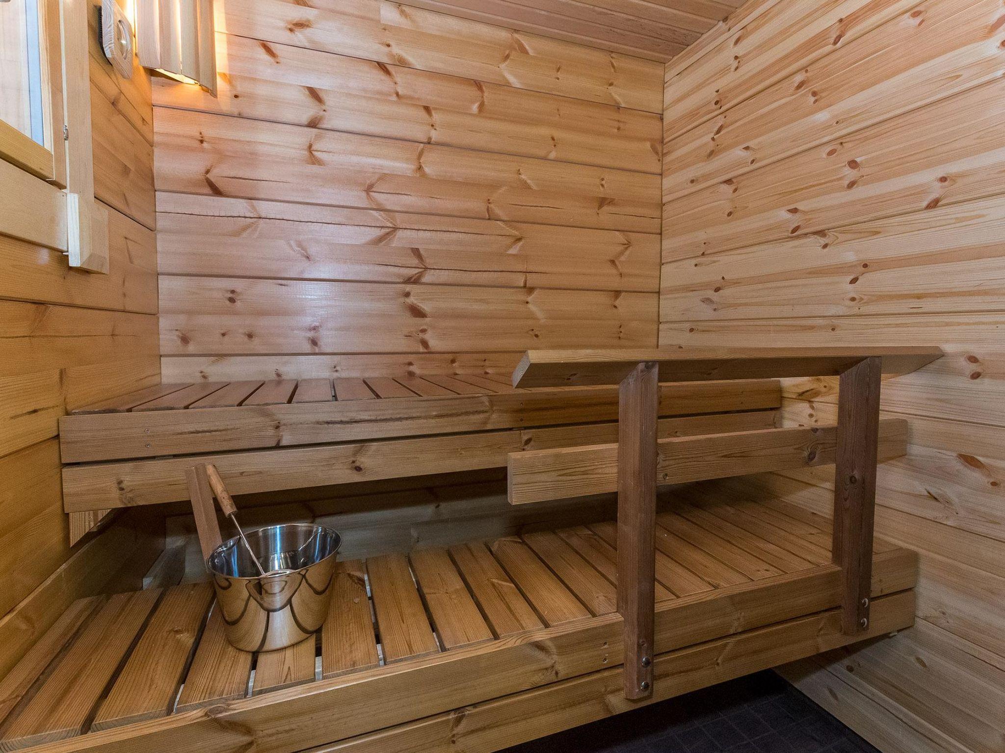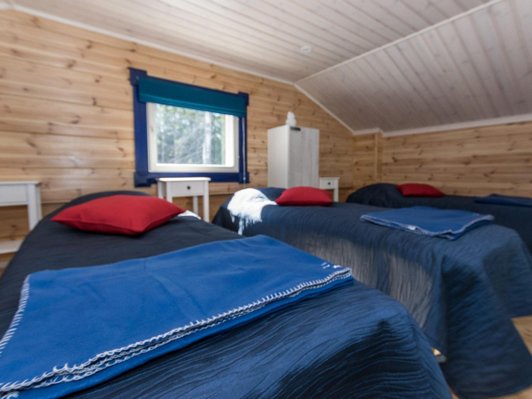 Laminated log cabin 2019, living room, living room/kitchen, bedroom 1: double bed, bedroom 2: two beds, WC, sauna, washroom (electric sauna stove), two beds in the loft, child safety gate at the top of the stairs.