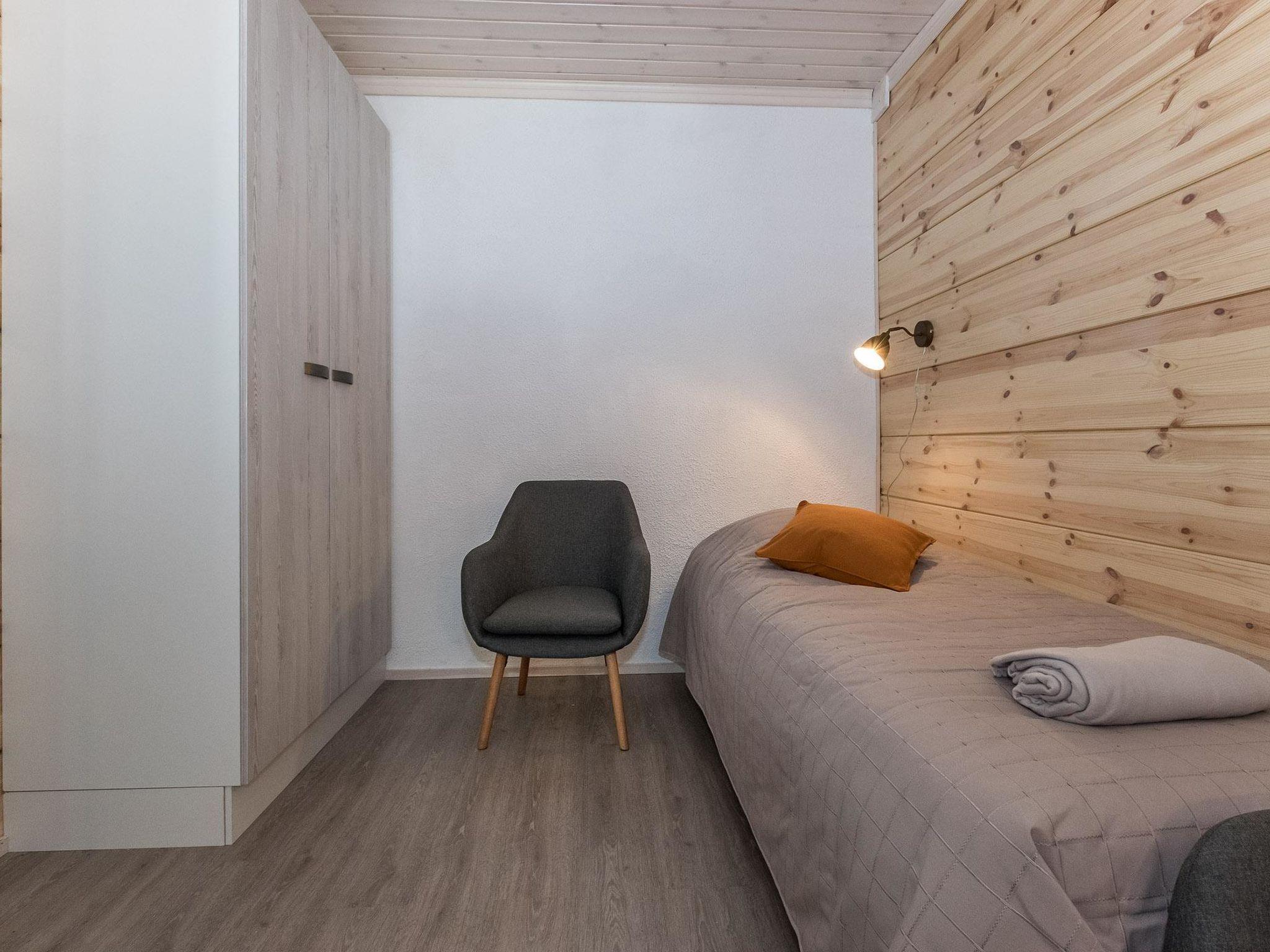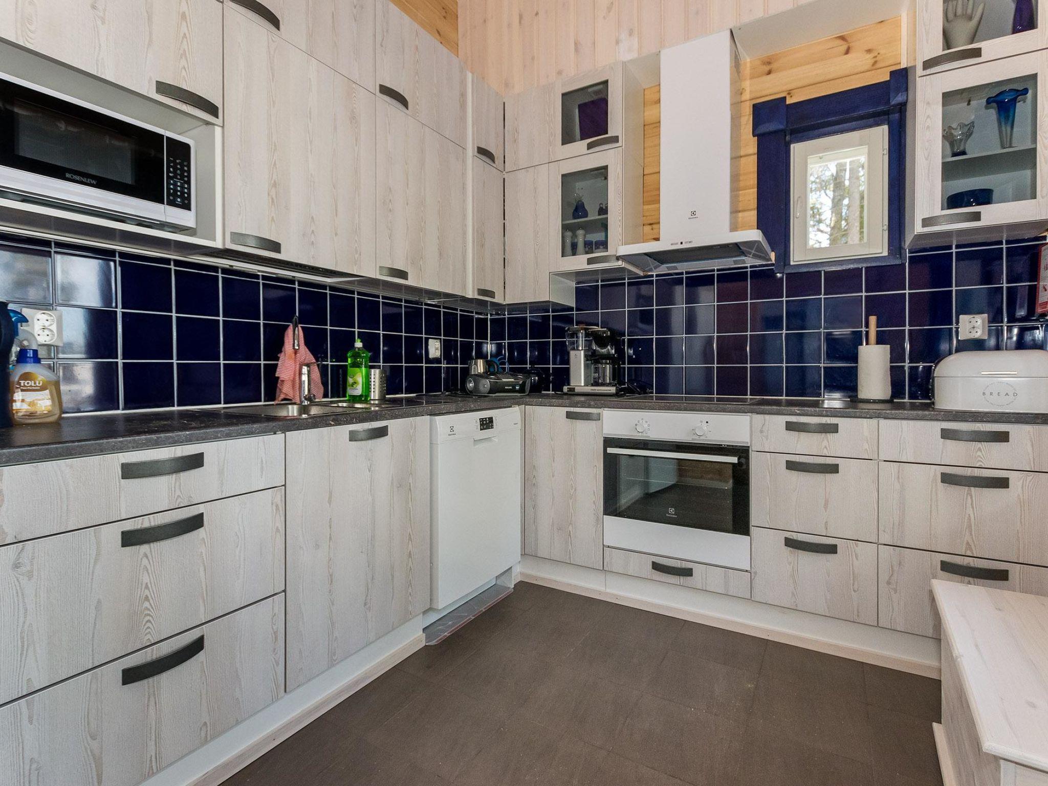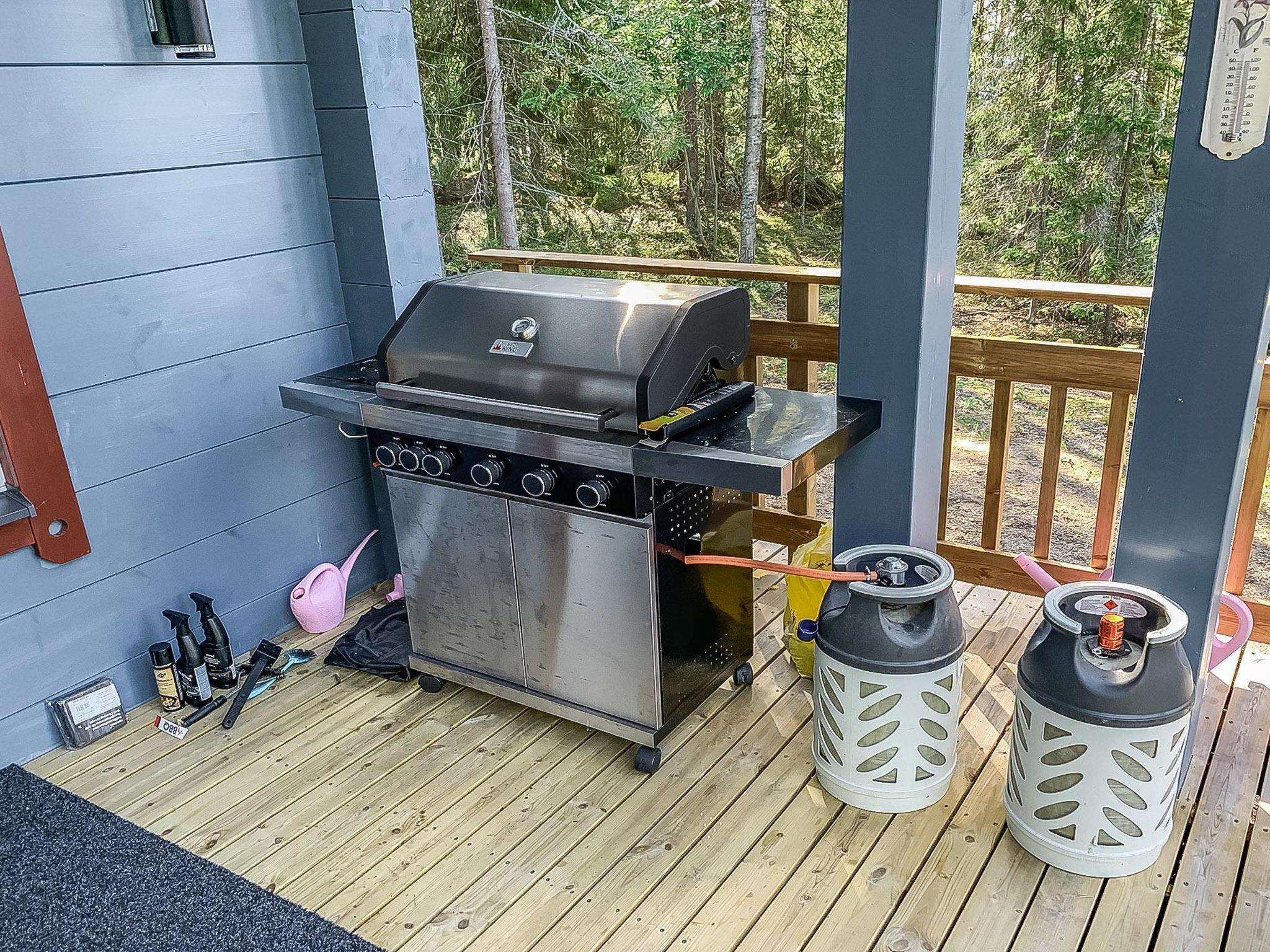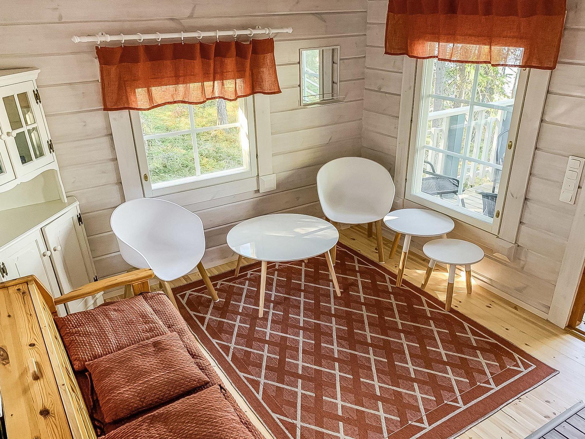 Laminated log cabin 2019, living room, living room/kitchen, bedroom 1: double bed, bedroom 2: two beds, WC, sauna, washroom (electric sauna stove), two beds in the loft, child safety gate at the top of the stairs.