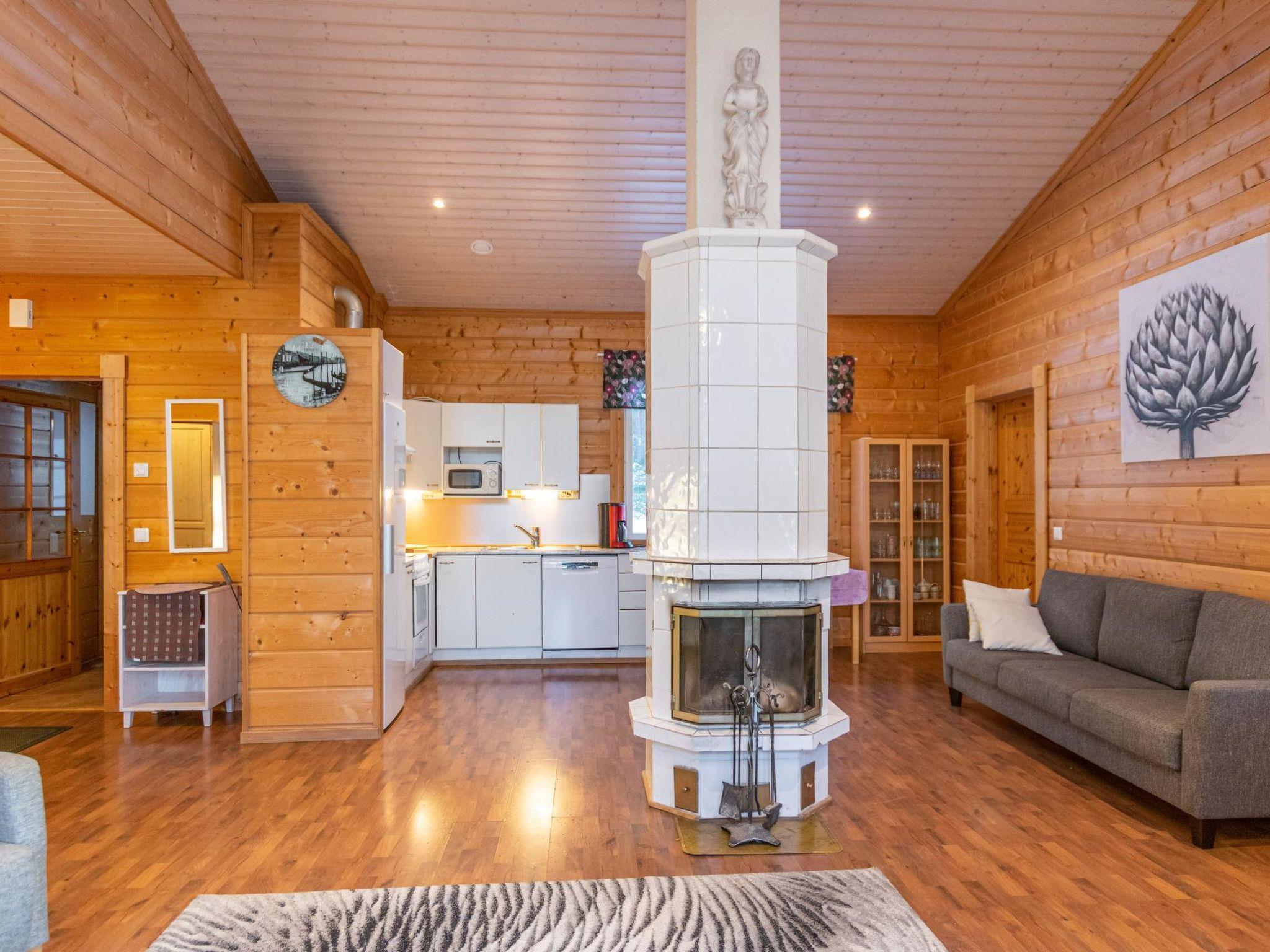 The log villa, built in 2006, features a spacious living room, dining area, and combined living room/kitchen. There are three bedrooms, each with two beds. Additionally, the living room includes a sofa bed (140 x 200 cm) that can accommodate two more guests.