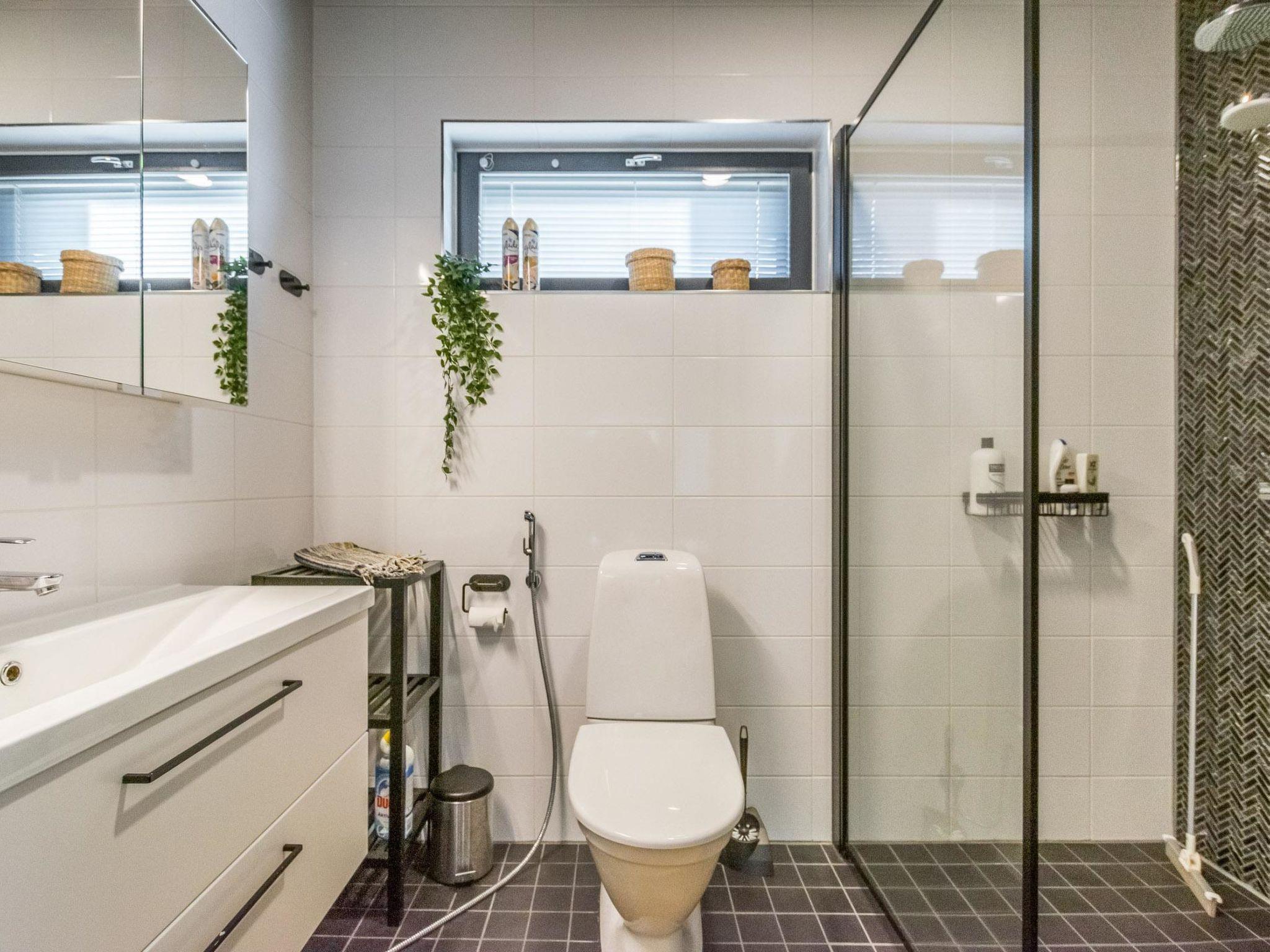 70 km to the north from Turku, Lake Pyhäjärvi 30 m, shallow sandy riverbank, a small pier, and a rowing boat. Wooden cabin (built in 2021), combined living room and kitchen, two bedrooms; one with a double bed, and the other with a bunk bed where the lower bed is 160 x 200 cm and the upper bed is 140 x 200 cm. The living room has a sofa bed that can be extended to a size of 140 x 190 cm. The cabin also features a utility room with a washing machine and WC/shower room with two showers. The living room has an air-source heat pump for cooling/heating.