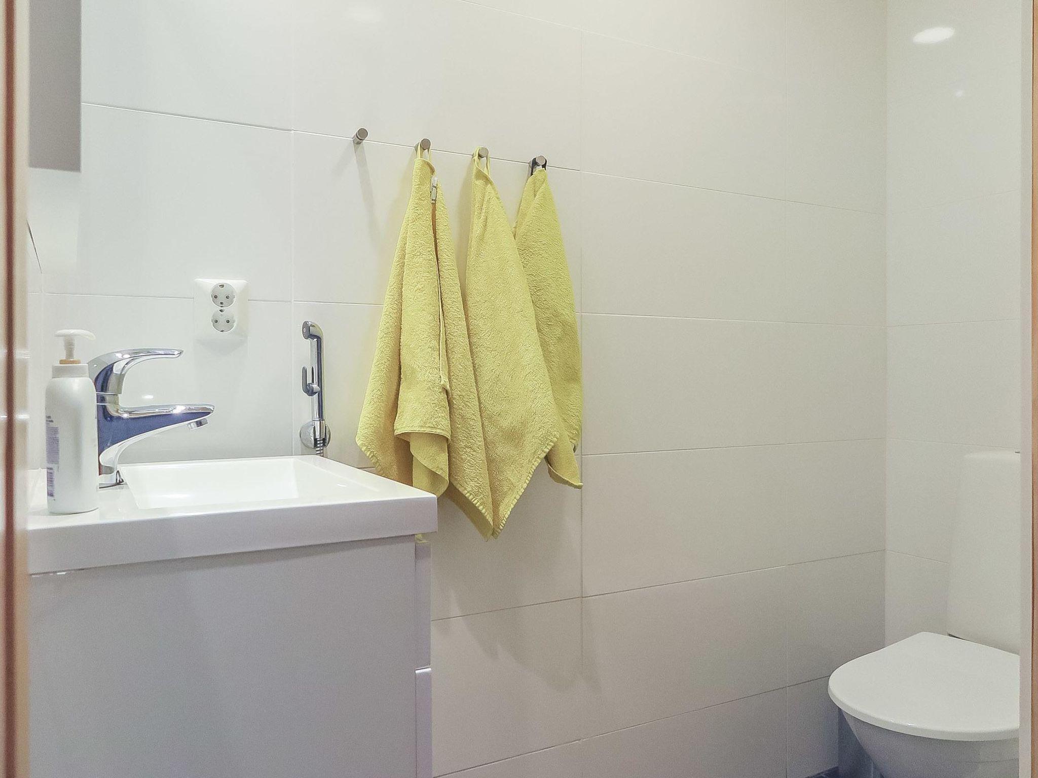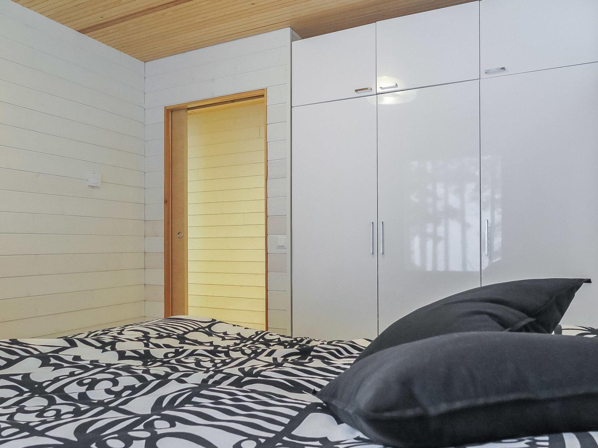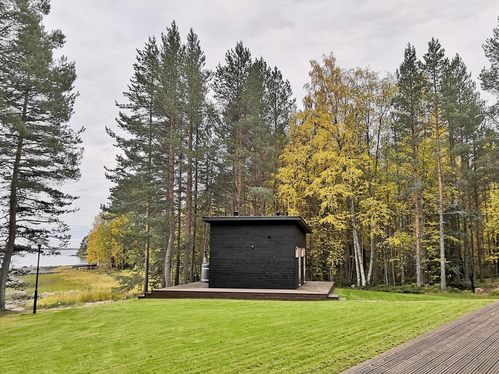 Lakeside building (22 m²) with sauna, washroom (shower), dressing room, guest bedroom with foldable bed for two and terrace. There is no toilet in the sauna building.