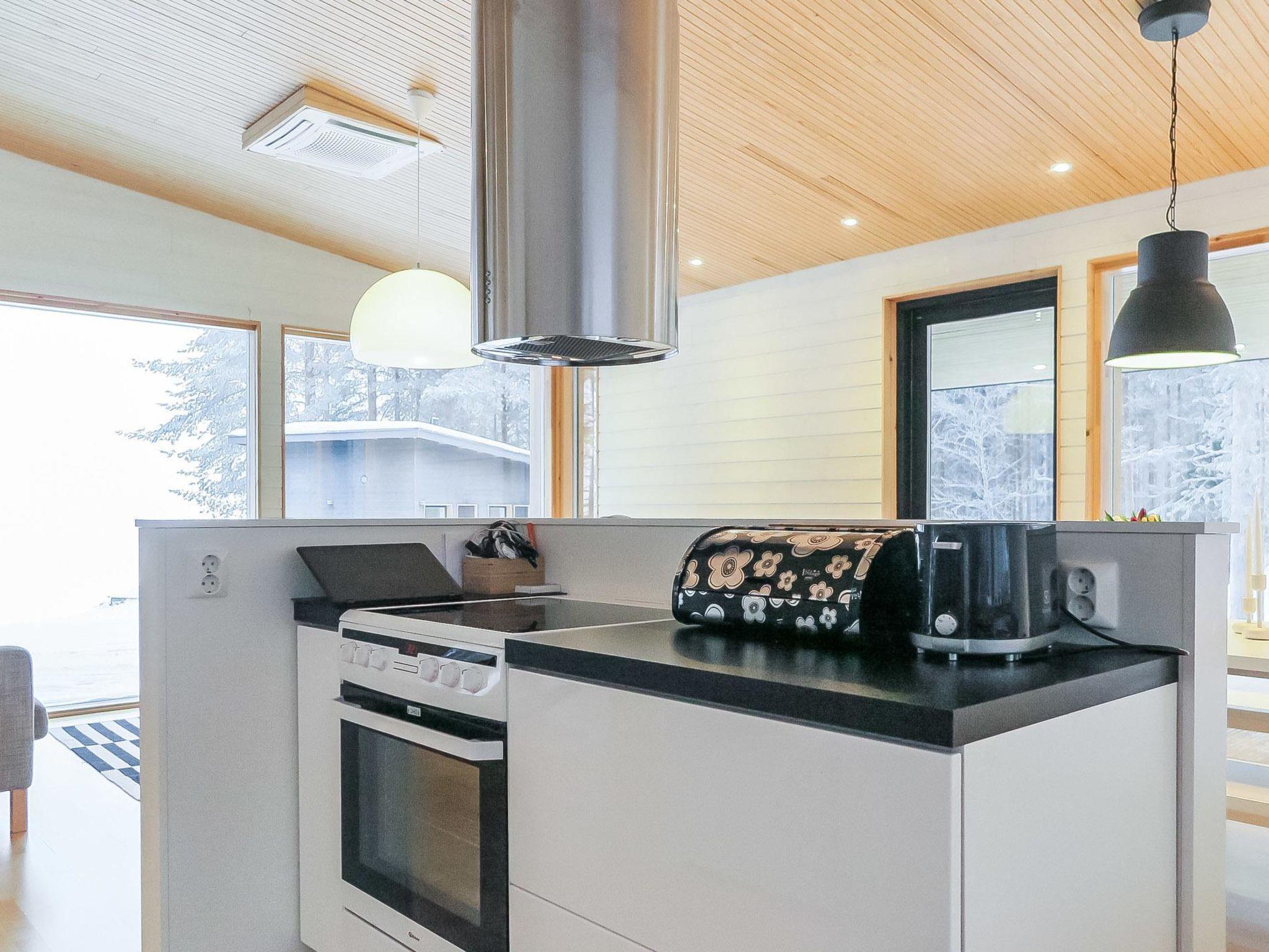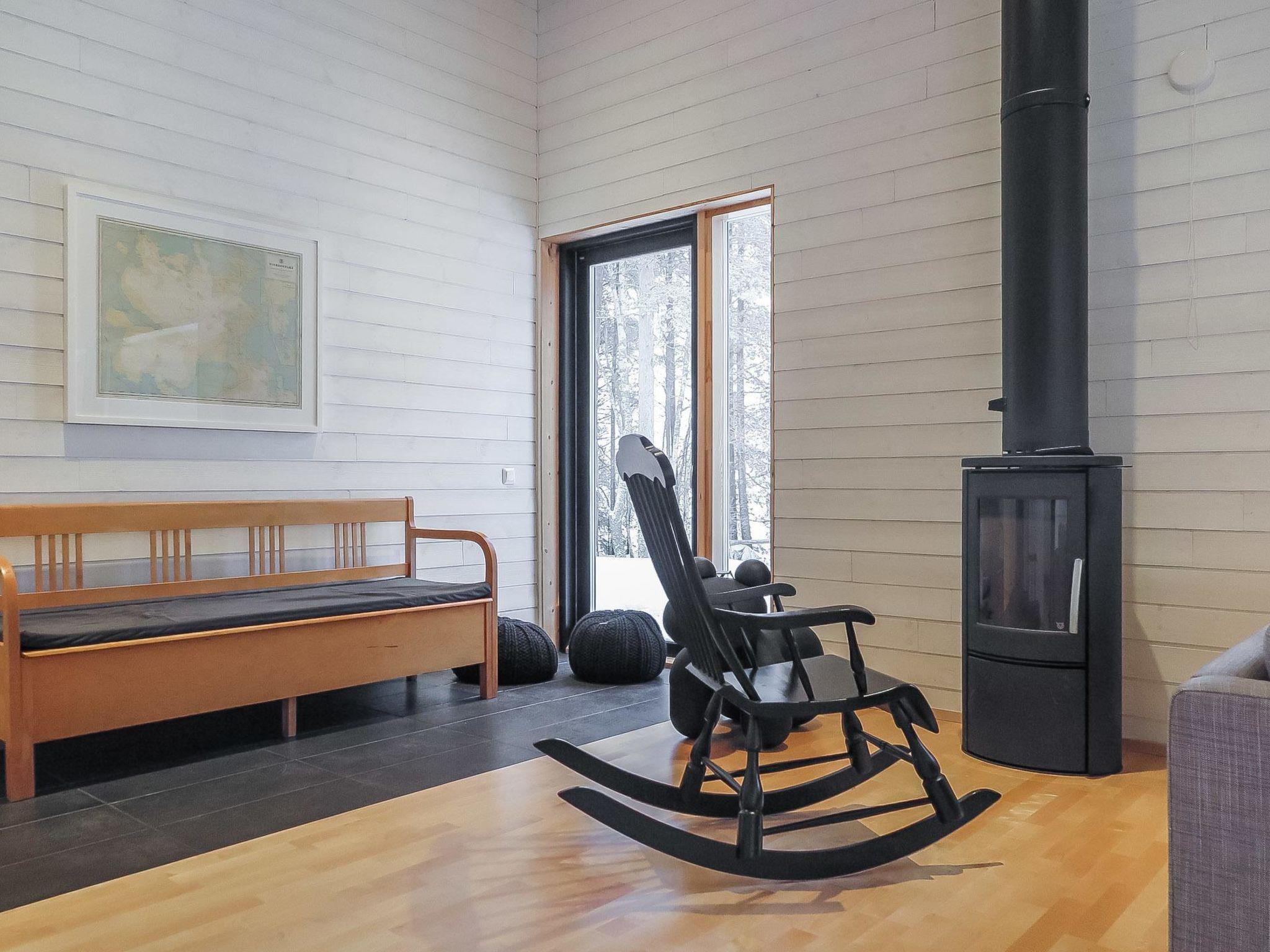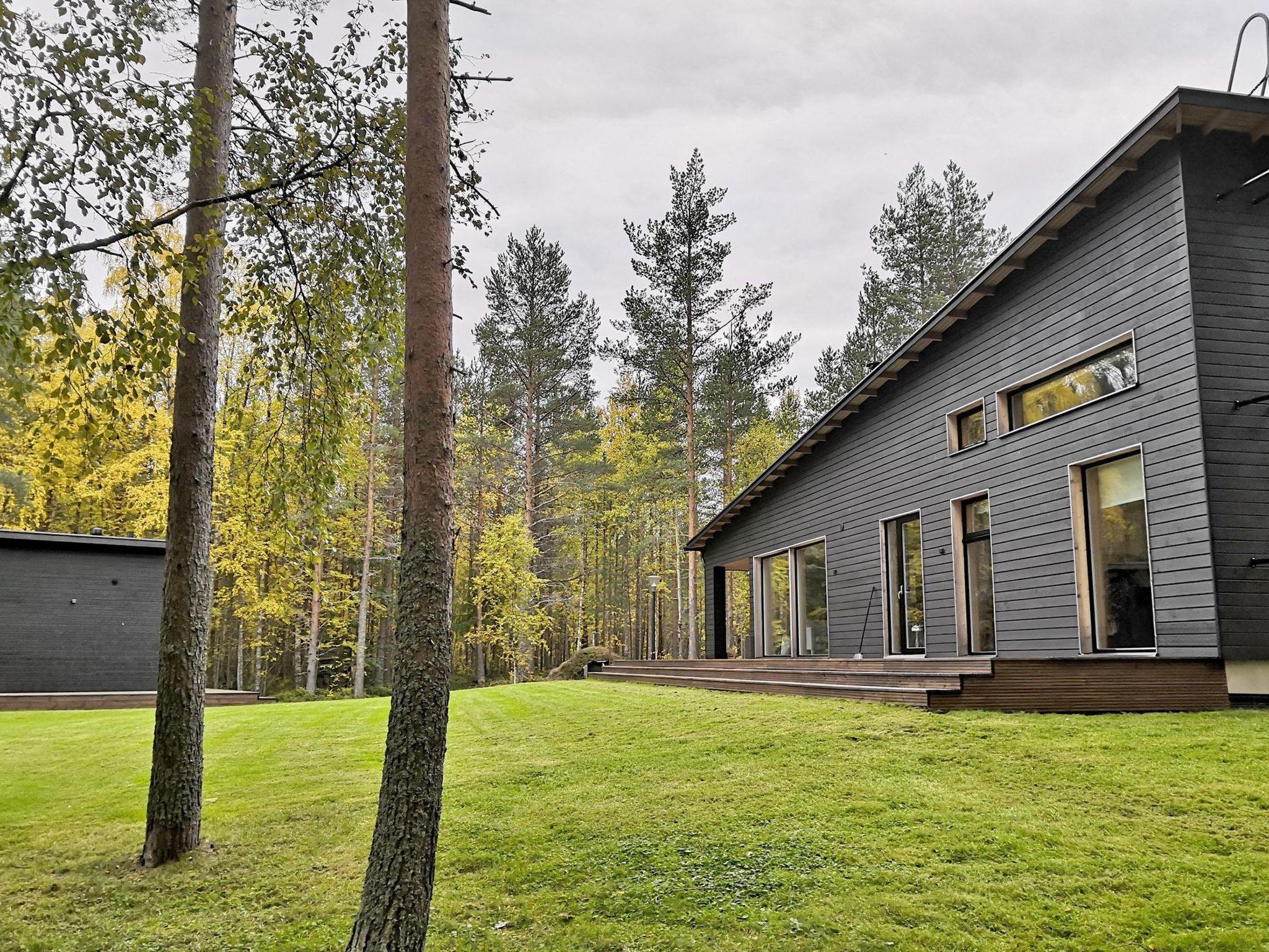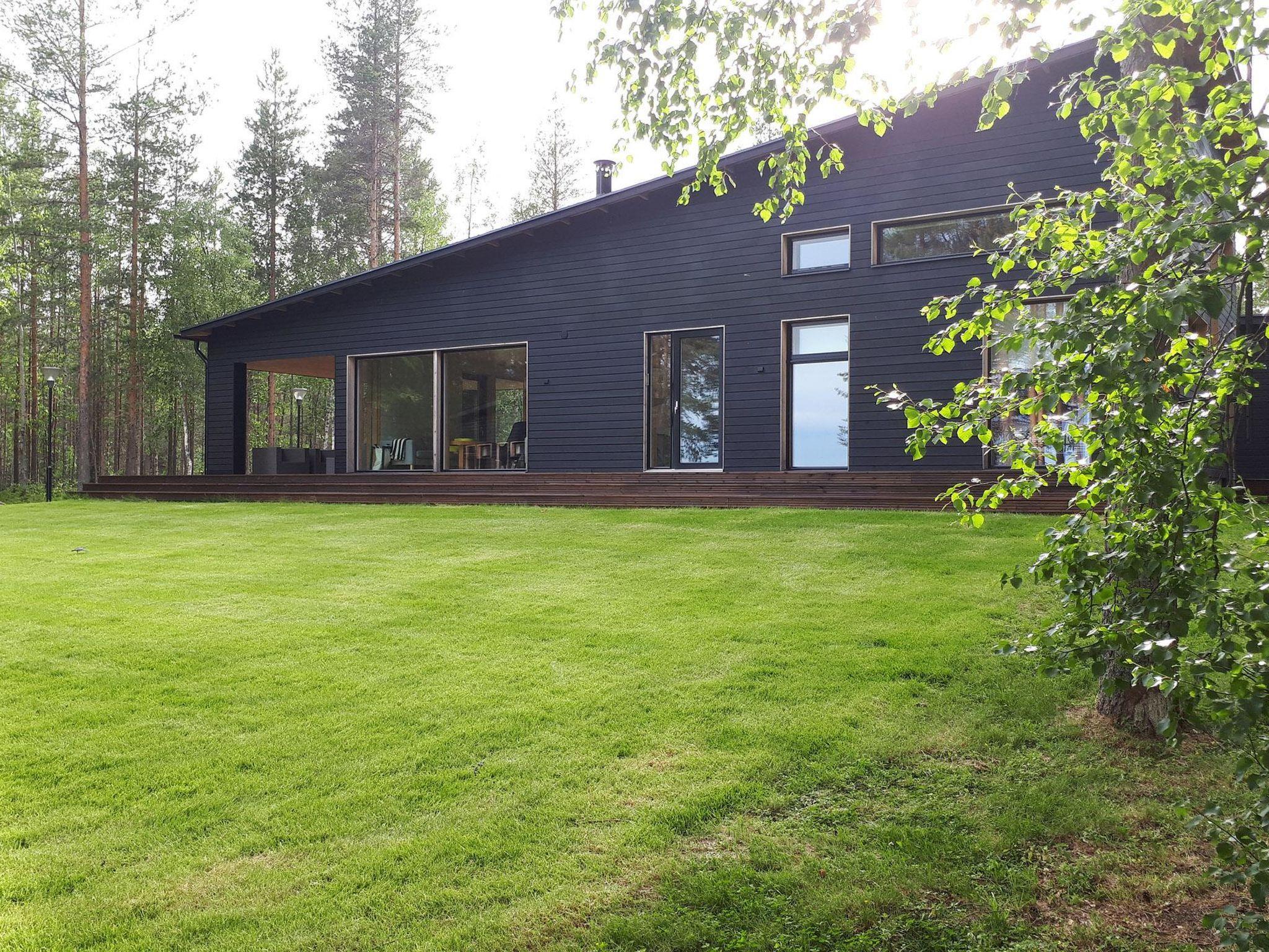 Wooden villa, built in 2016. Living-room kitchen, bedroom with 2 beds (made as double bed), second bedroom with 2 single beds, upstairs 7 beds, low ceiling upstairs (maximum height 160 cm), utility room with shower, separate toilet, partially covered large terrace. Underfloor heating throughout the ground floor (geothermal). Also equipped with a cooling device connected to geothermal heat. No sauna in the villa, but there is a separate lakeside sauna.