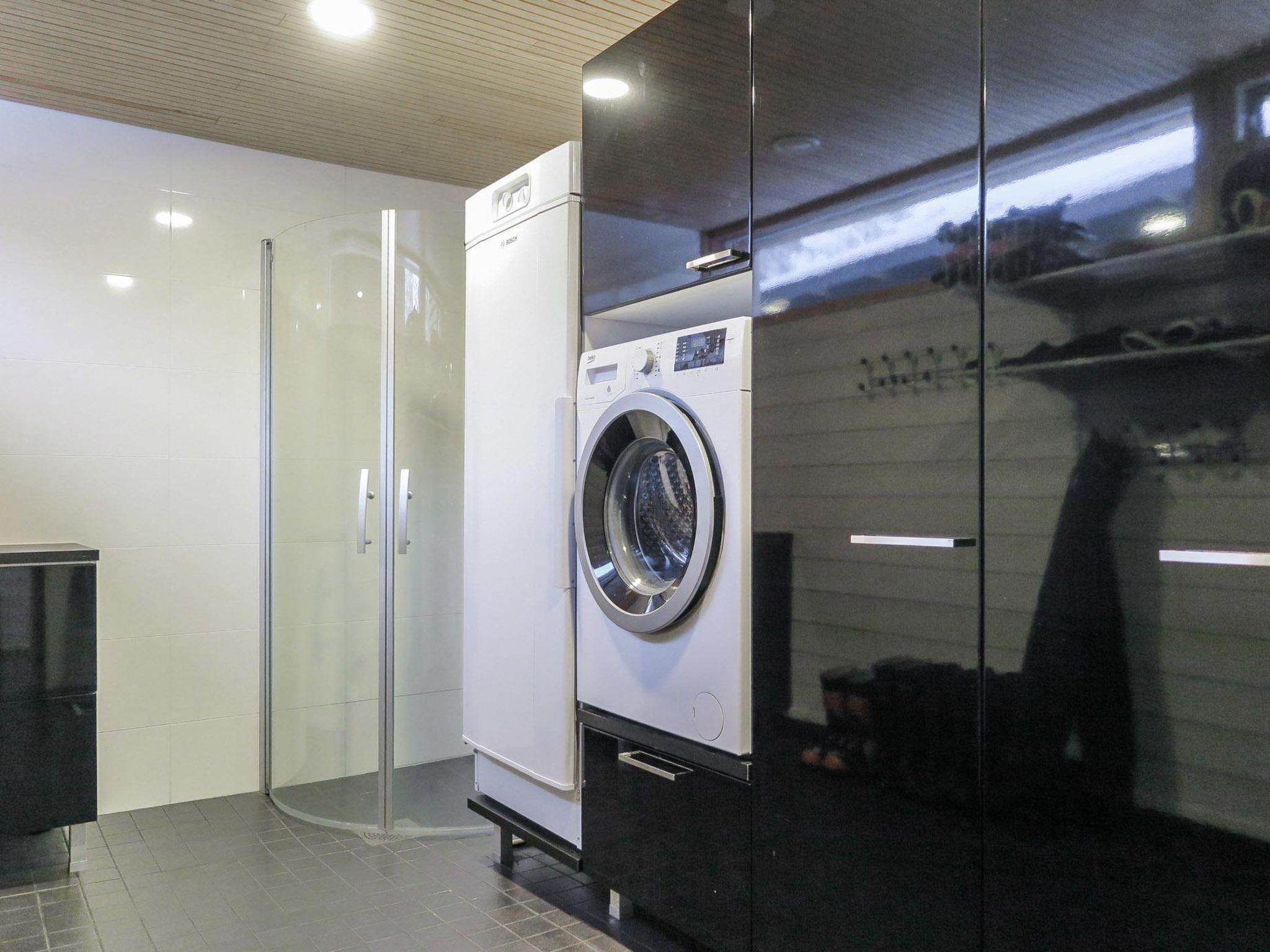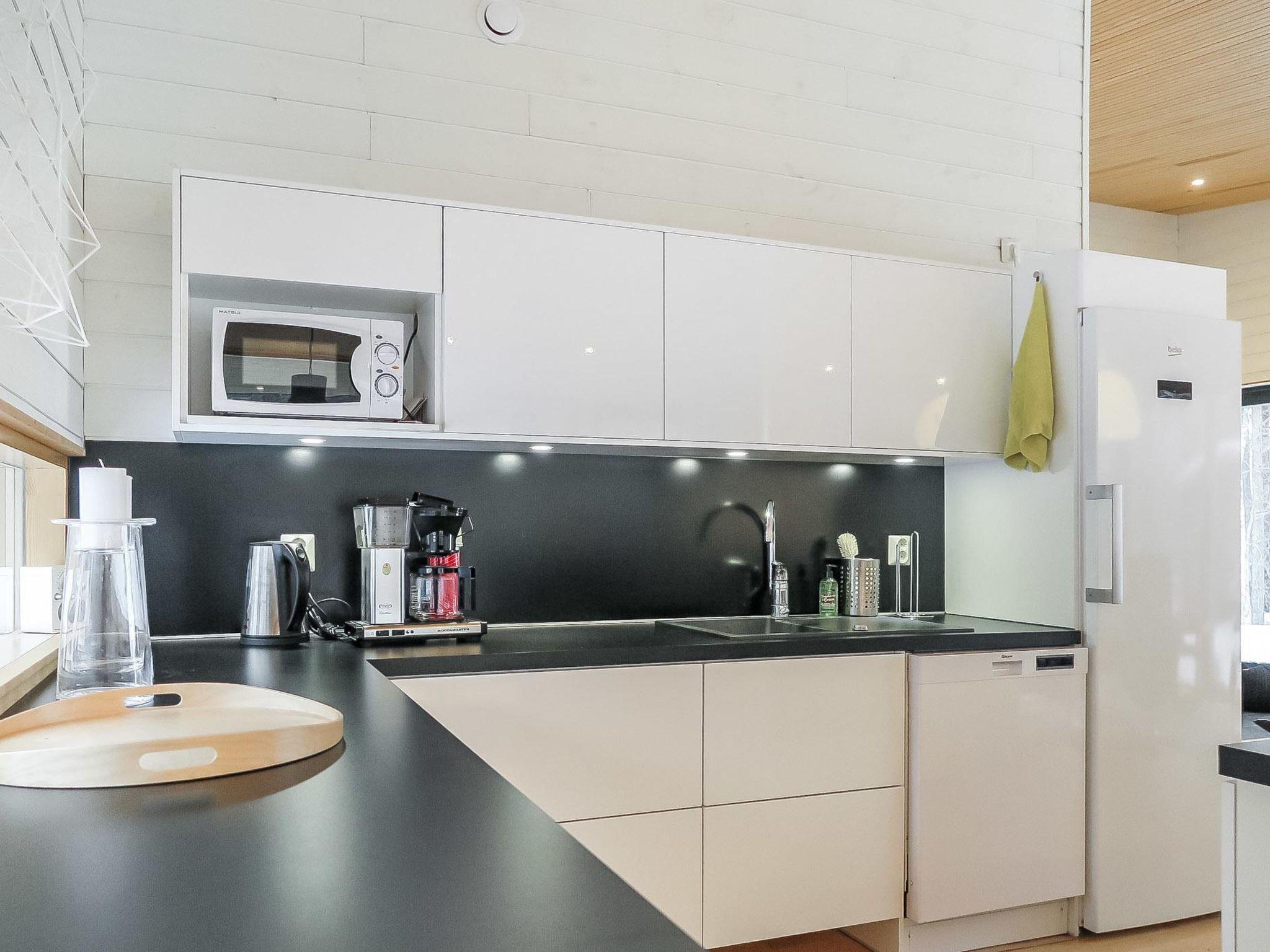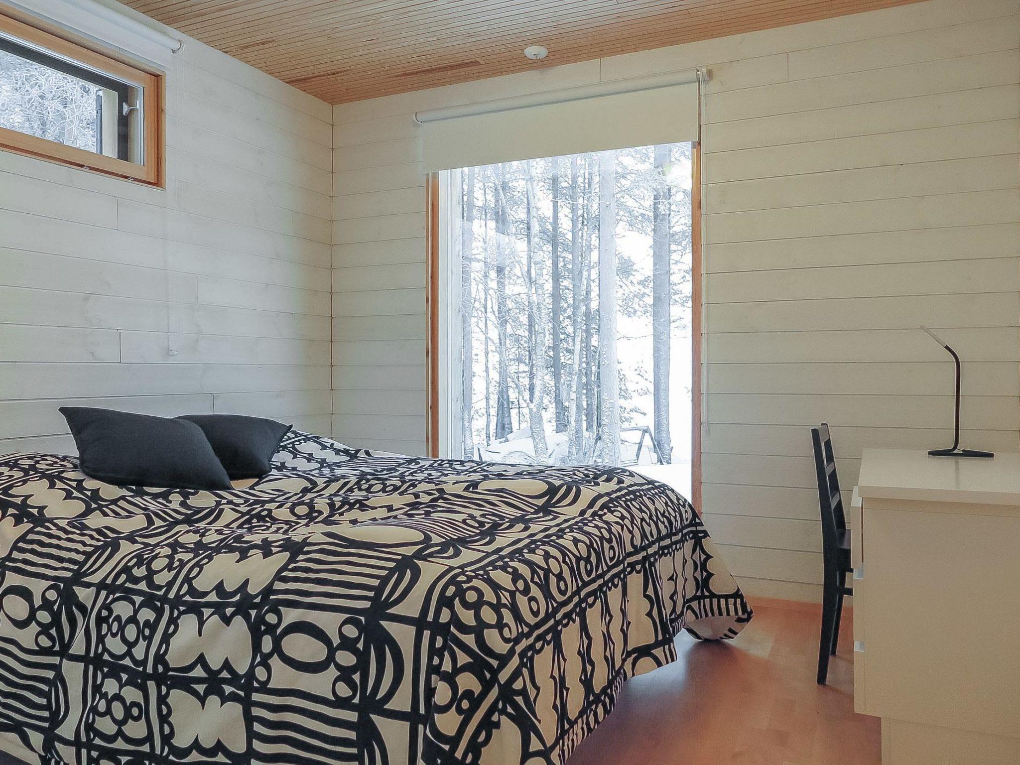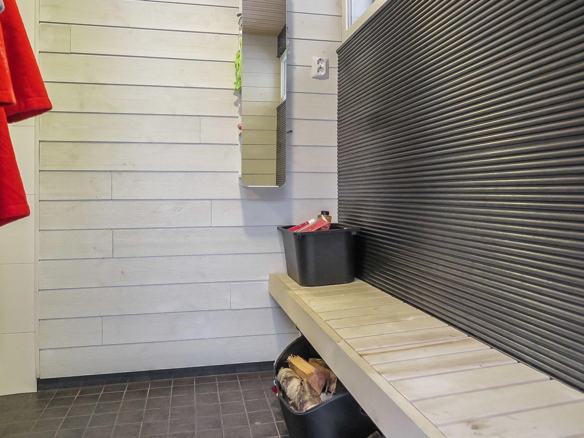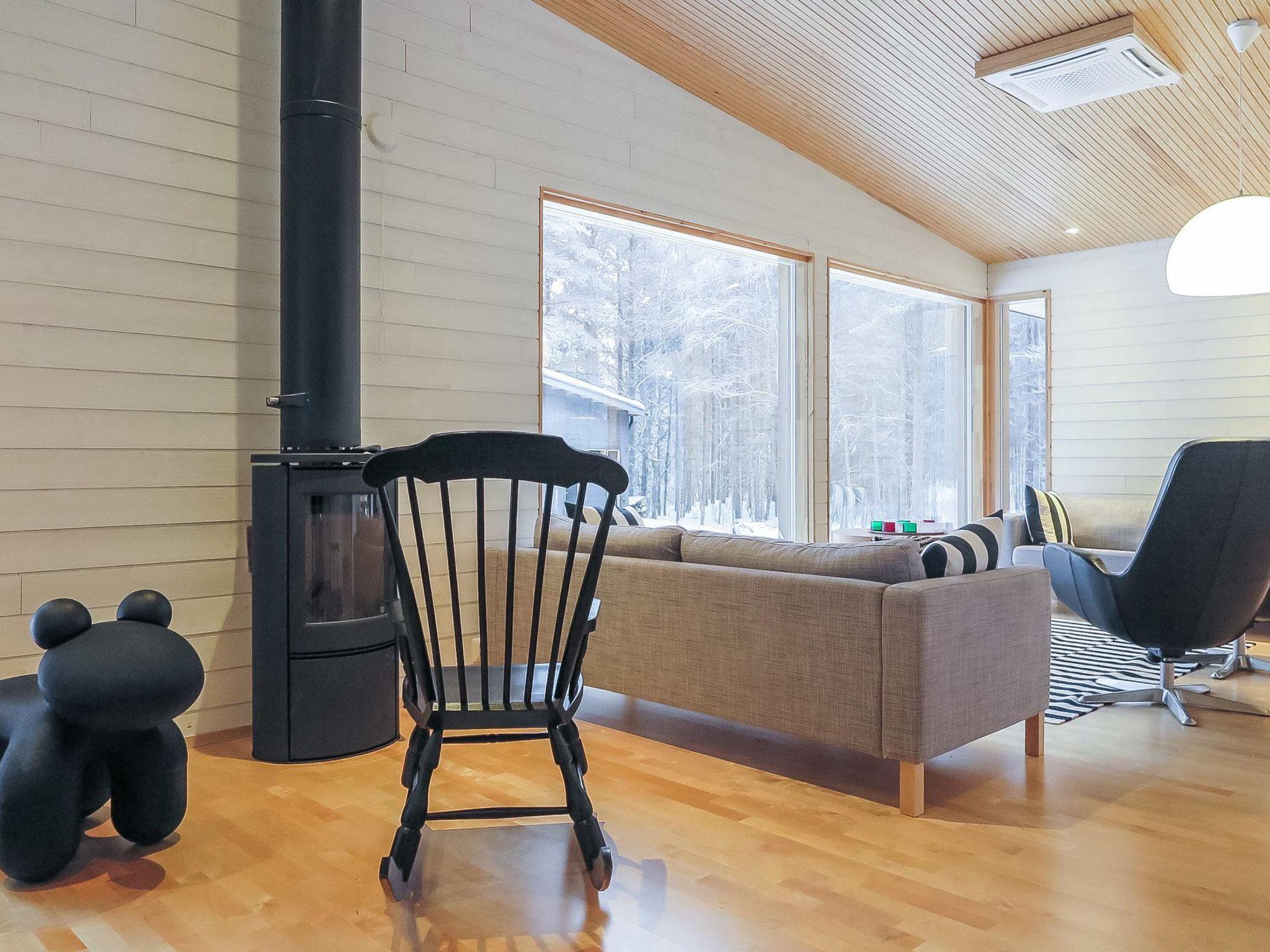 Wooden villa, built in 2016. Living-room kitchen, bedroom with 2 beds (made as double bed), second bedroom with 2 single beds, upstairs 7 beds, low ceiling upstairs (maximum height 160 cm), utility room with shower, separate toilet, partially covered large terrace. Underfloor heating throughout the ground floor (geothermal). Also equipped with a cooling device connected to geothermal heat. No sauna in the villa, but there is a separate lakeside sauna.