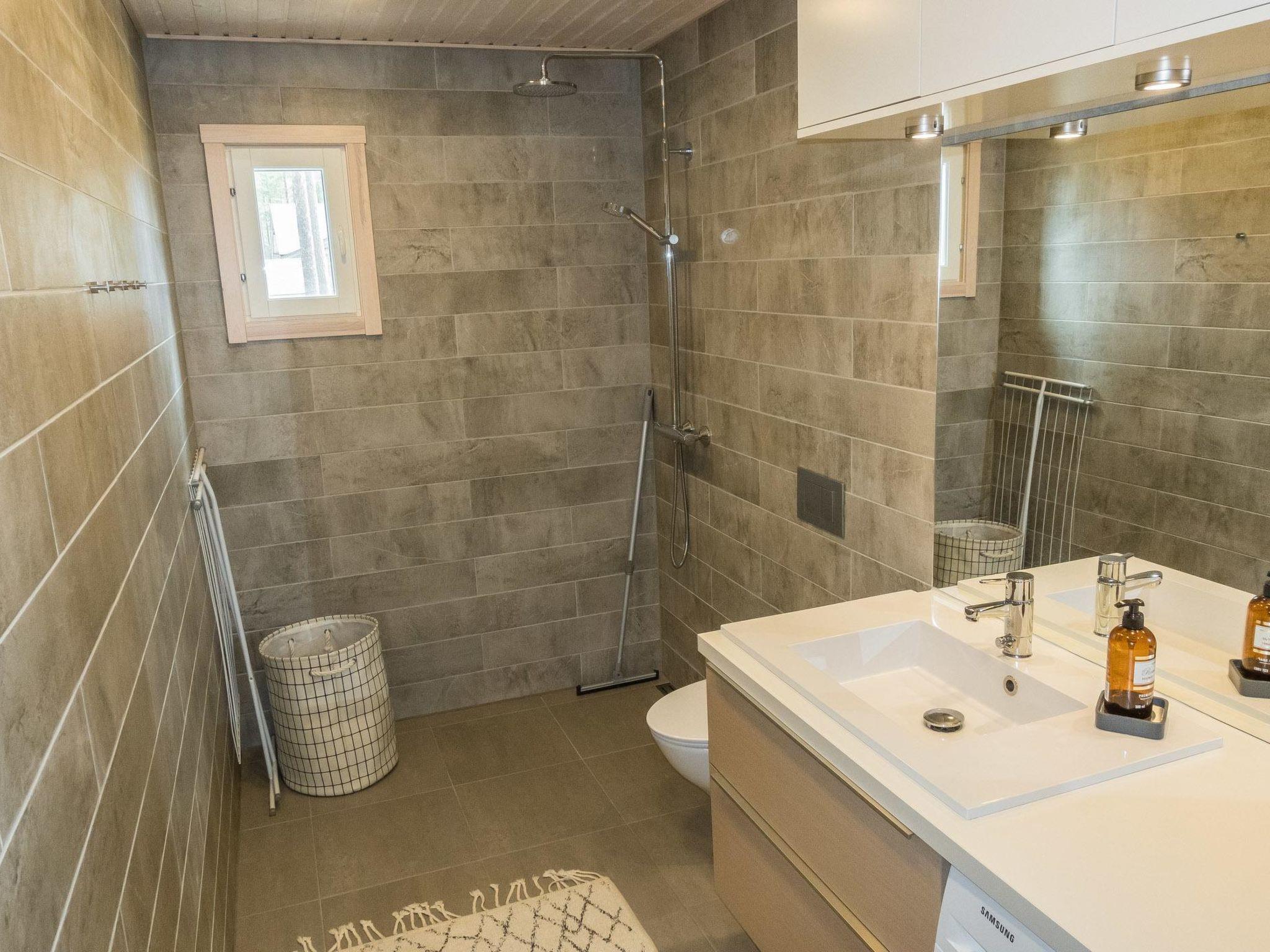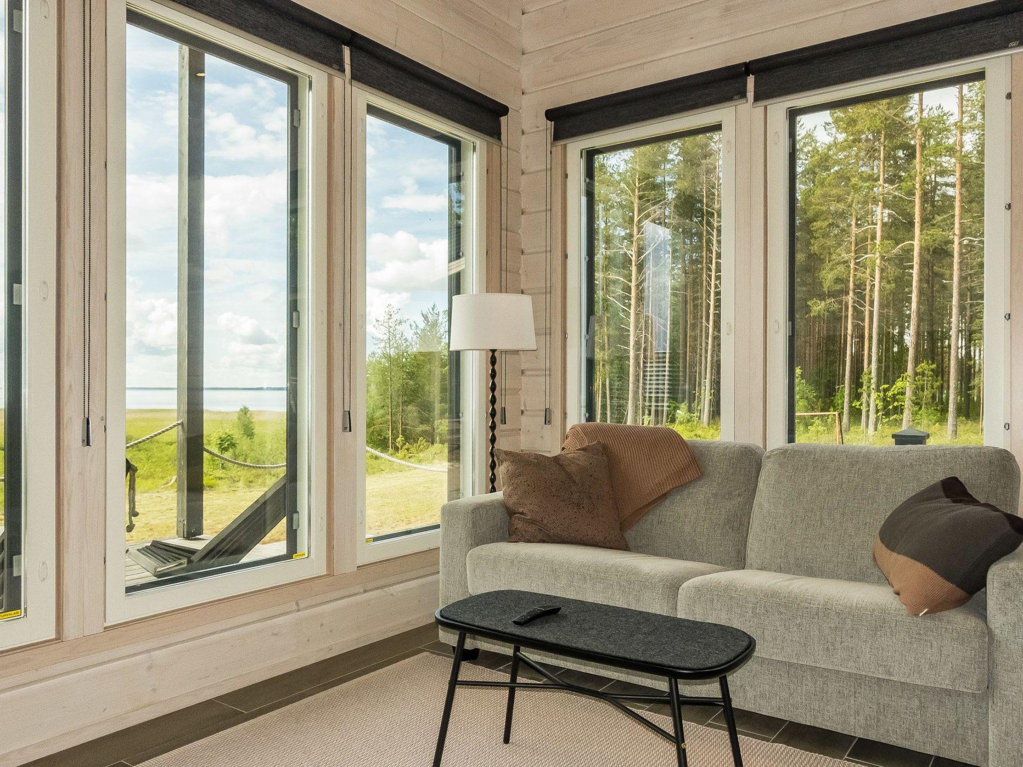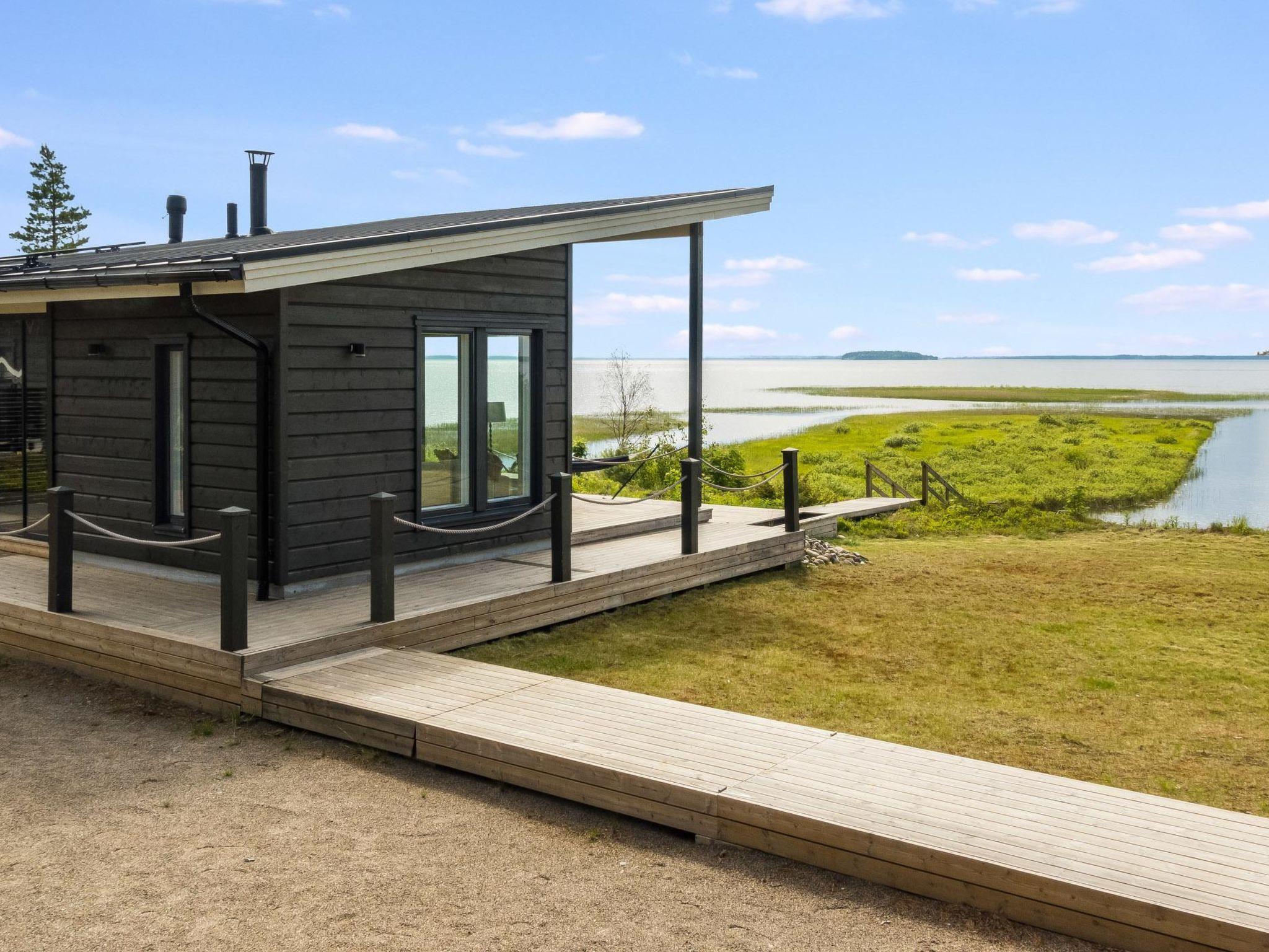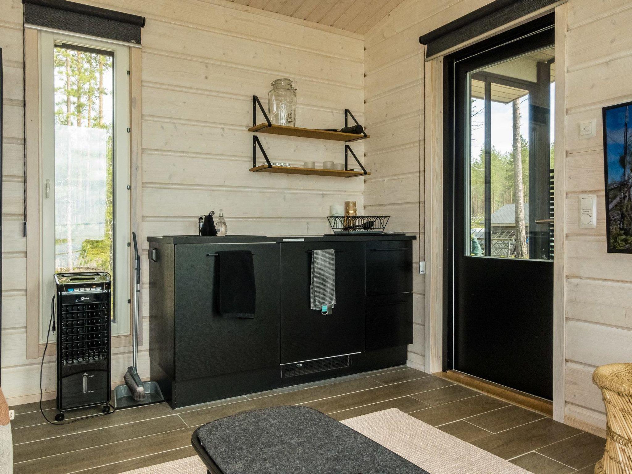 Log-paneled cabin, built in 2016. Living room/kitchen, double bed in the bedroom (width 180 cm), 2 separate beds in second bedroom, 2 beds in the loft, sofa bed and 2 separate mattresses. The loft beds have both a common mattress pad and separate mattress pads. The cabin also has washroom/WC and partially covered terrace.