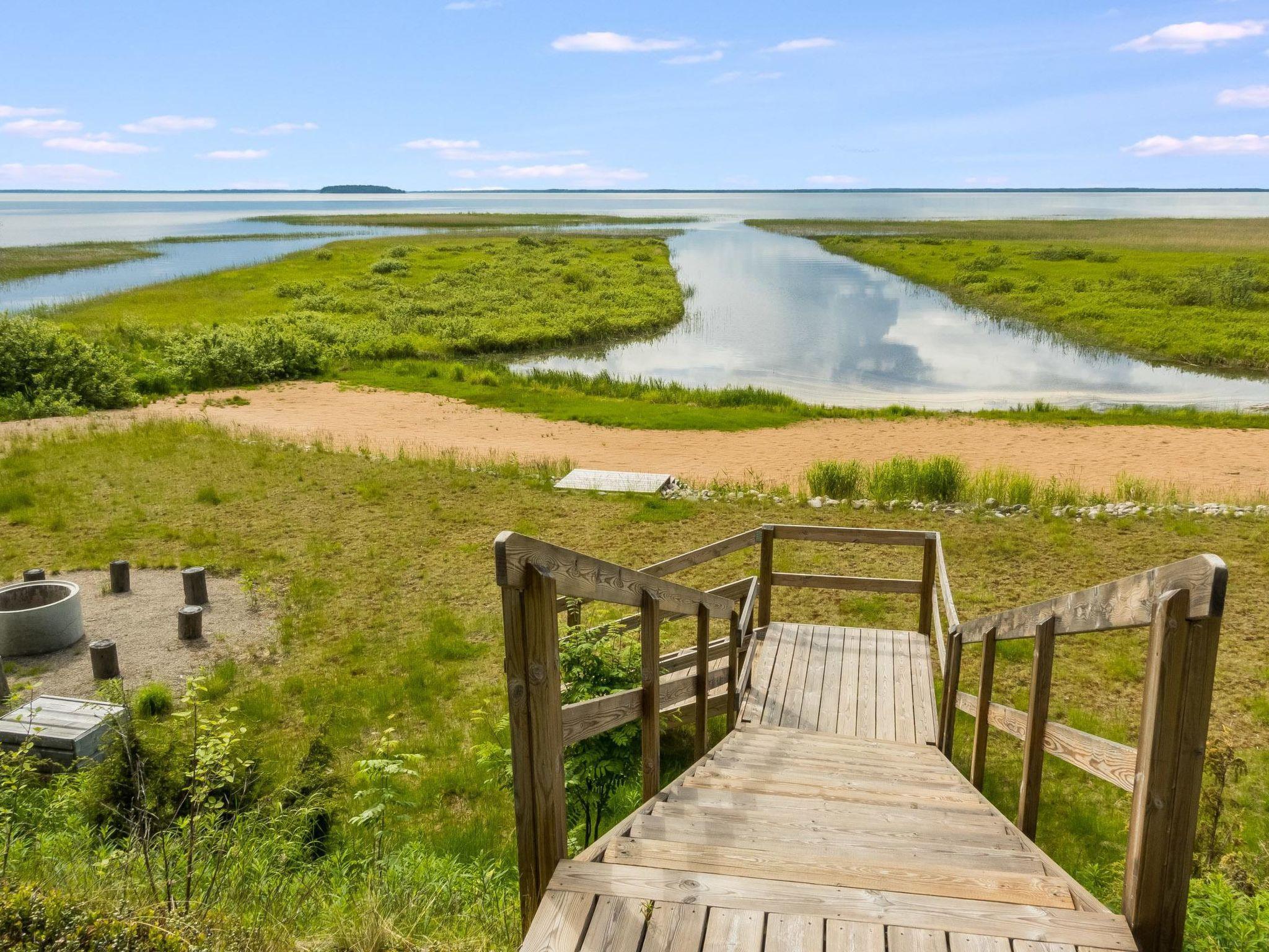 90 km to the northwest from Kajaani, 60 m to lake Oulujärvi beach, dredged shallow beach, clay bottom, sand beach, slope and stairs to the beach.