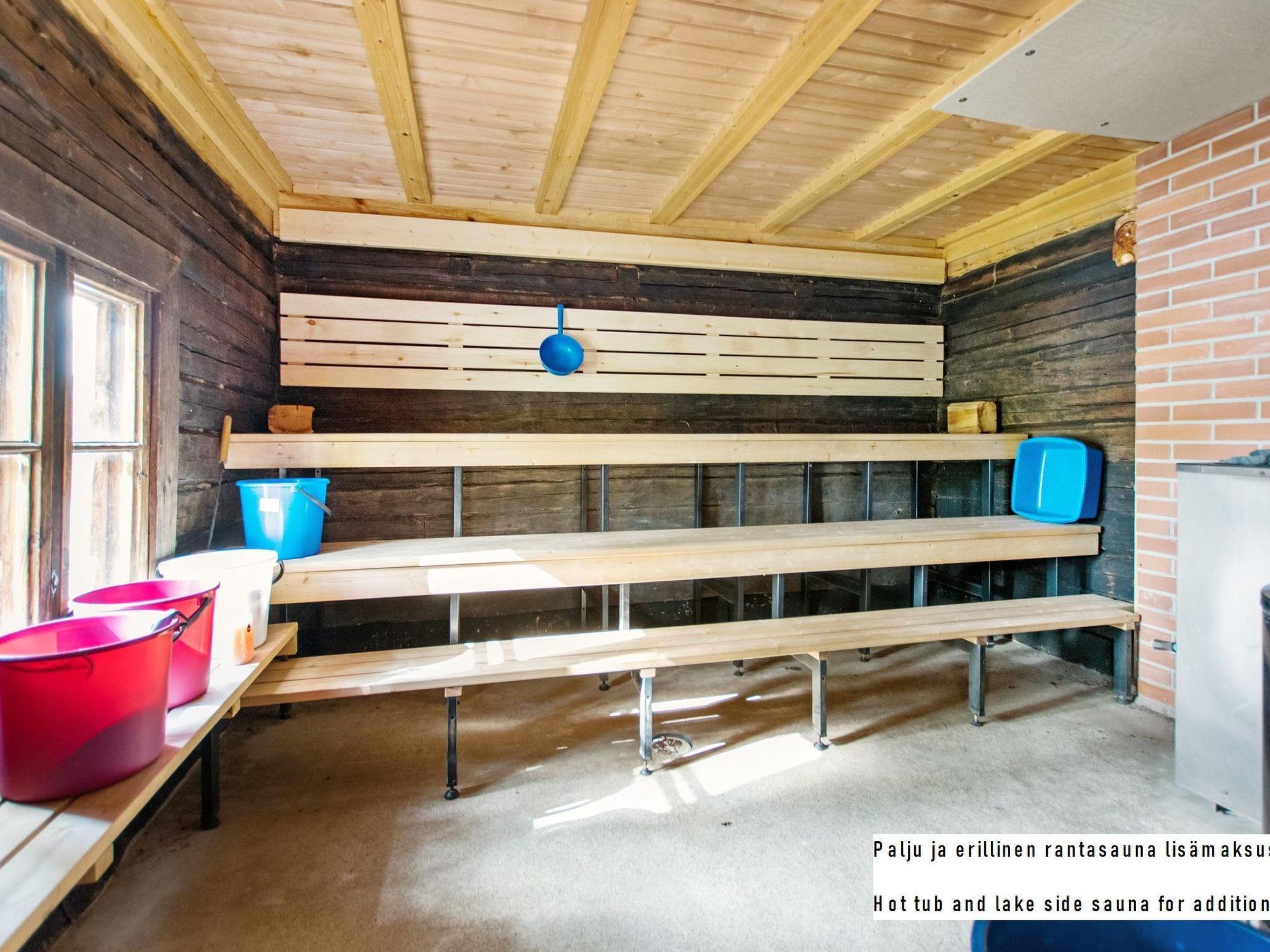 Owner rents out a lakeside sauna and pre-heated hot tub for extra price 150 e/one use, distance about 200 m from the cottage. Lakeside sauna and hot tub can be rented if clients of the other cottage haven't yet rent it.