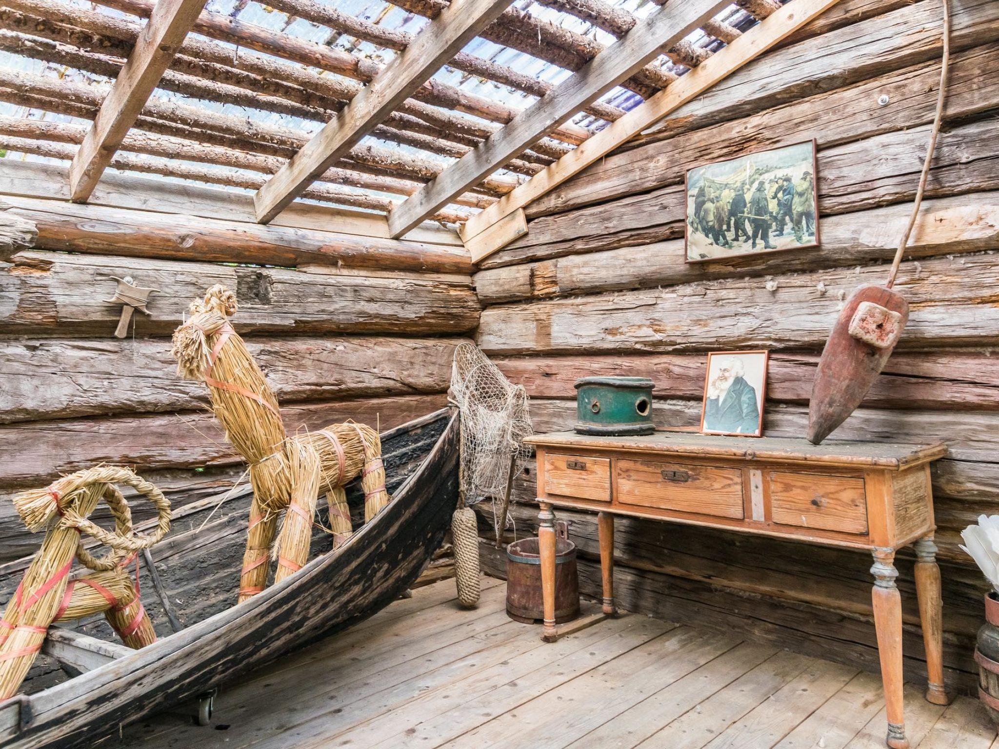 Old buildings with their own yards exude a village-like atmosphere from the early 20th century, partly surrounded by wilderness. The homely interior also respects old furniture, objects, and textiles.